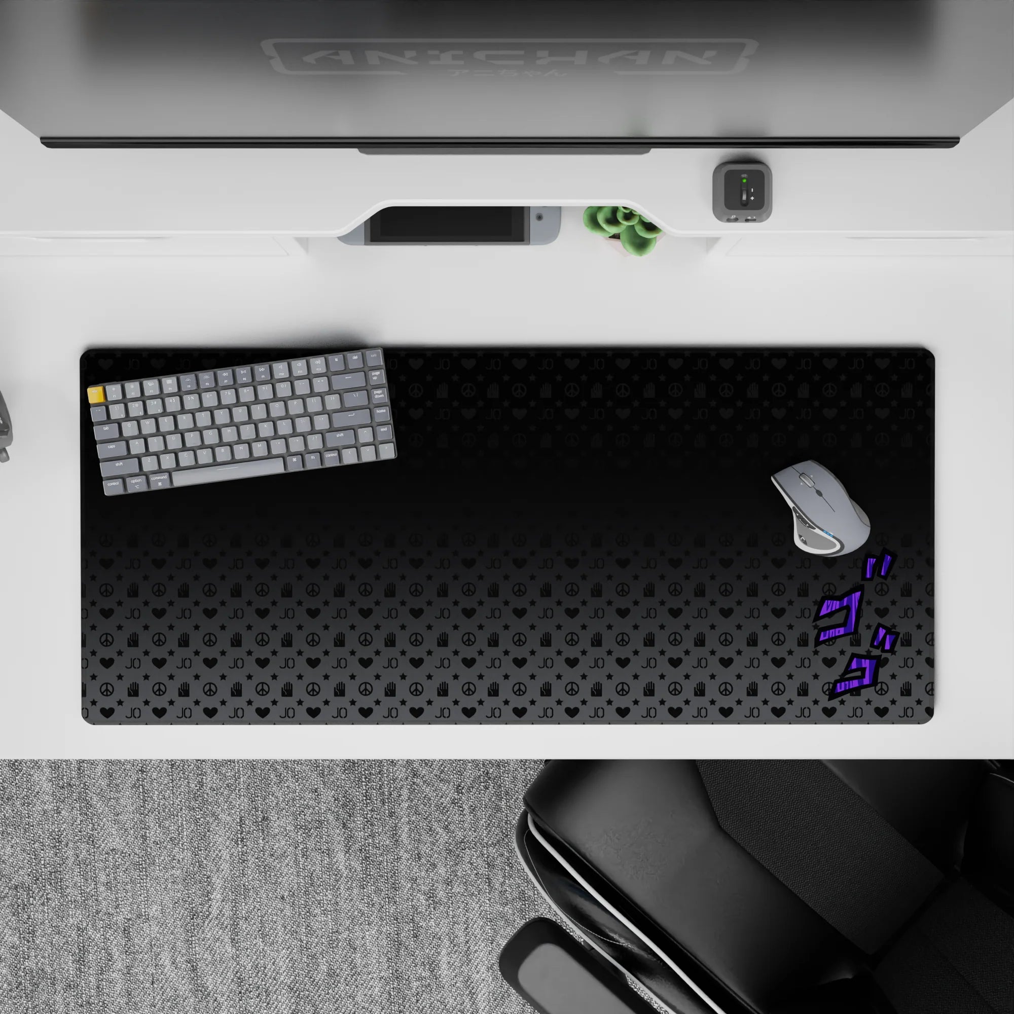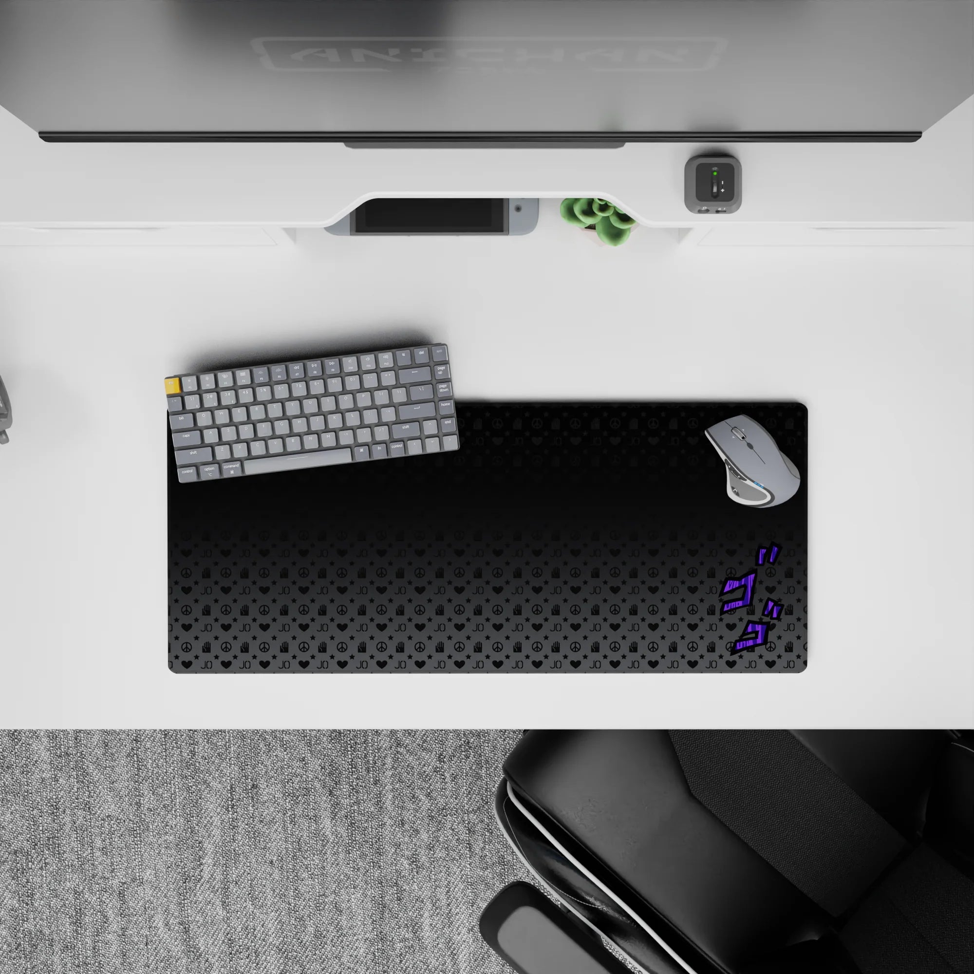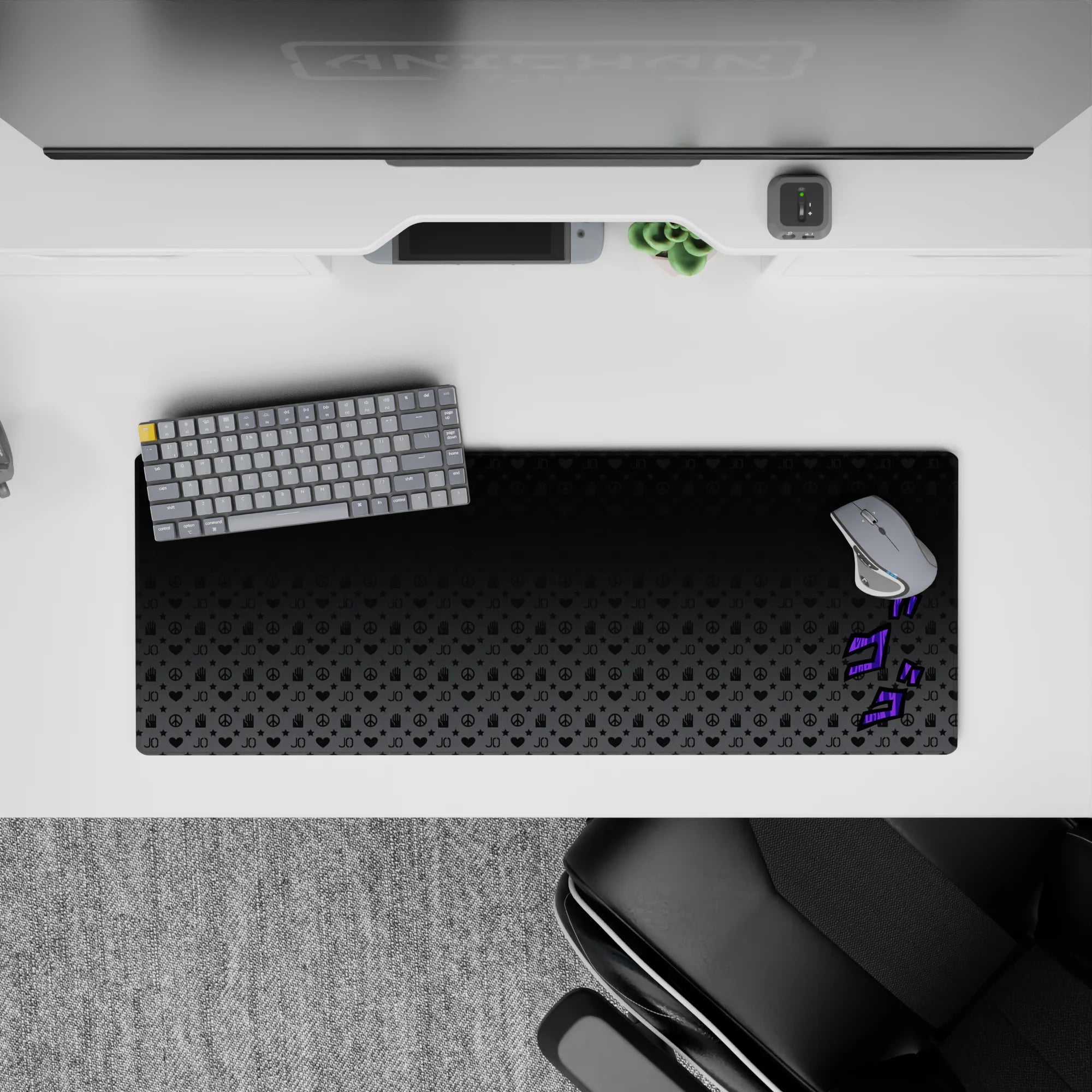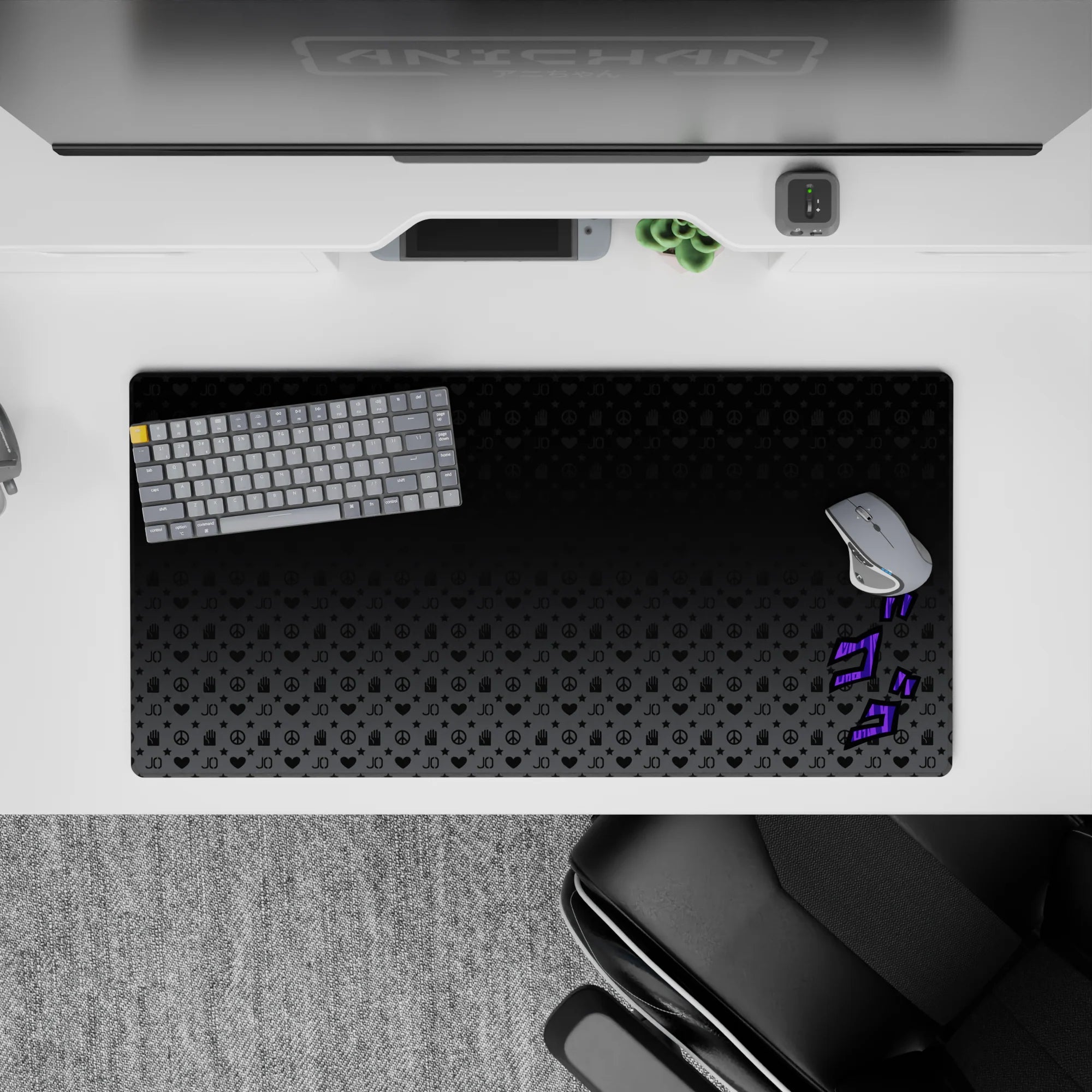 Immerse your desk in the world of JoJo’s Bizarre Adventure with this stylish desk mat. Featuring iconic symbols and the signature "ゴゴゴ" sound effect in vibrant purple, this design gives your workspace the aura of Stand power and mystery. Ideal for any JoJo fan's setup!