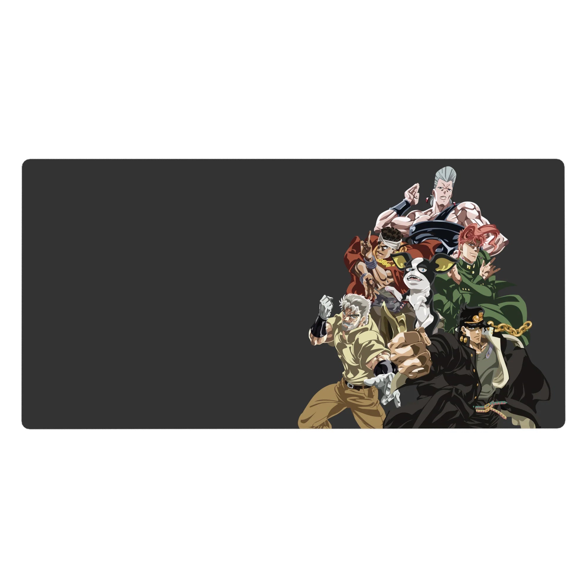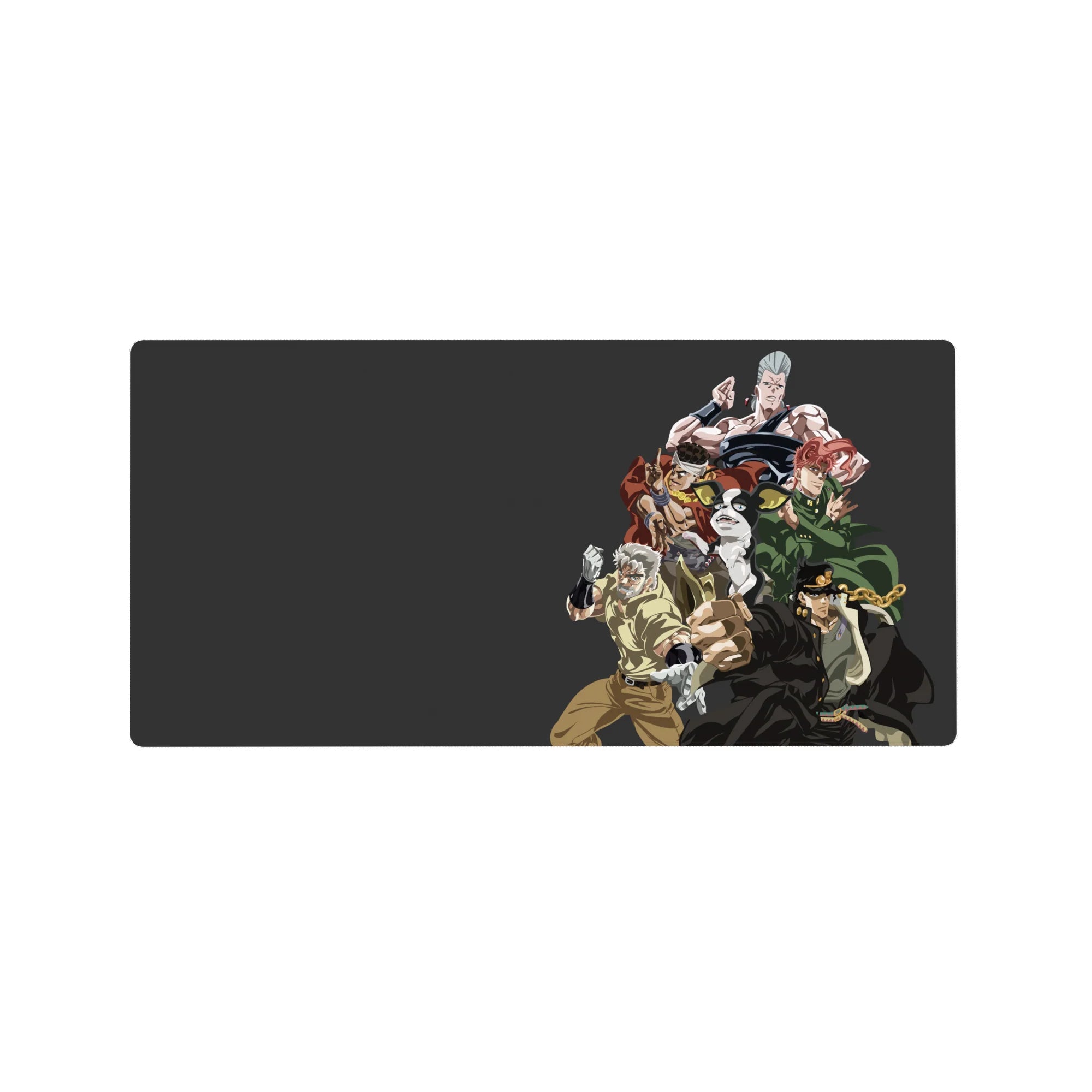 Dive into the iconic world of JoJo's Bizarre Adventure with this striking desk mat. Featuring the Stardust Crusaders team standing united, it's the perfect addition for any fan wanting to bring the bold energy of the series to their workspace.