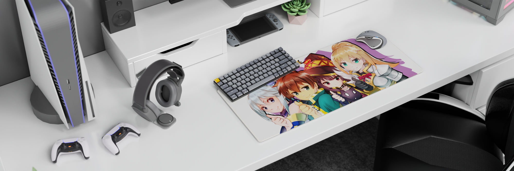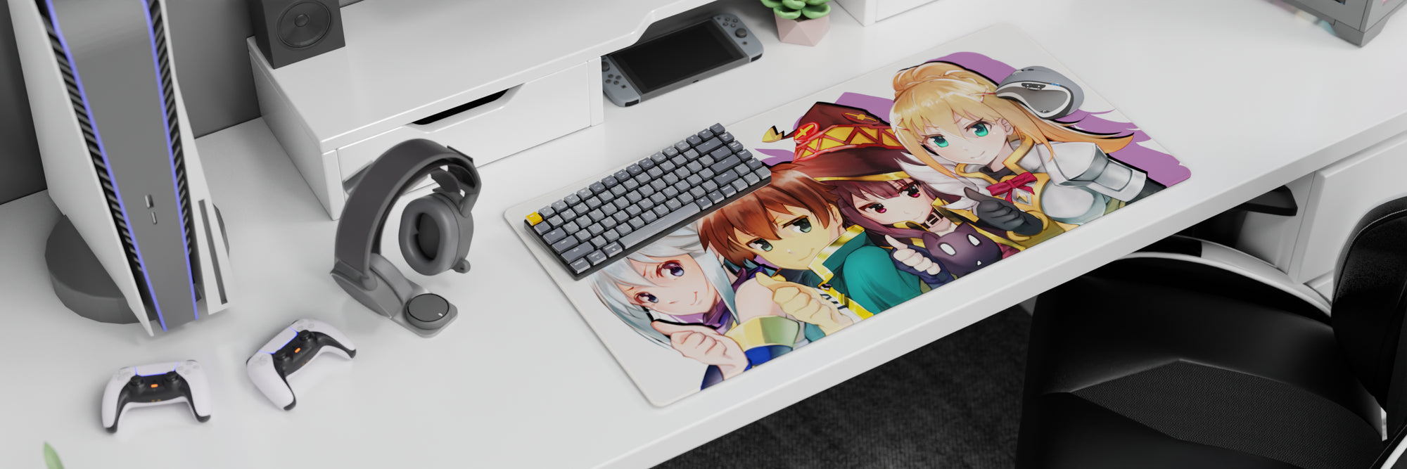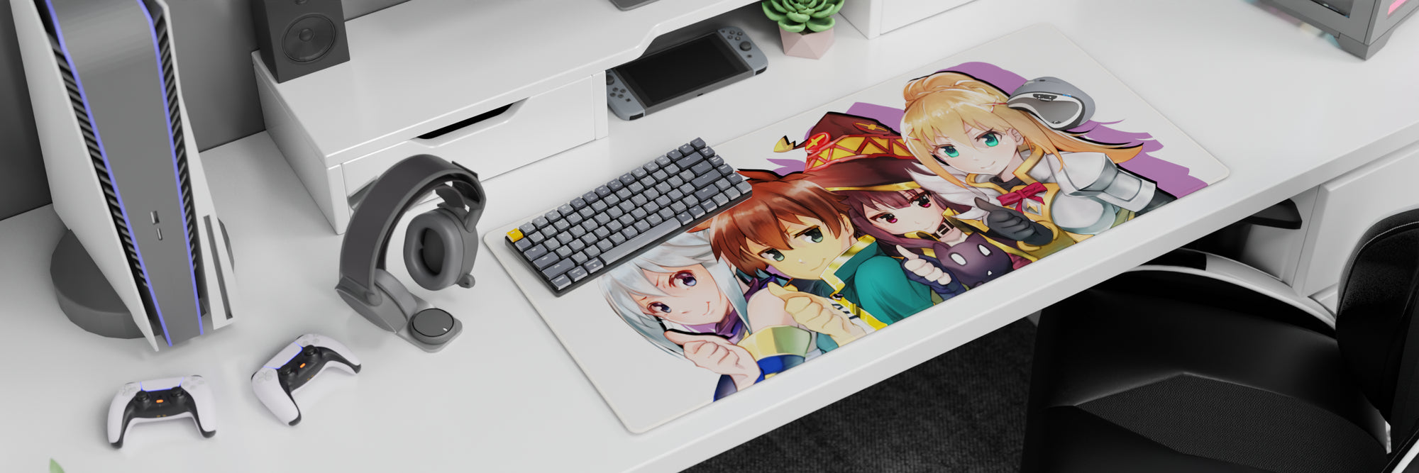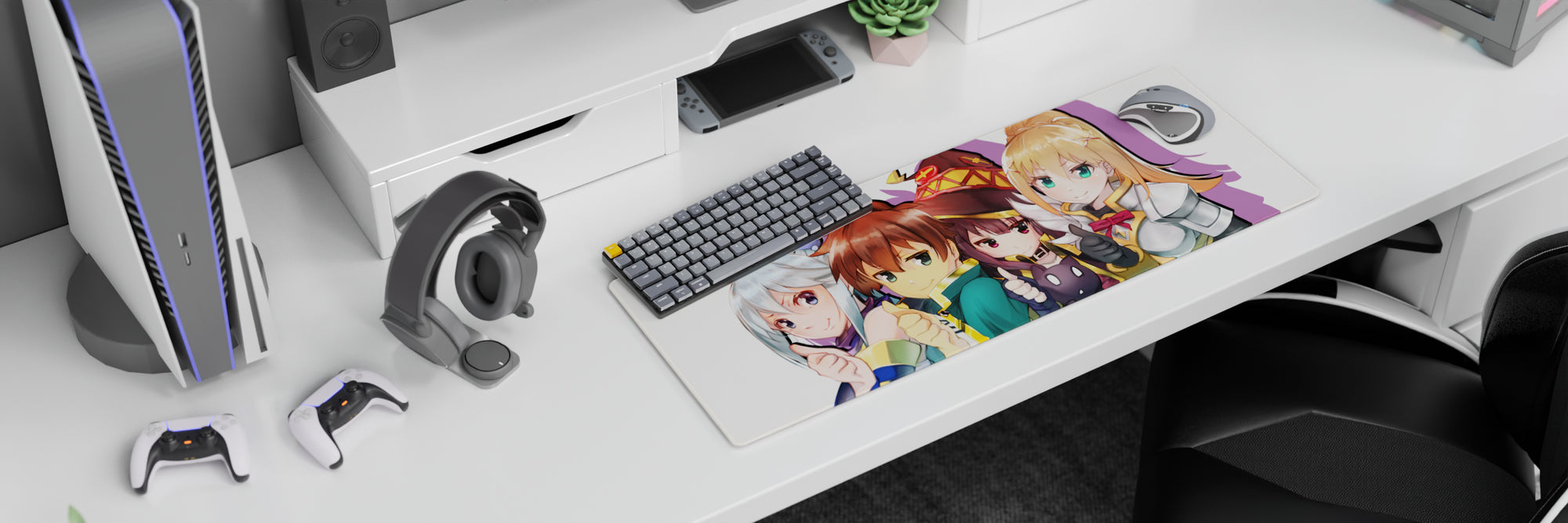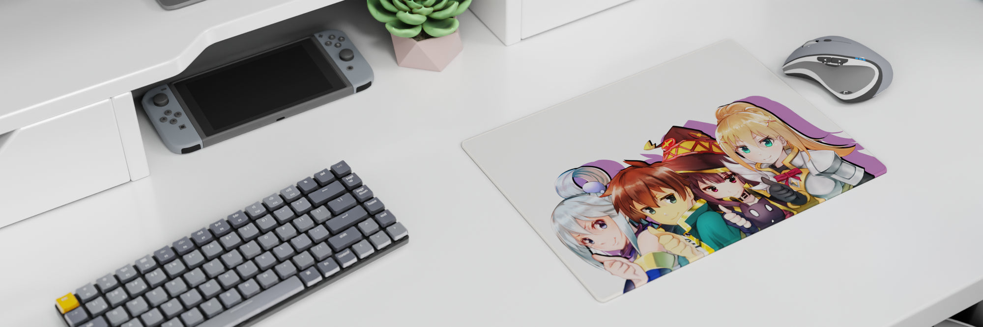Discover the quirky charm of our Konosuba anime mouse pad! Featuring Kazuma's smugness and Megumin's deadpan look, plus Aqua's cheer and Darkness's faux composure. Perfectly captures the crew's chaotic energy. Ideal for fans seeking a dash of humor and nostalgia in their workspace.