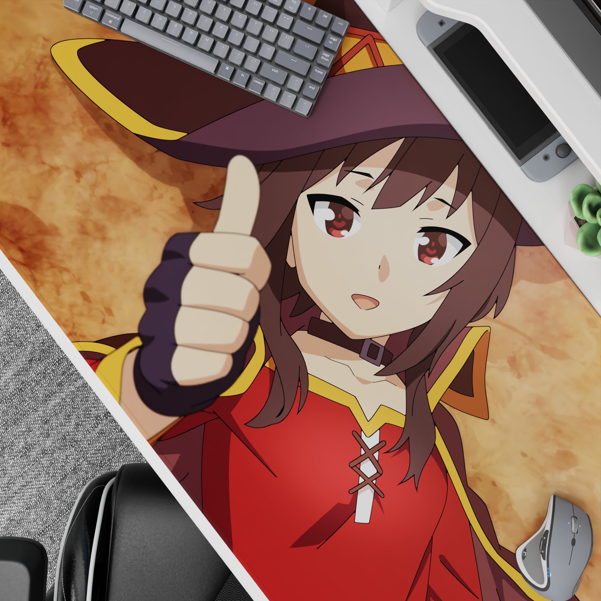 Cool and quirky, this Megumin anime mouse pad captures the essence of “mission failed successfully” with its vibrant ochre background and dynamic shadows. Perfect for gamers and fans of KonoSuba, it adds a touch of humor and charm to any desk setup.