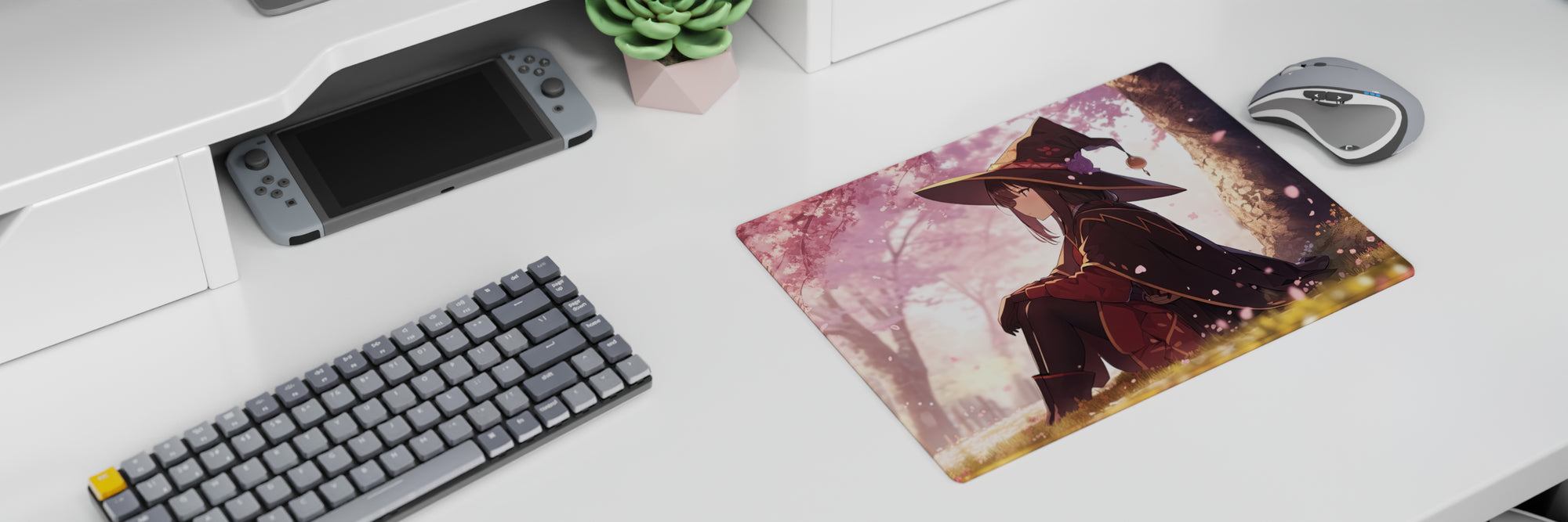 Discover tranquility with our Konosuba anime mouse pad. Featuring Megumin under sakura, this design offers calm and a touch of magic. Ideal for enhancing any workspace, let the soothing colors and serene scene inspire focus and creativity. Transform your desk into a peaceful haven.