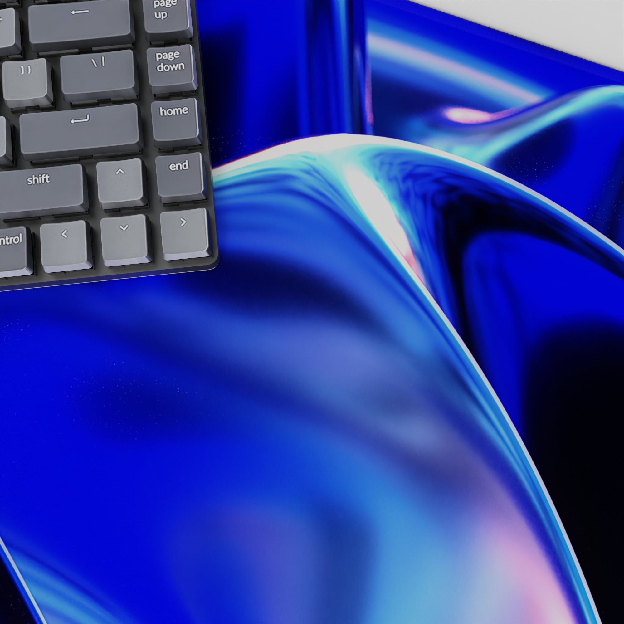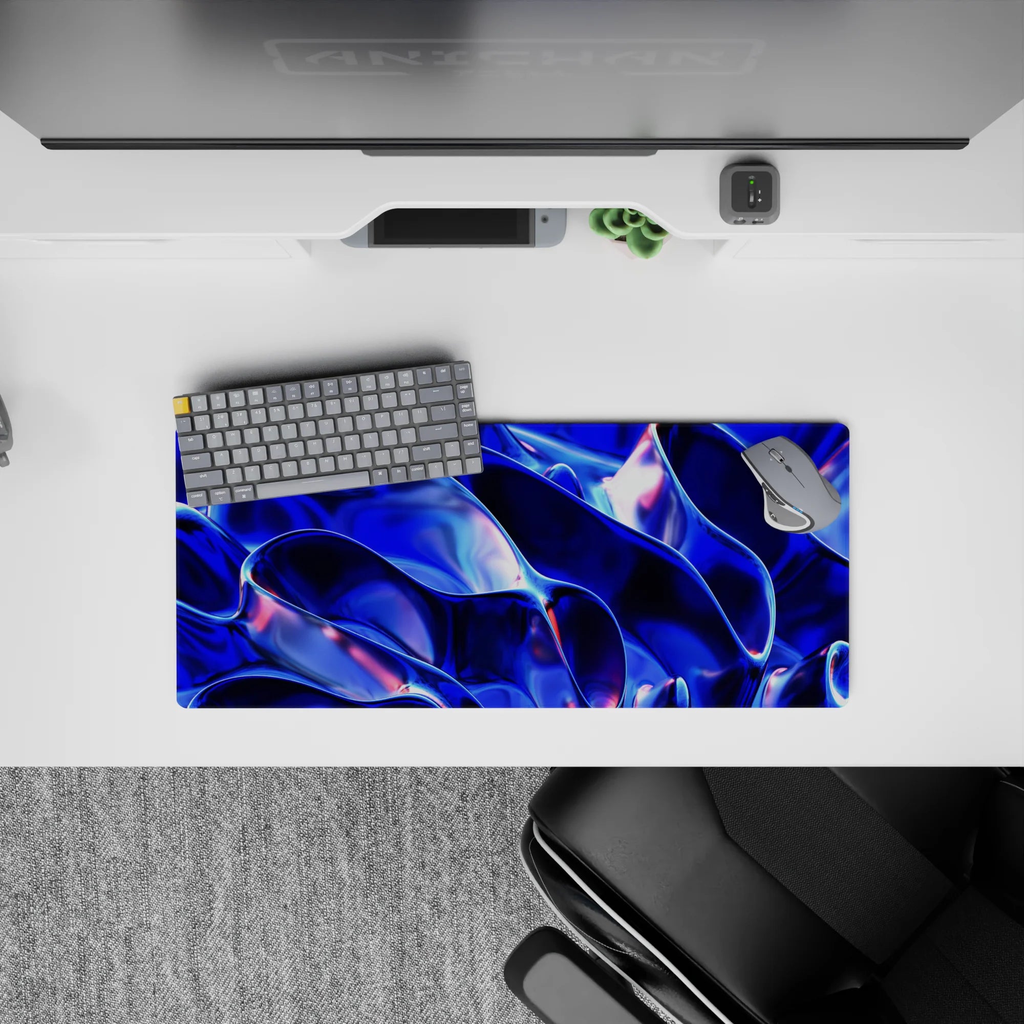 Transform your desk with this electric blue mousepad, featuring a metallic wave design with sleek reflective finishes. Hints of purple and pink highlights add a touch of sophistication, making it a perfect addition for a futuristic and stylish workspace.