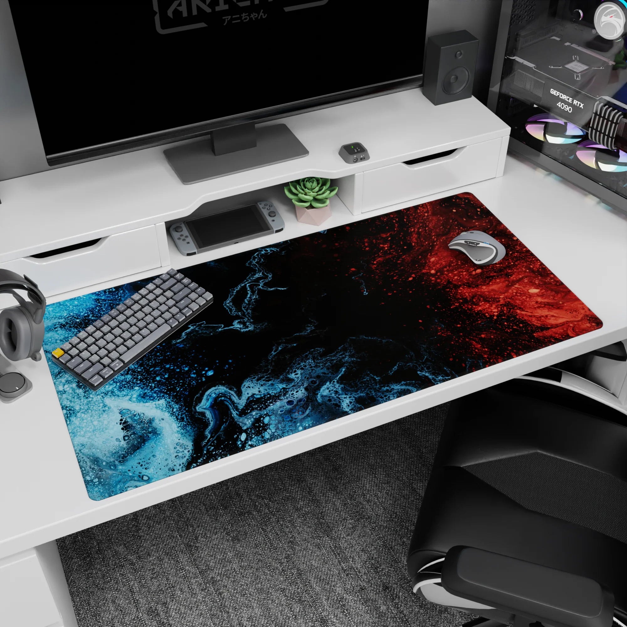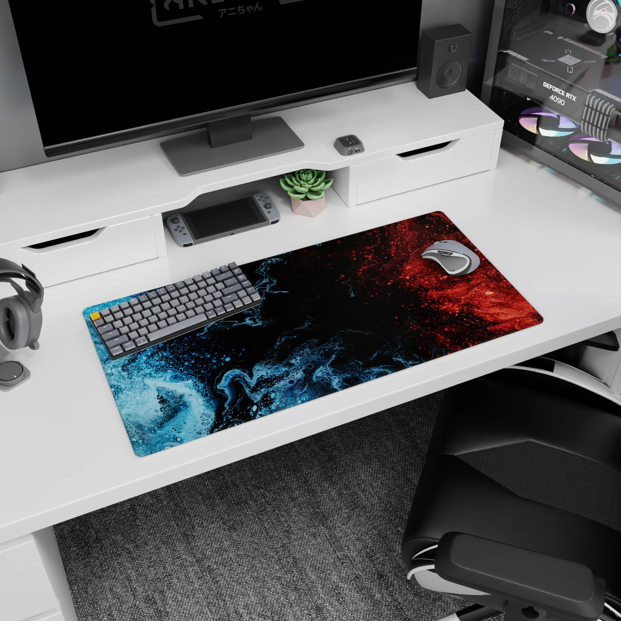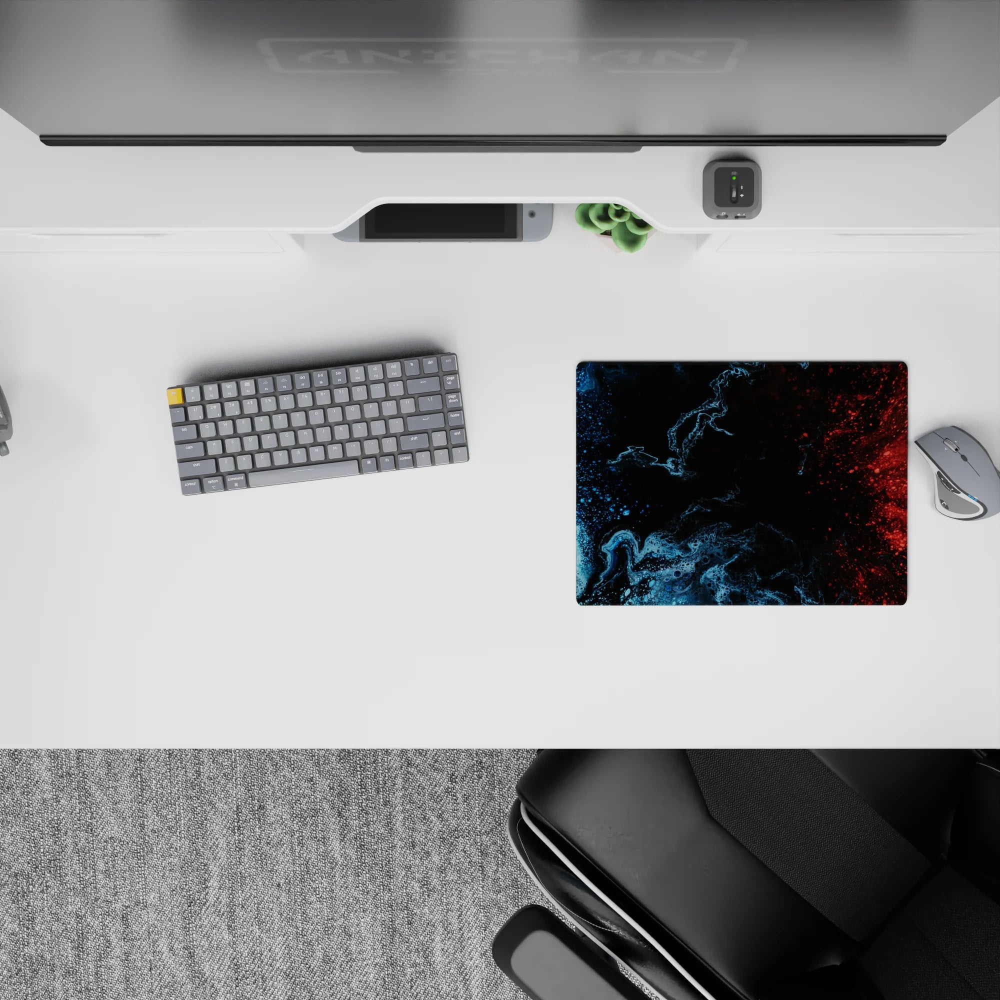 Order your Liquid Abstract Deskmat | Mousepad | Deskpad - Orange-Blue Wave now, and refresh your setup today!