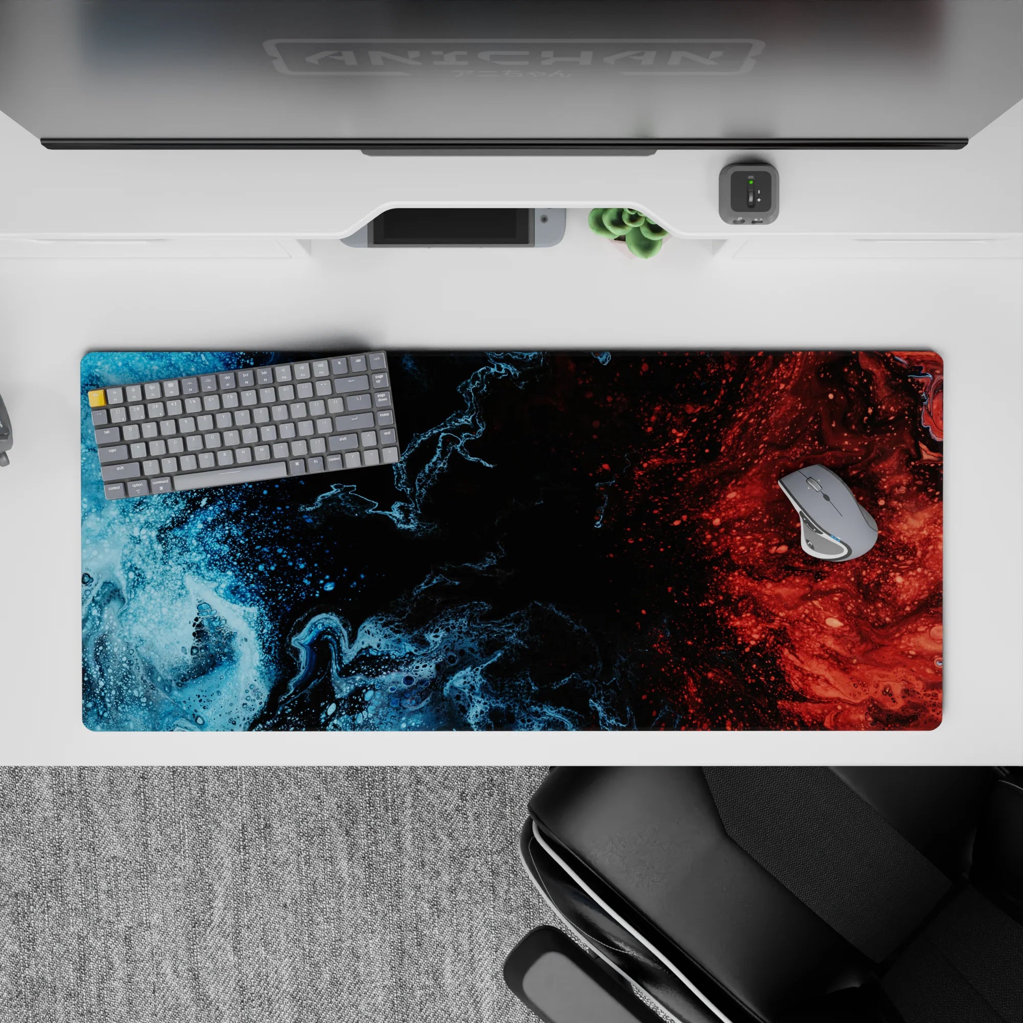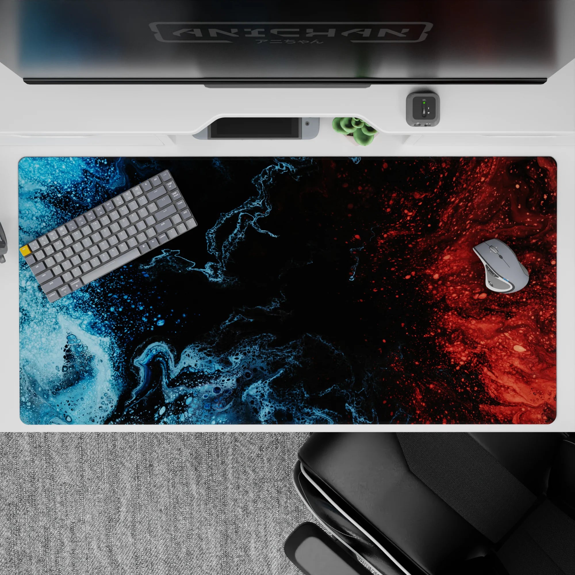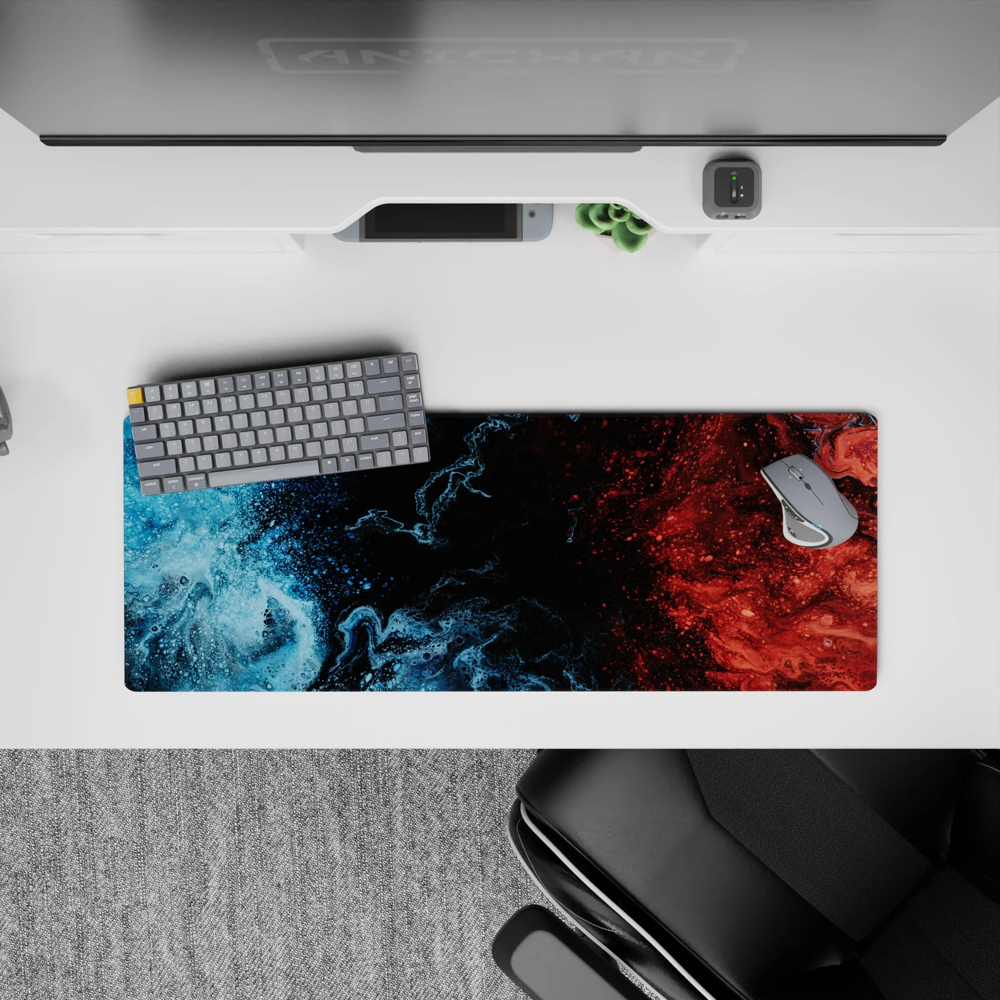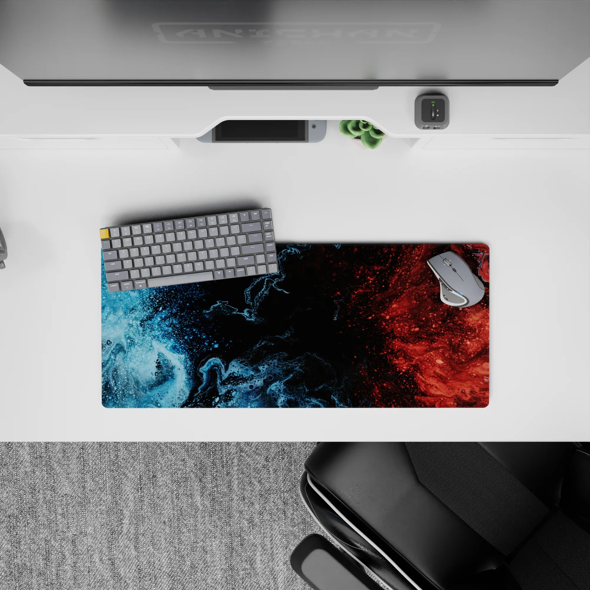 Liquid Abstract Deskmat | Mousepad | Deskpad - Orange-Blue Wave