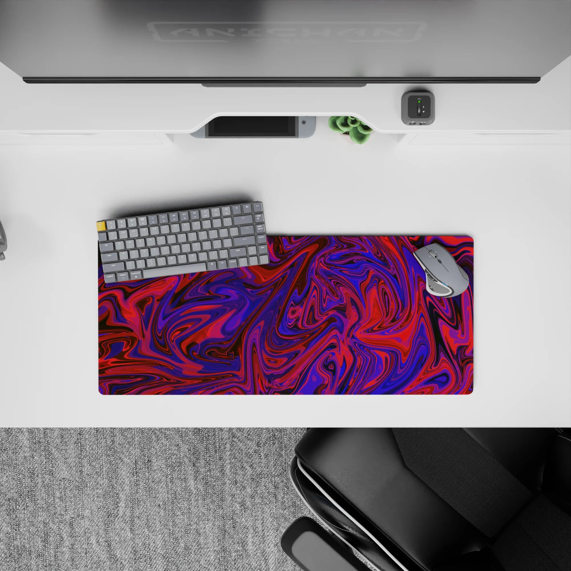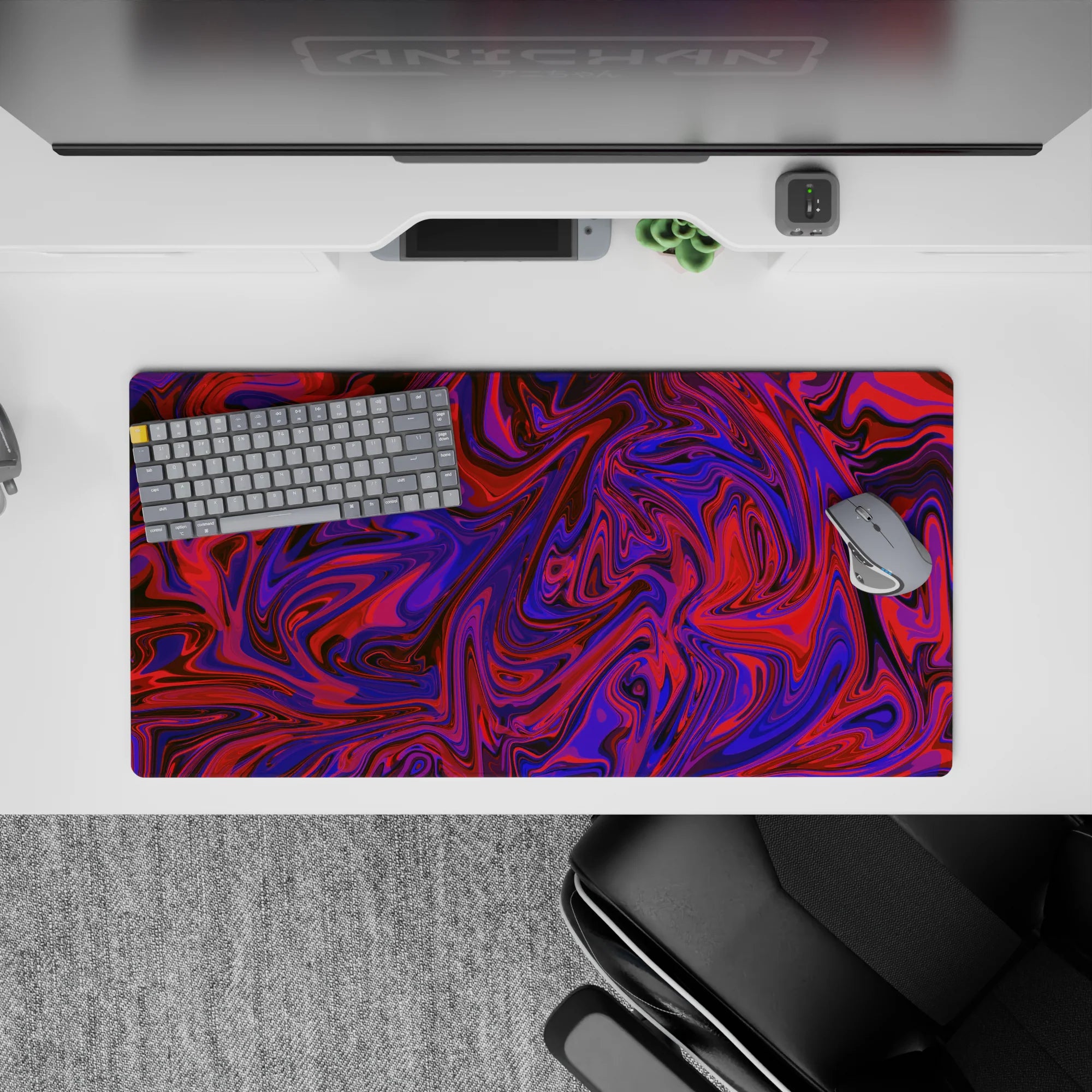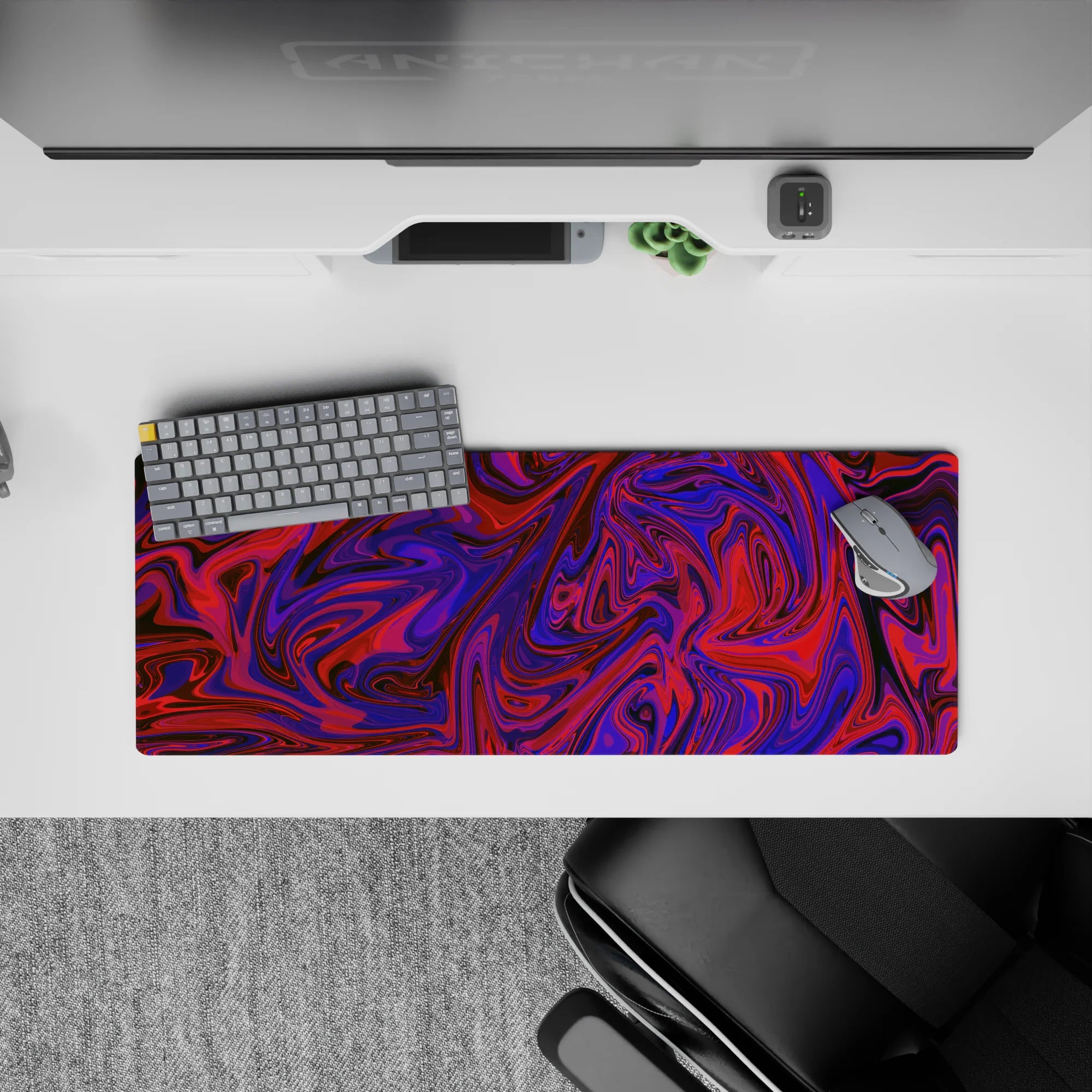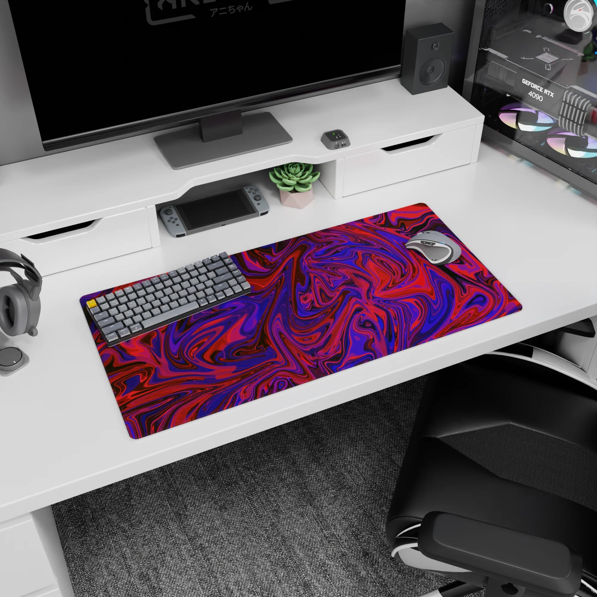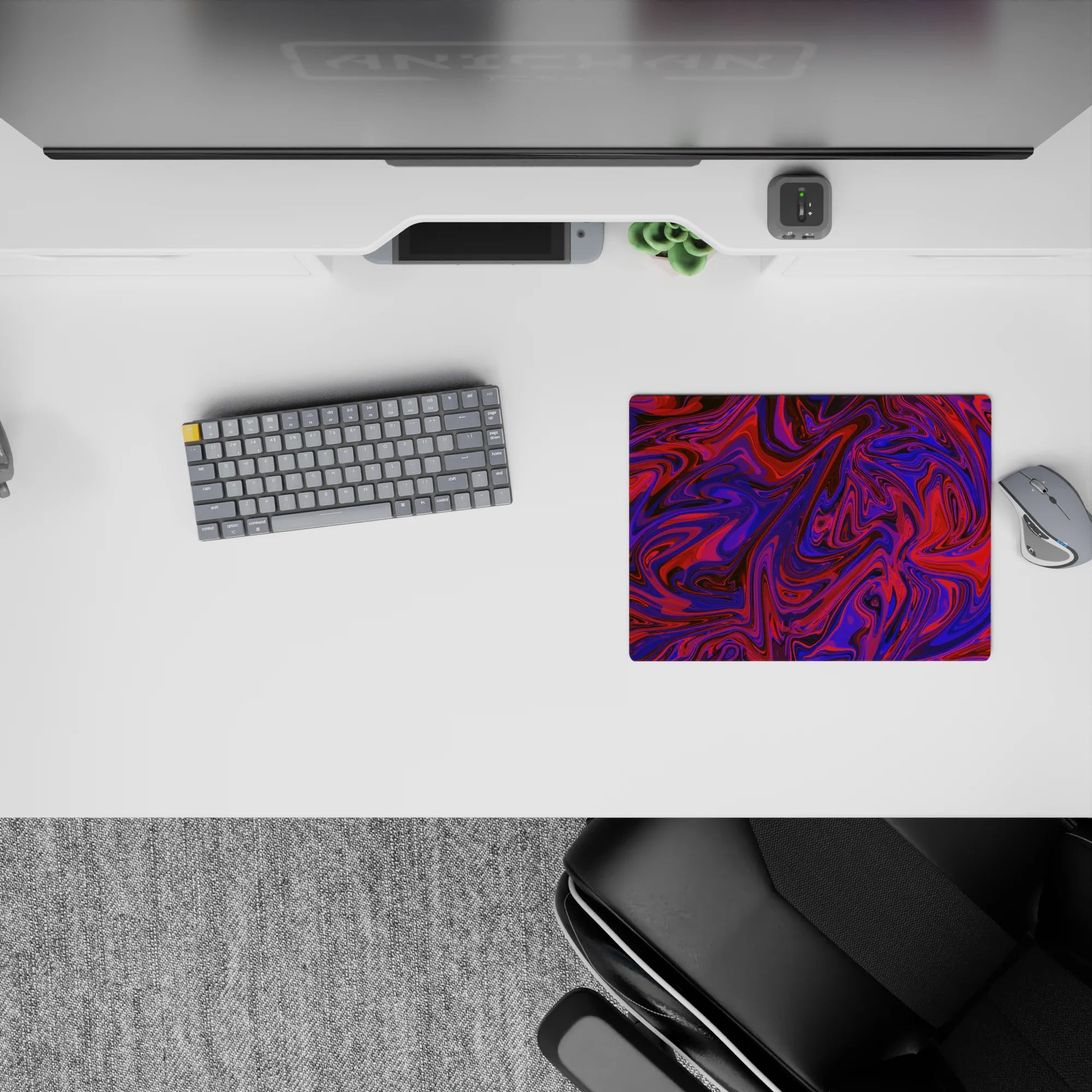 Infuse your workspace with energy and color with this bold, abstract purple and red swirl desk mat. The vivid swirling pattern is perfect for inspiring creativity, focus, and a sense of movement. Ideal for anyone looking to bring a vibrant touch to their setup.
