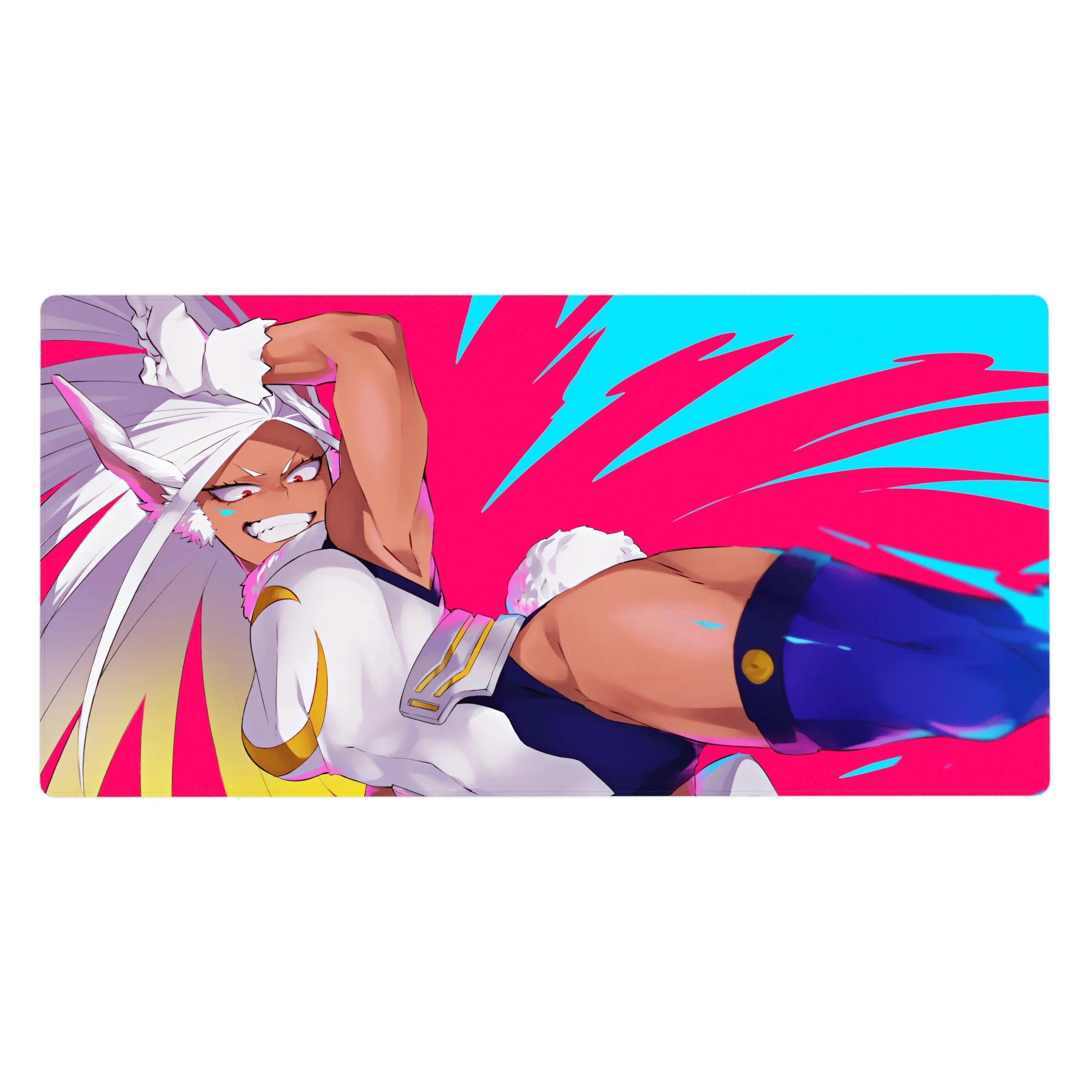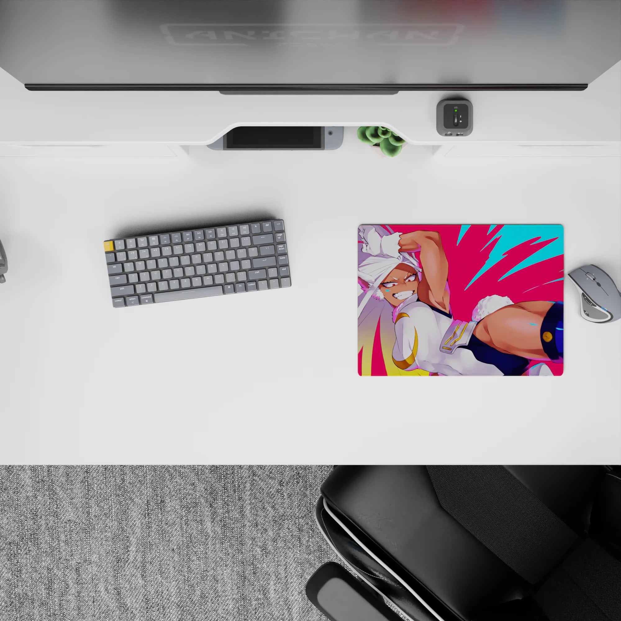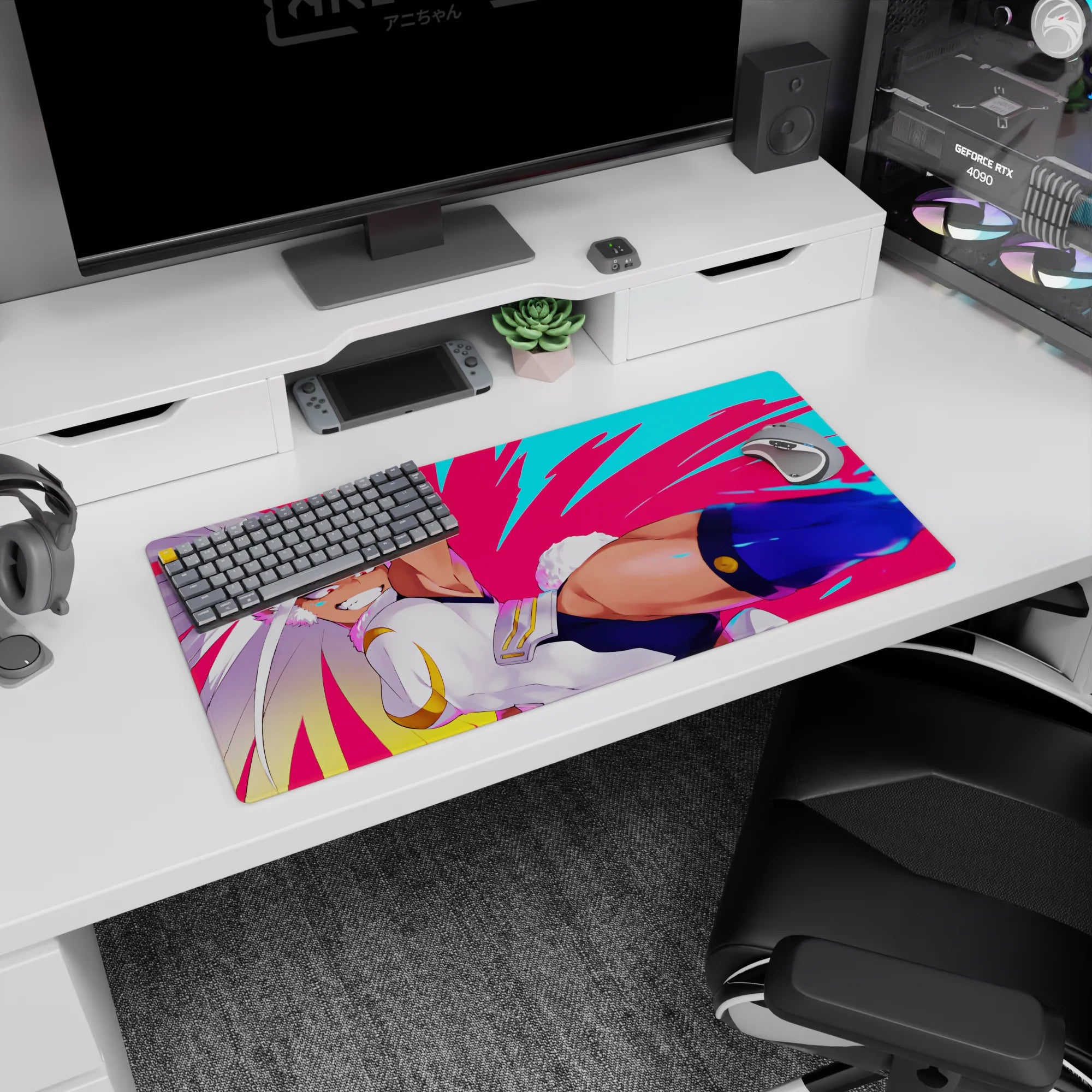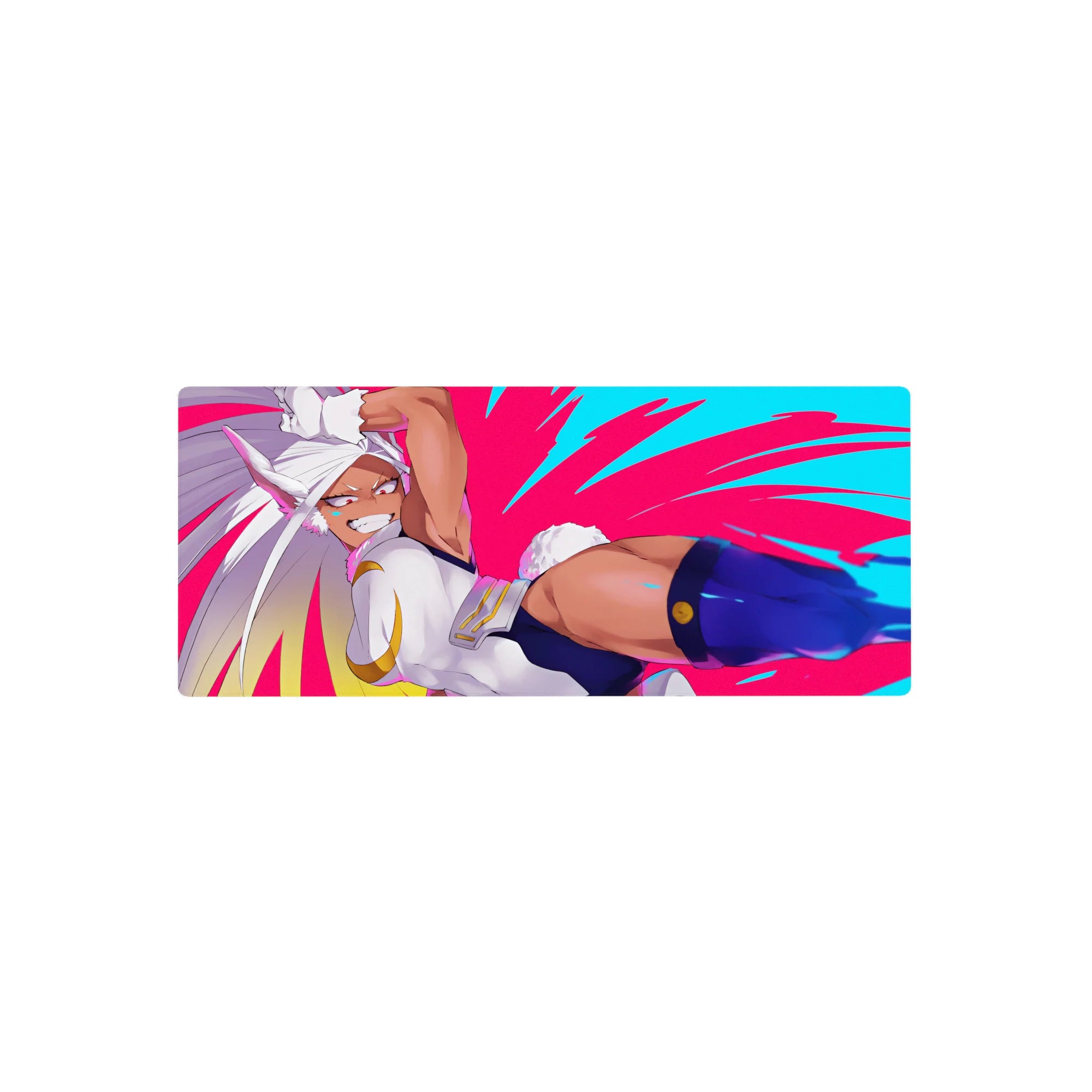 Bring the energy of Mirko, the fearless rabbit hero from My Hero Academia, to your desk with this dynamic mouse pad design. Her fierce expression and explosive pose against a vibrant backdrop make this a bold addition to any fan's setup.