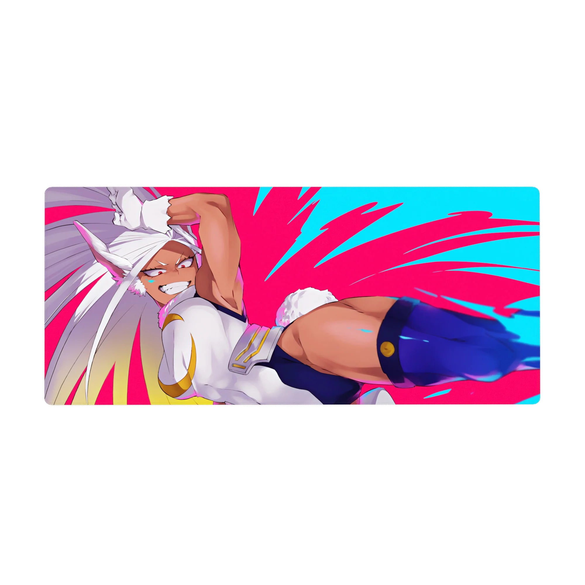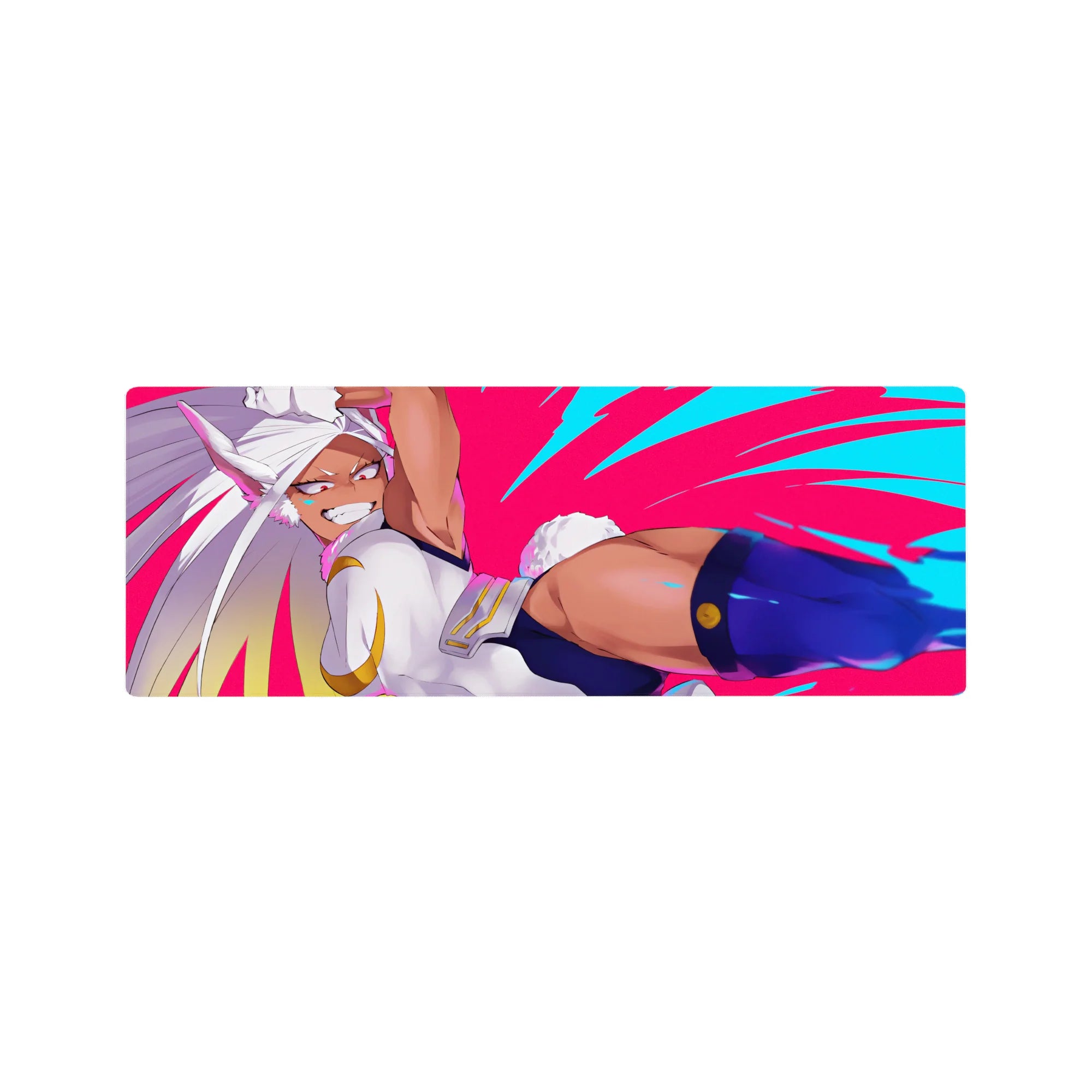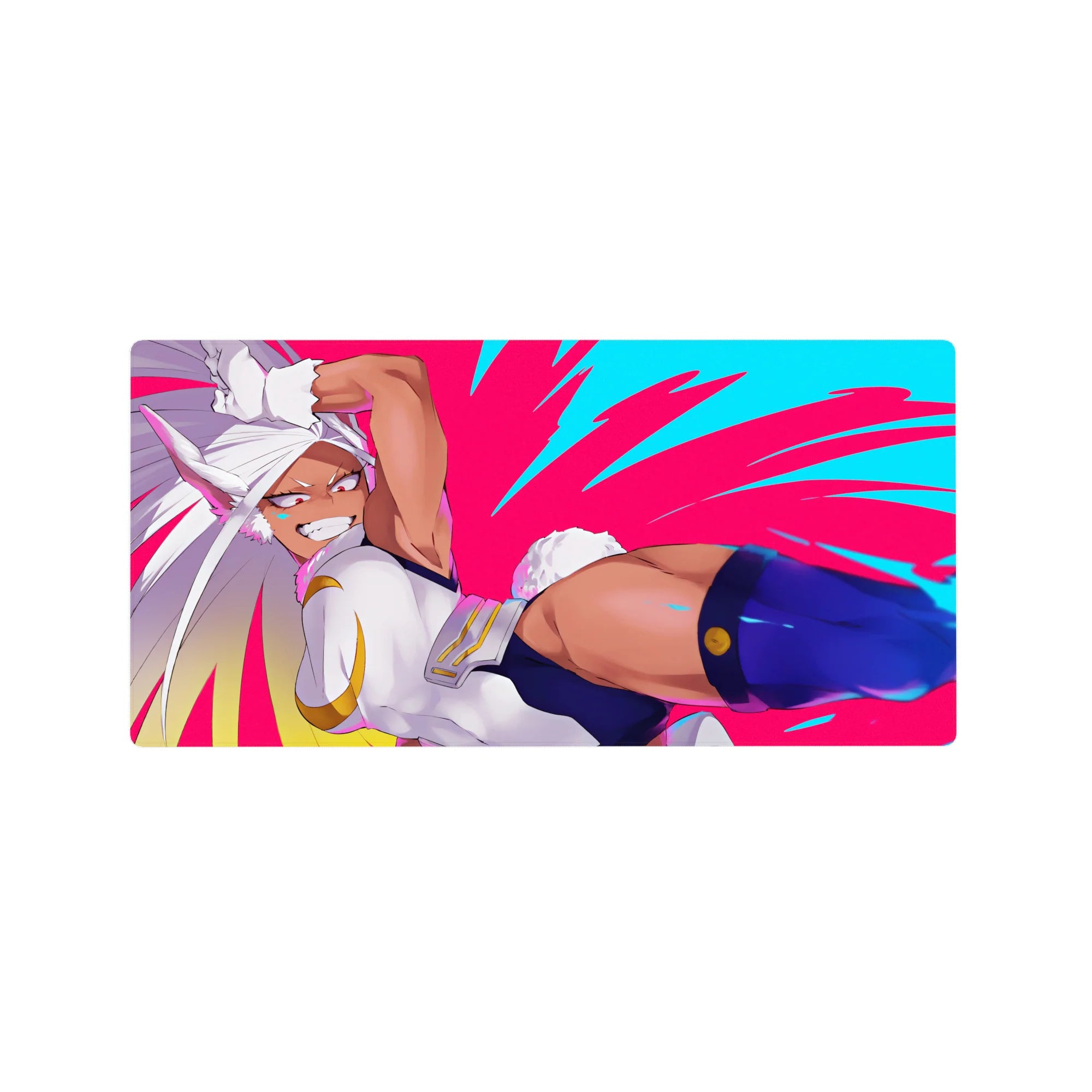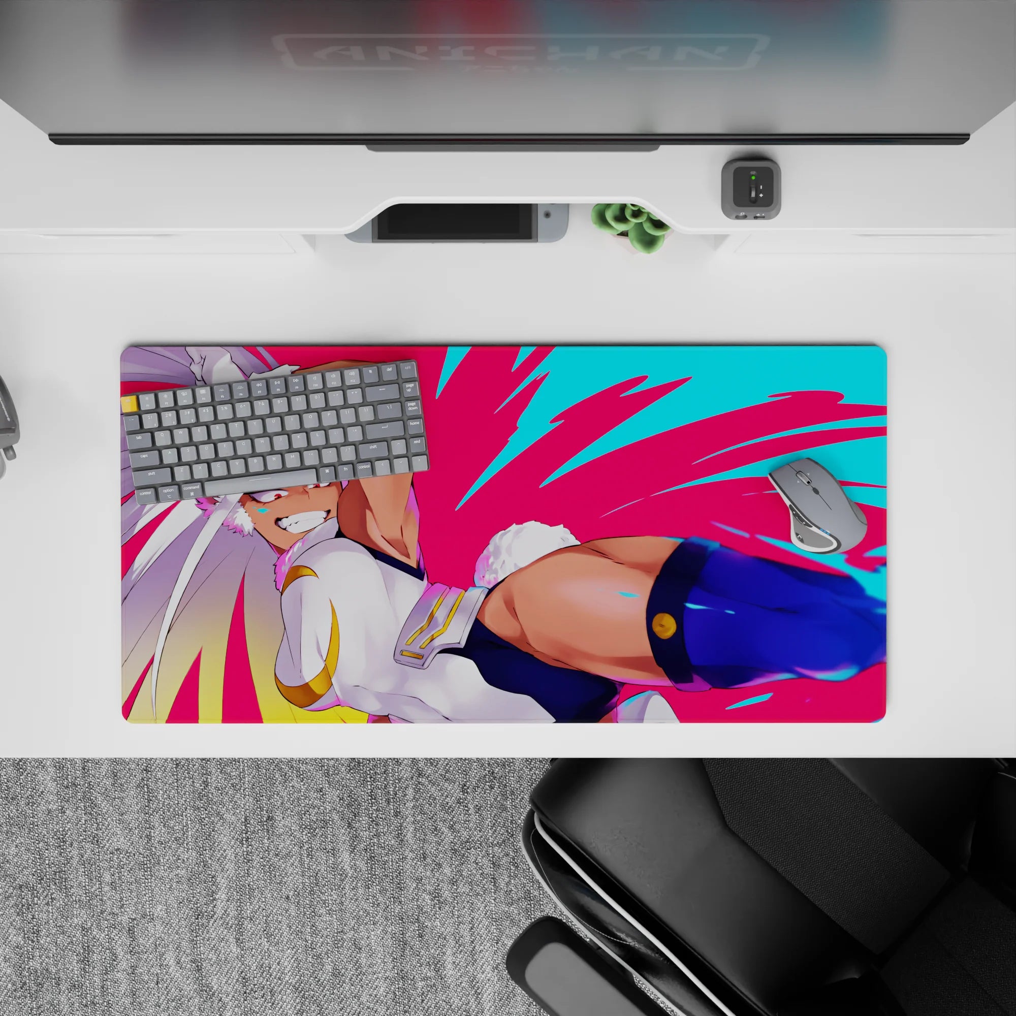 Bring the energy of Mirko, the fearless rabbit hero from My Hero Academia, to your desk with this dynamic mouse pad design. Her fierce expression and explosive pose against a vibrant backdrop make this a bold addition to any fan's setup.