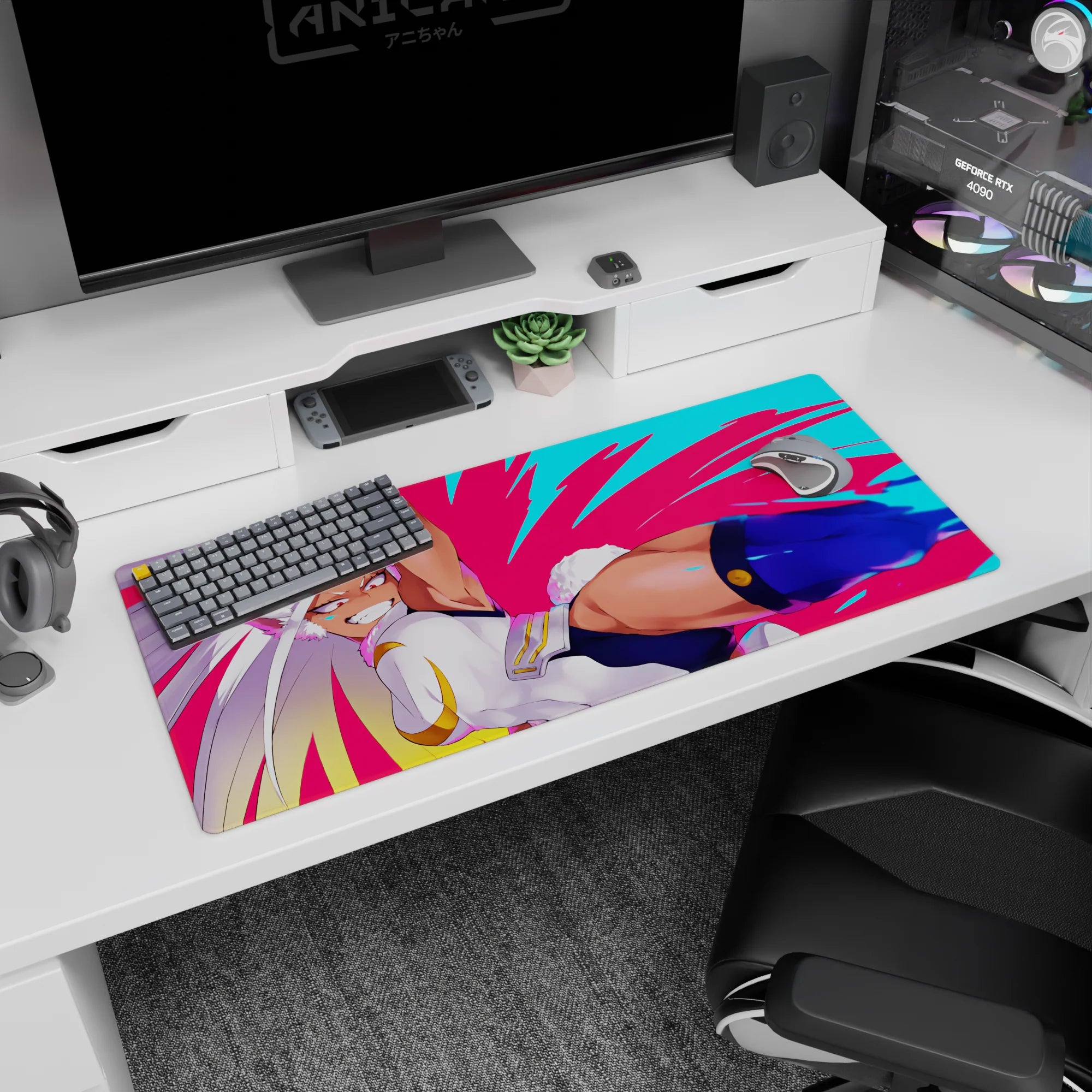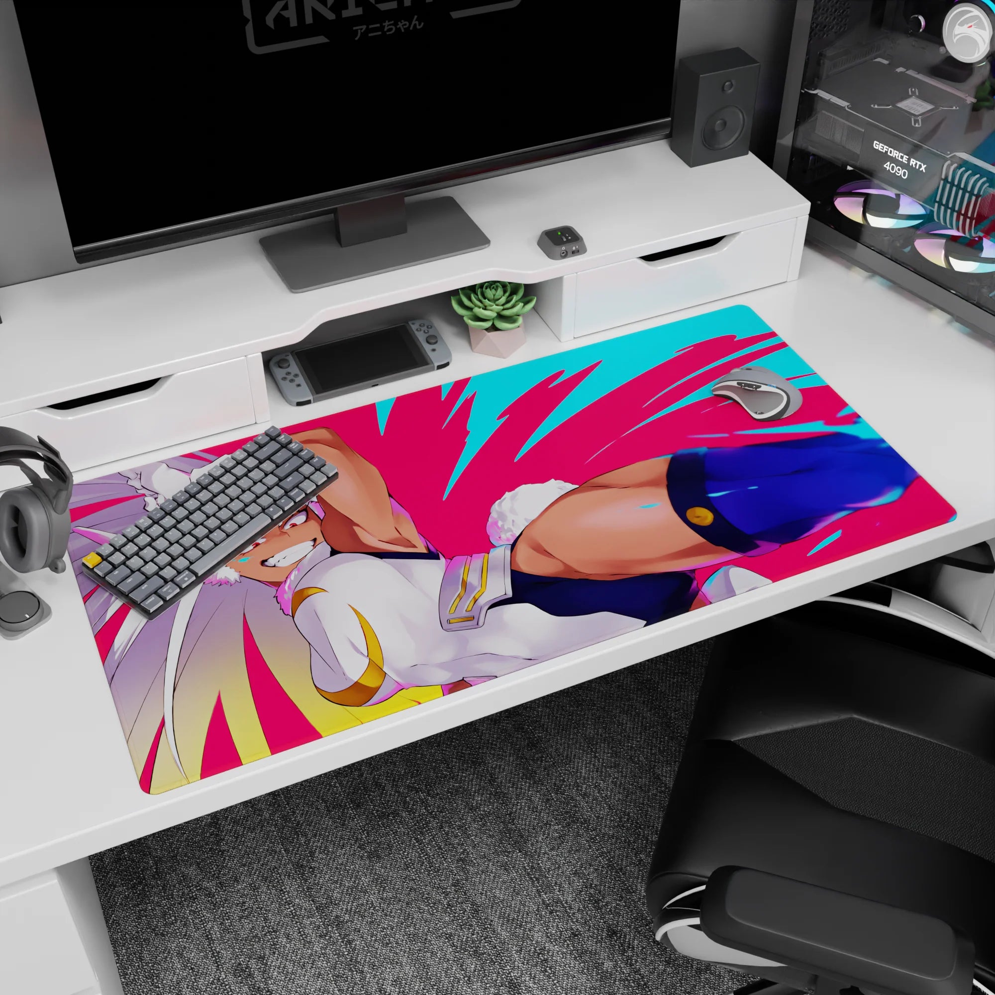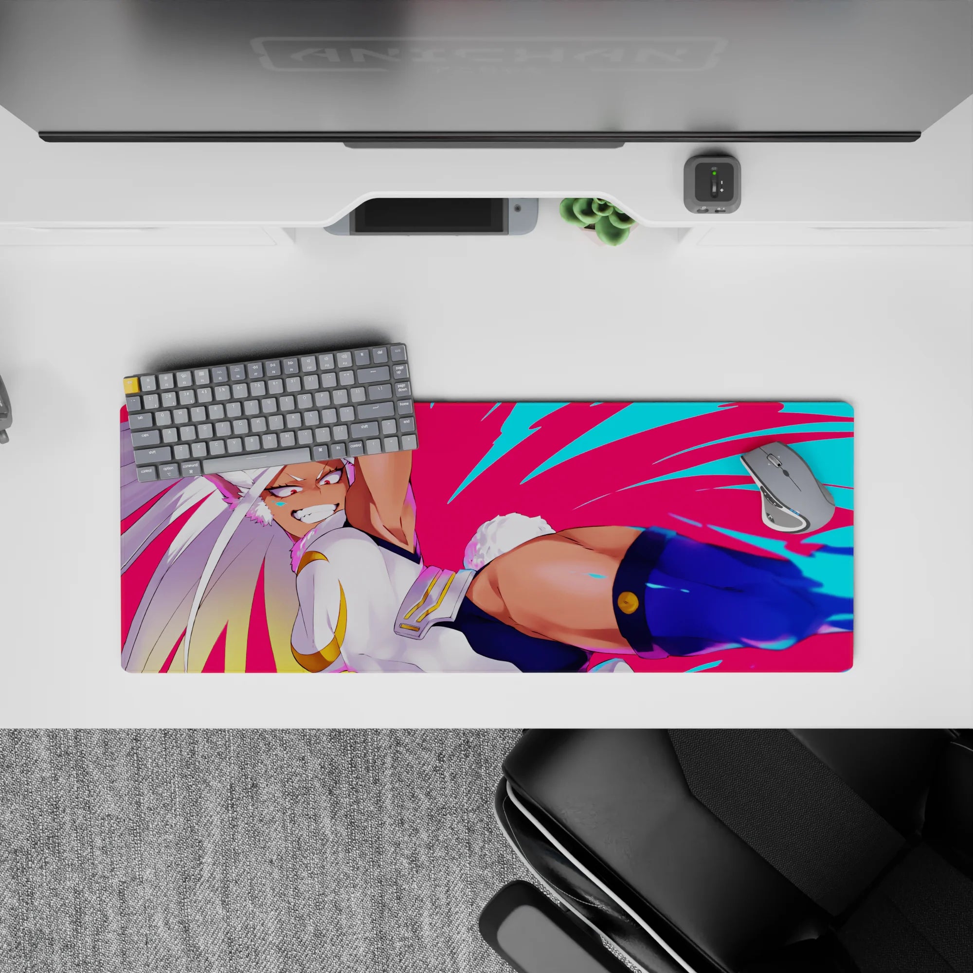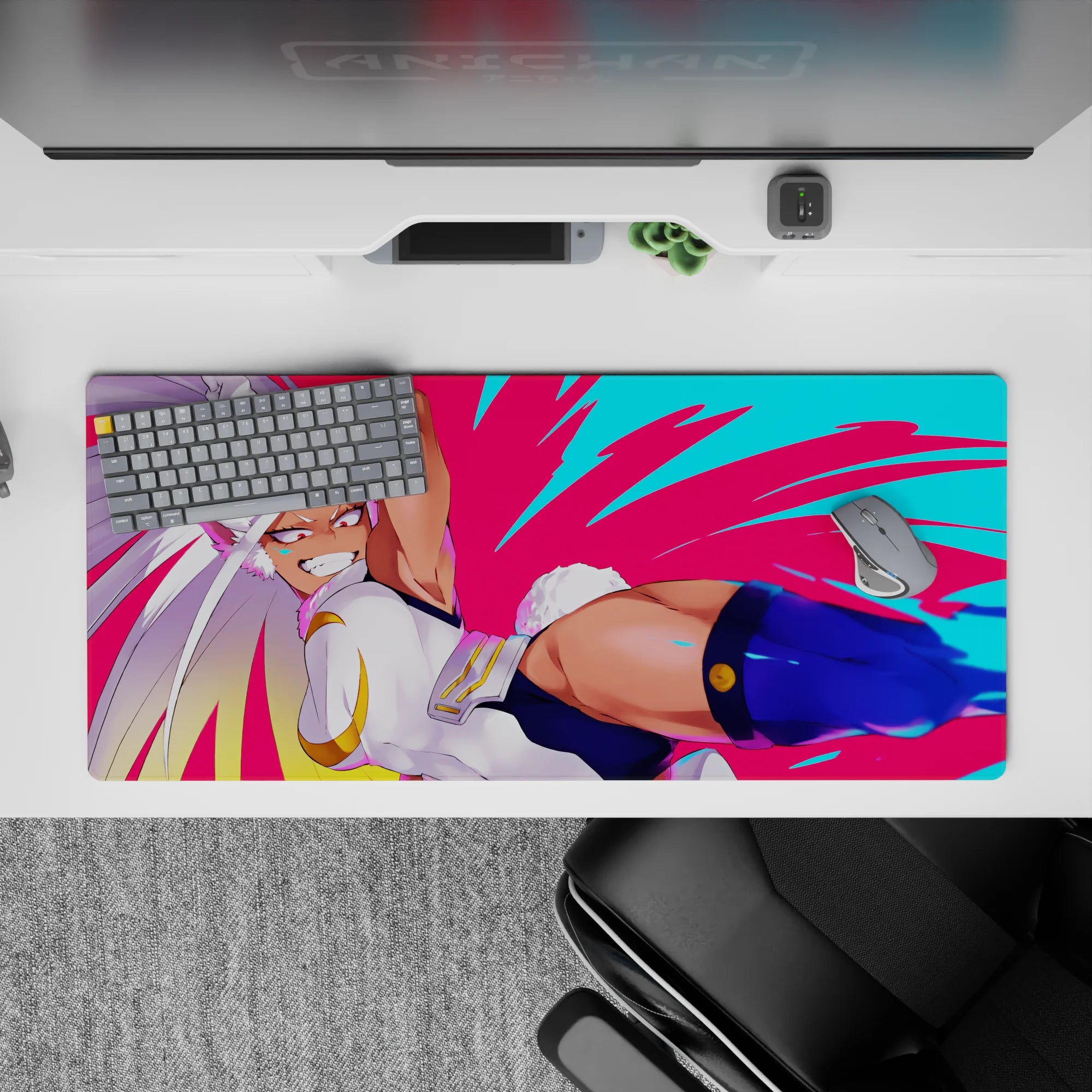 Bring the energy of Mirko, the fearless rabbit hero from My Hero Academia, to your desk with this dynamic mouse pad design. Her fierce expression and explosive pose against a vibrant backdrop make this a bold addition to any fan's setup.