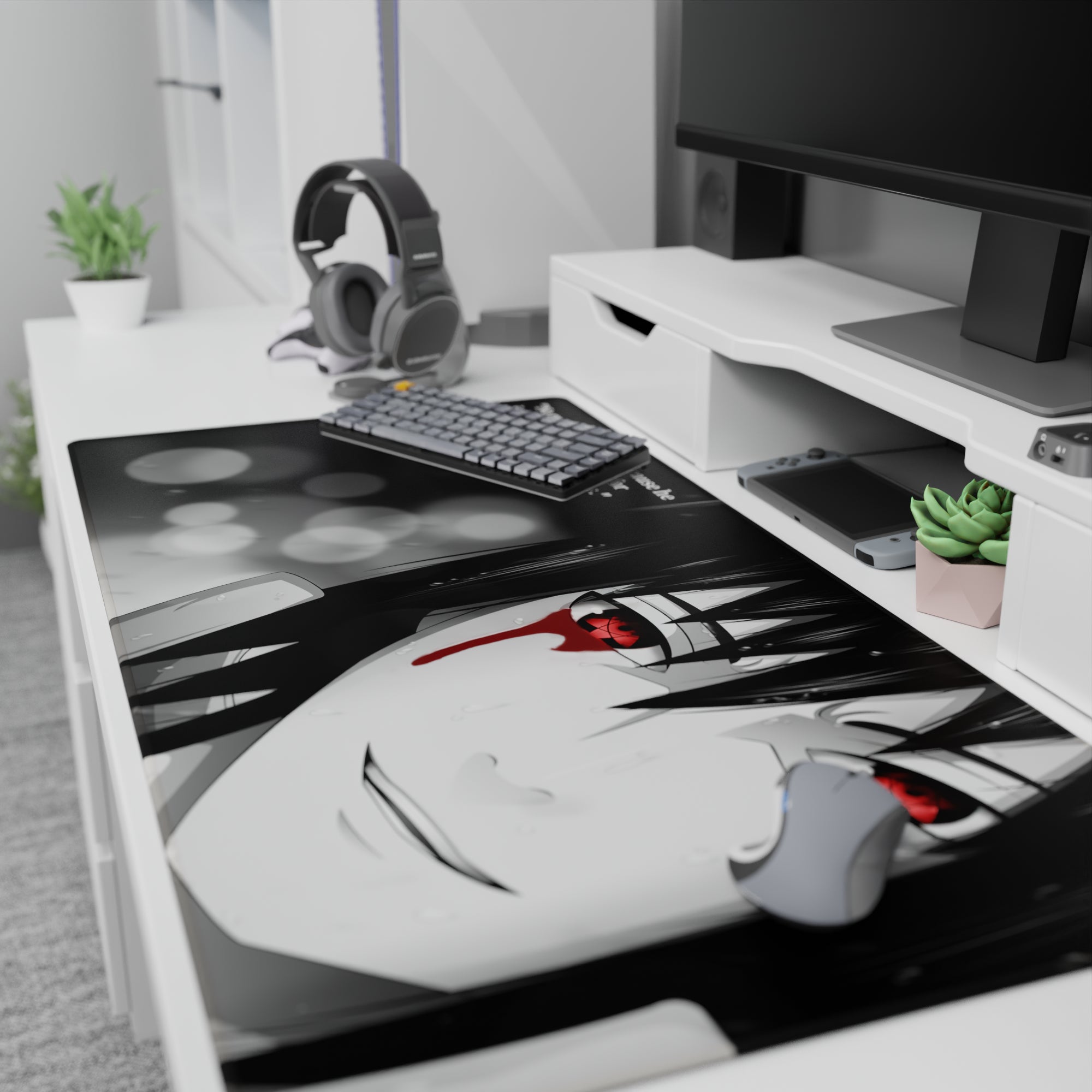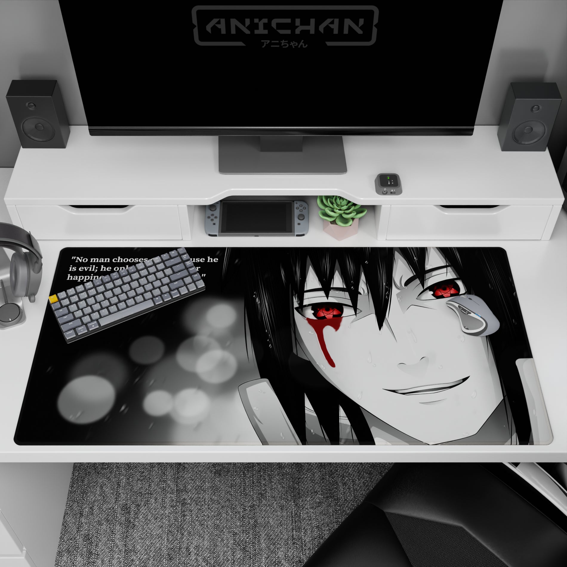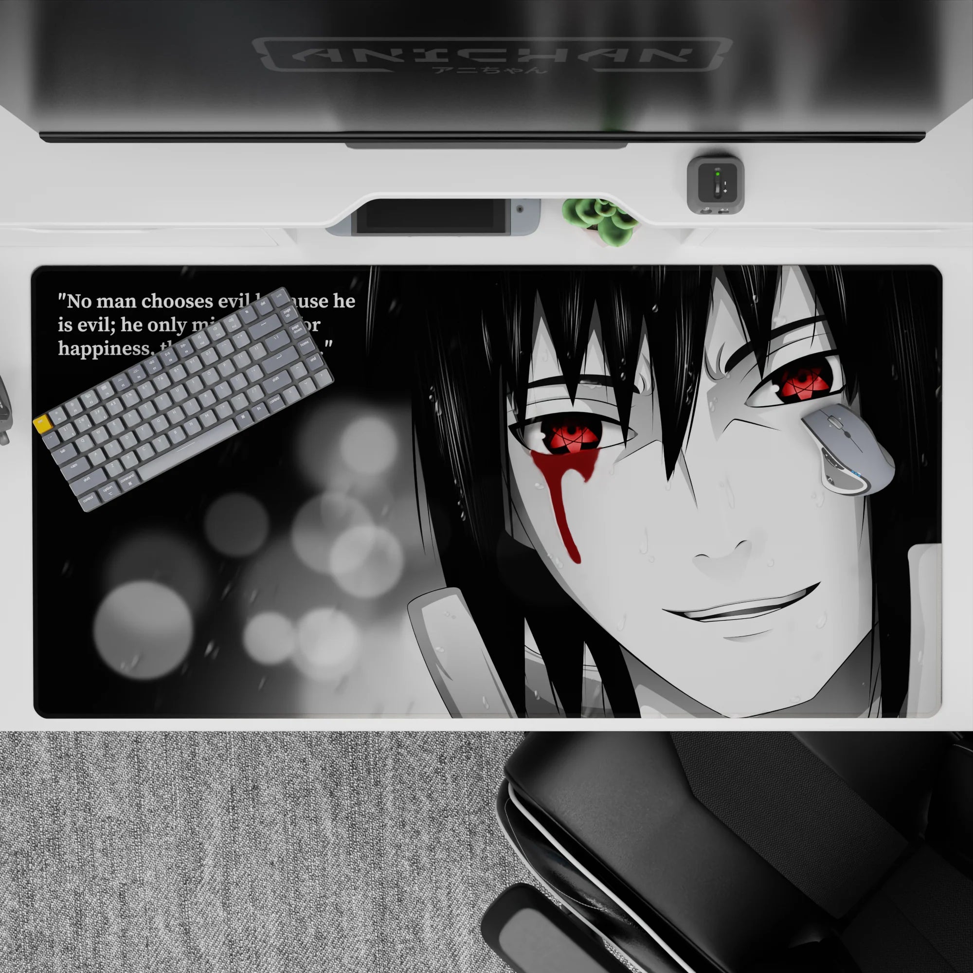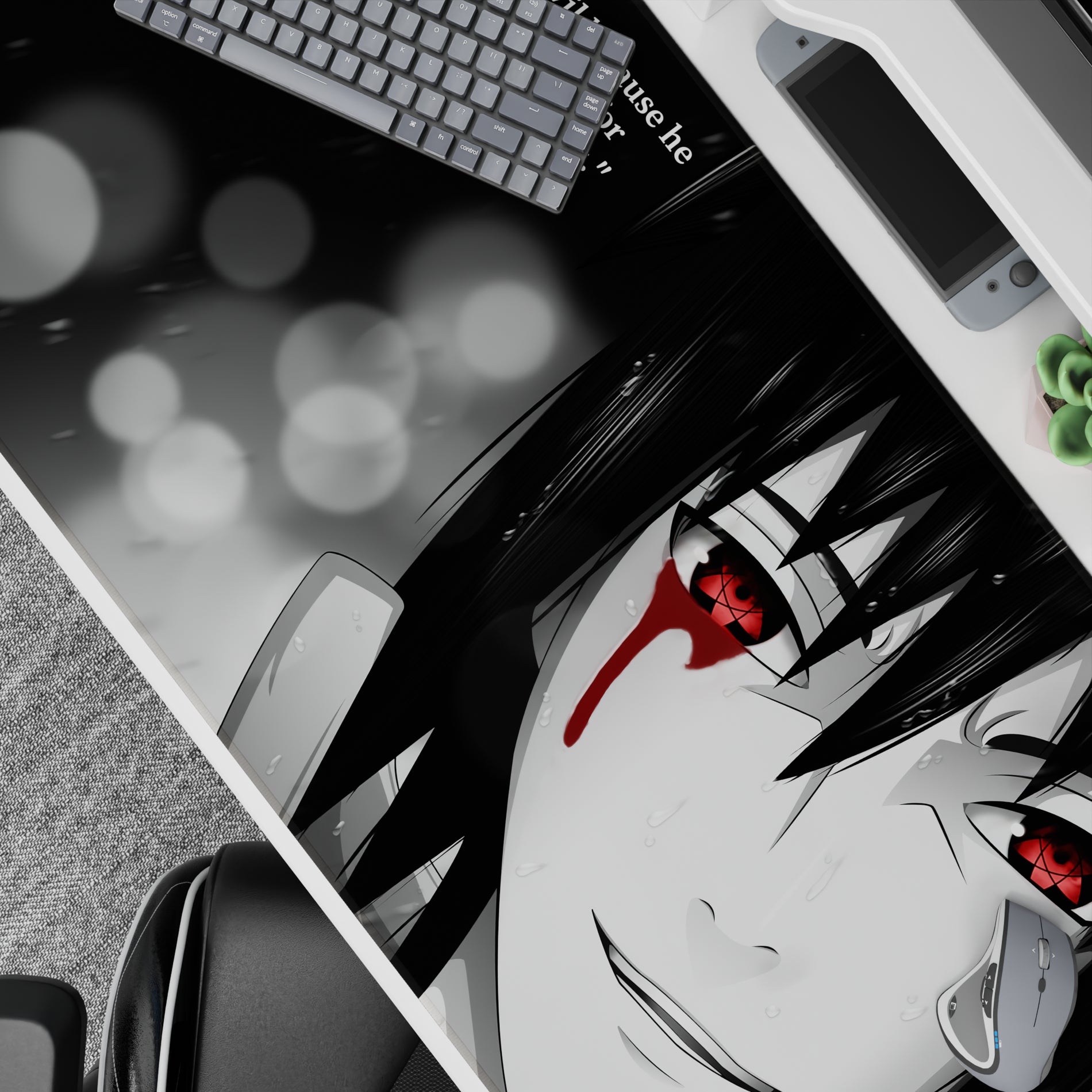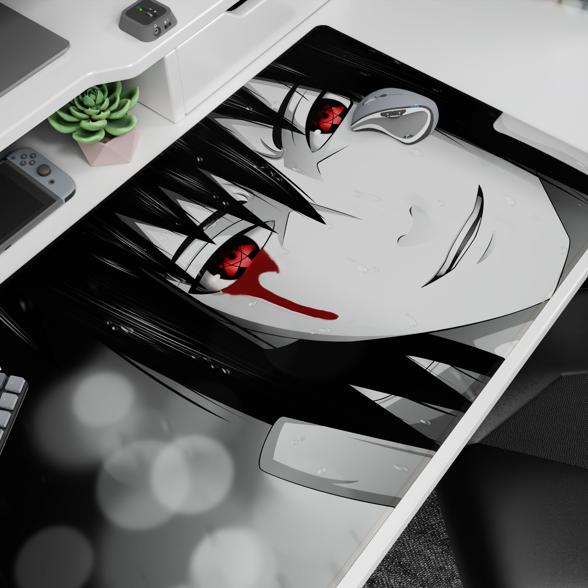 Discover our anime mouse pad, featuring the captivating Sharingan eyes, wrapped in monochrome shadows. A design that speaks volumes, perfect for those who appreciate haunting beauty. Make your workspace reflect your unique style while embracing the art of storytelling.