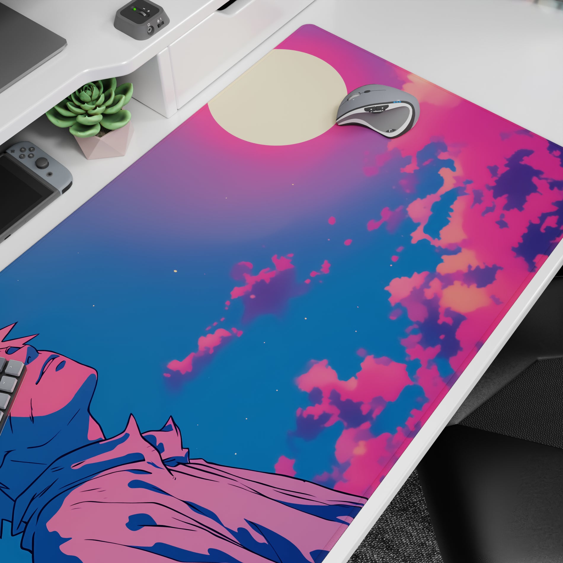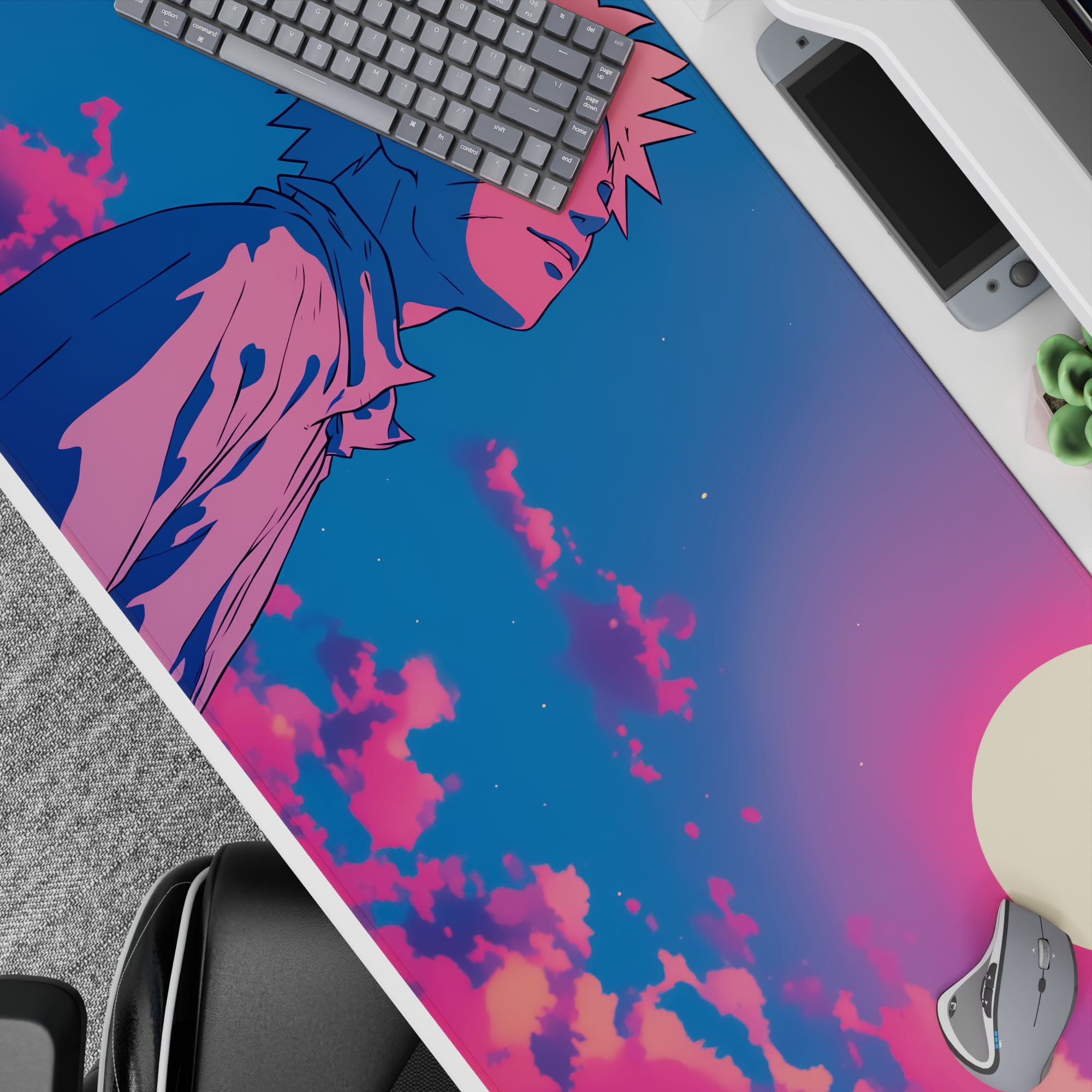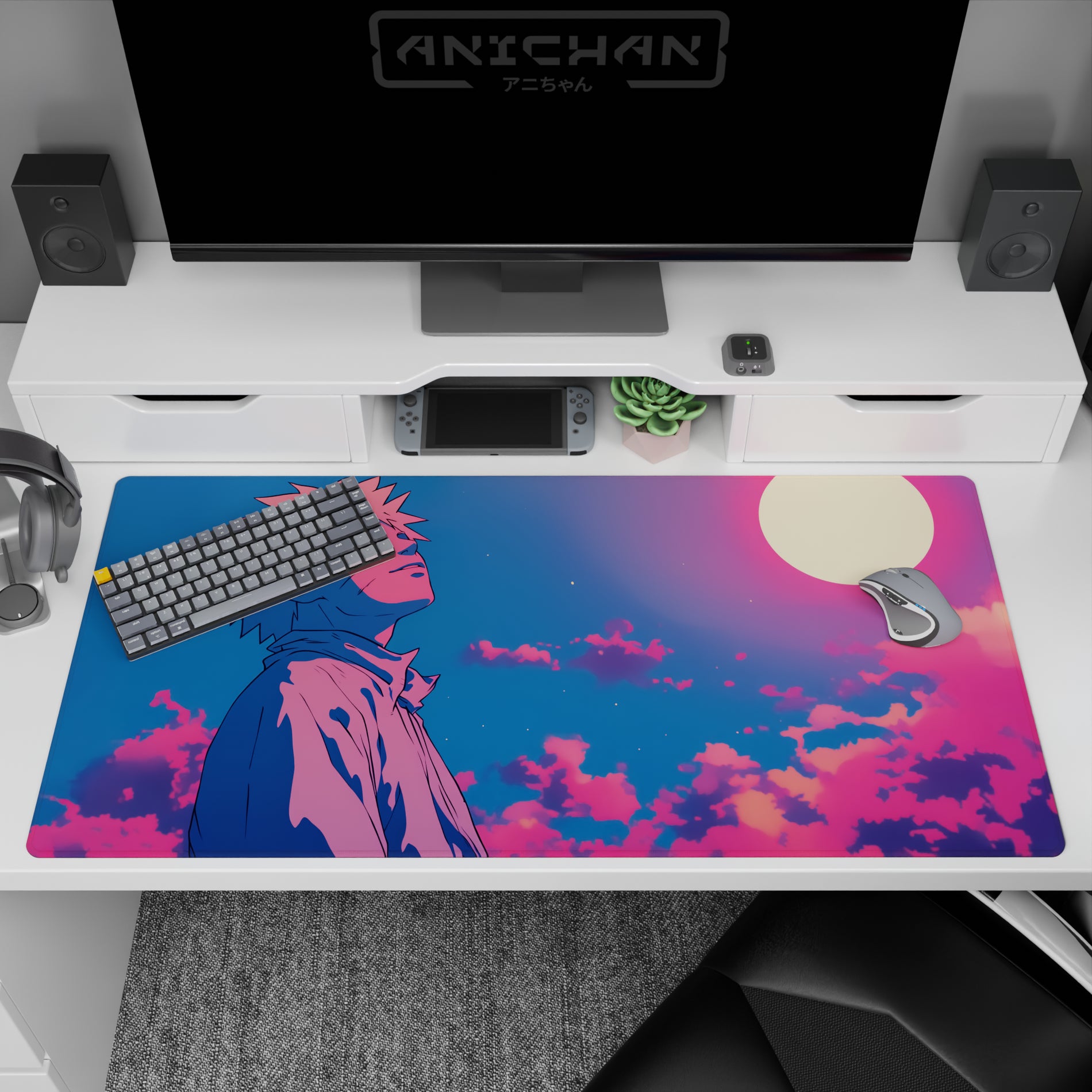 Immerse yourself in tranquility with our anime mouse pad featuring Naruto Uzumaki under a moonlit sky. Soft hues of pink, violet, and blue blend seamlessly, creating a calming yet purposeful atmosphere. Perfect for fans seeking subtle strength on their desk, this piece embodies hope and resilience.