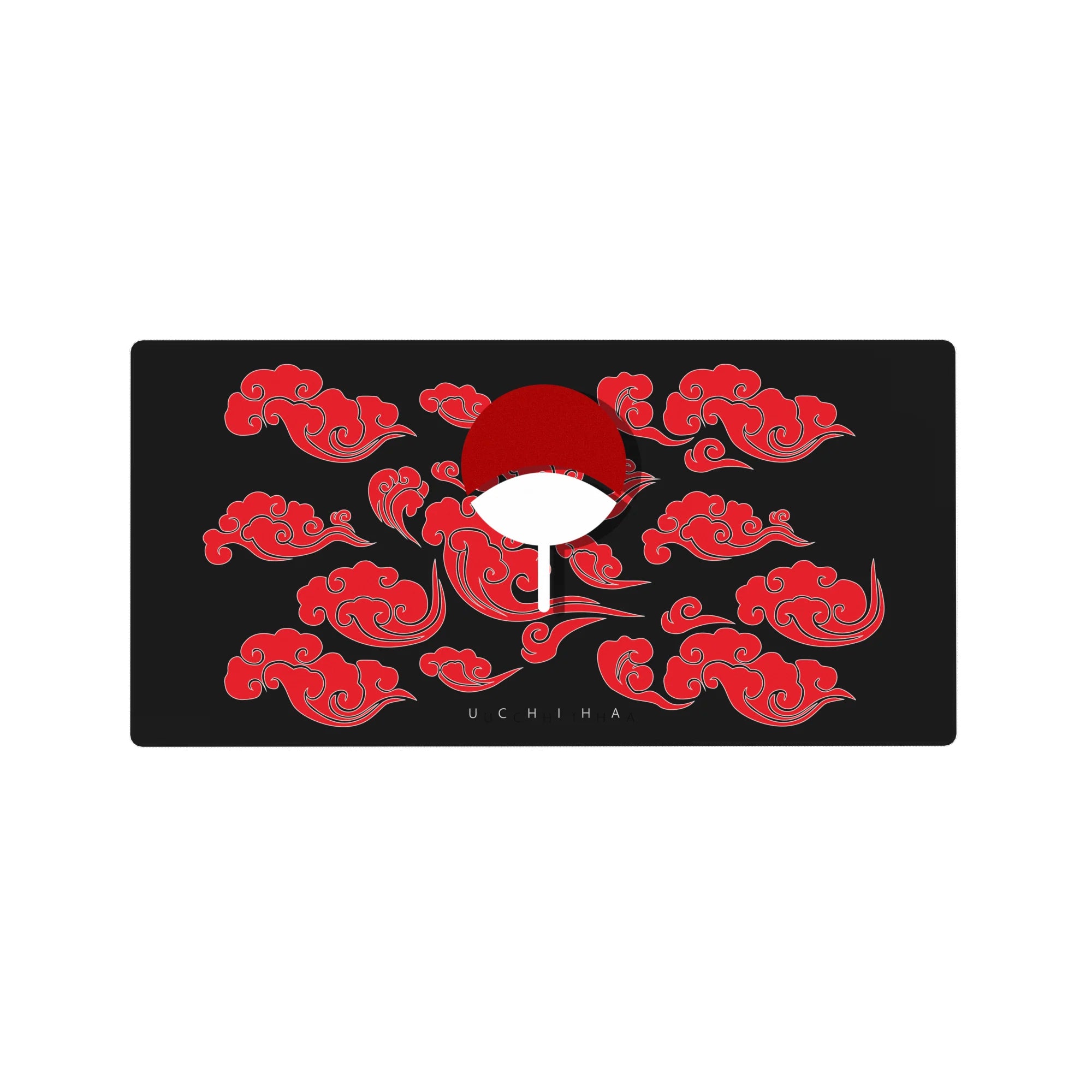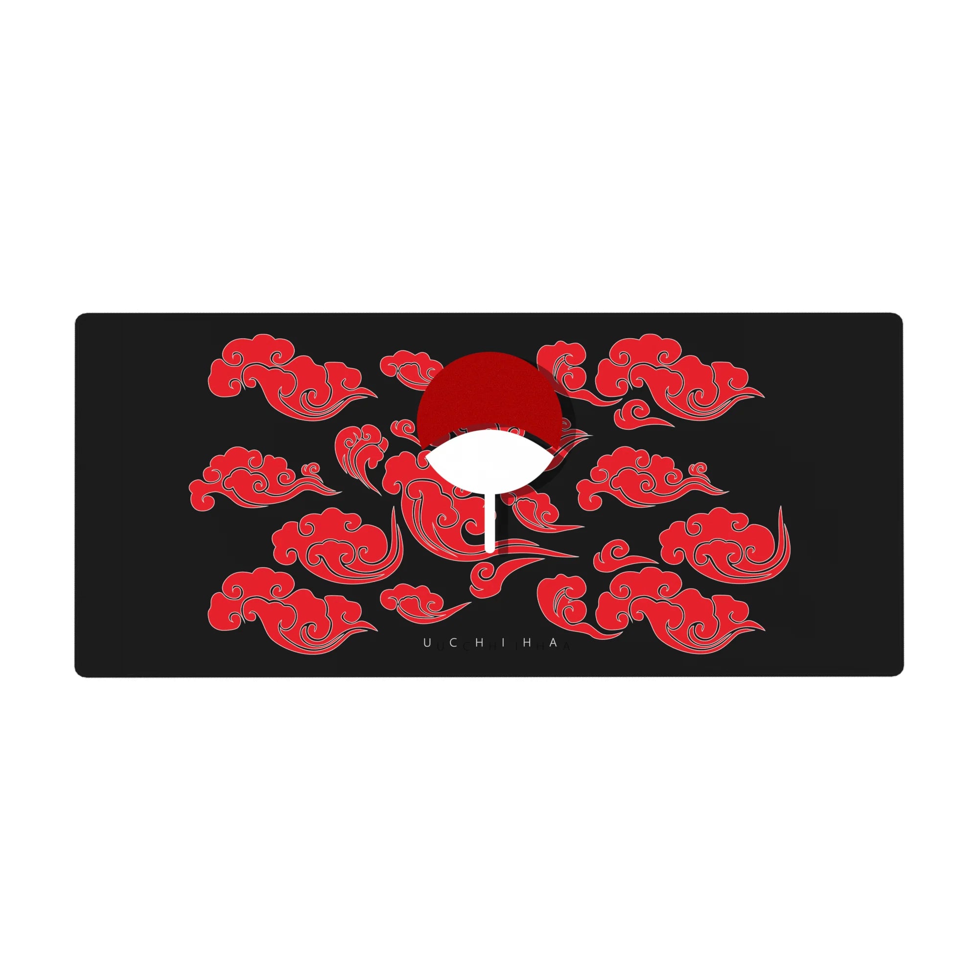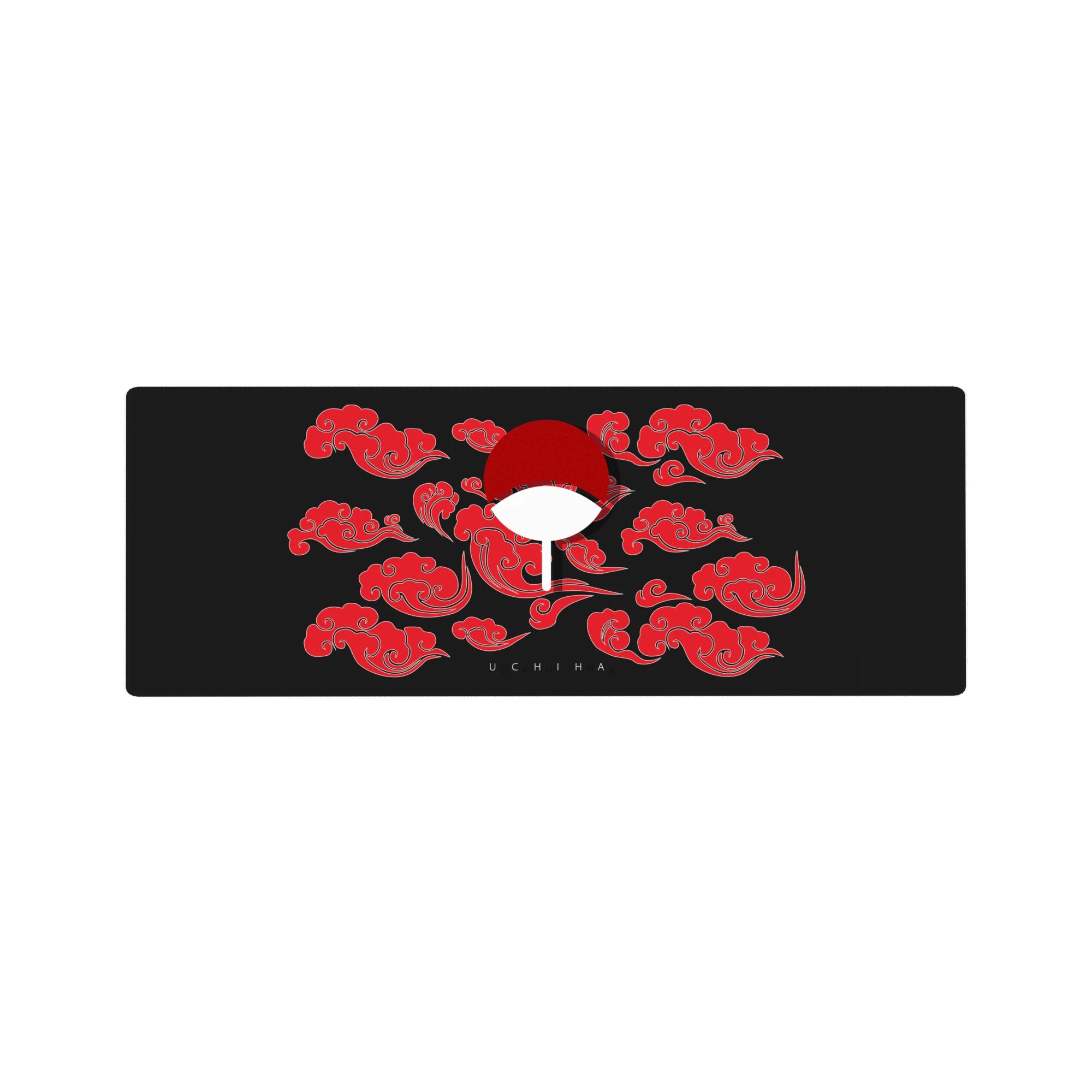 This desk pad celebrates the legacy of the Uchiha clan, featuring their iconic fan symbol surrounded by red clouds, symbolizing strength and power. A bold statement for any fan of legendary shinobi heritage and the mighty Sharingan.