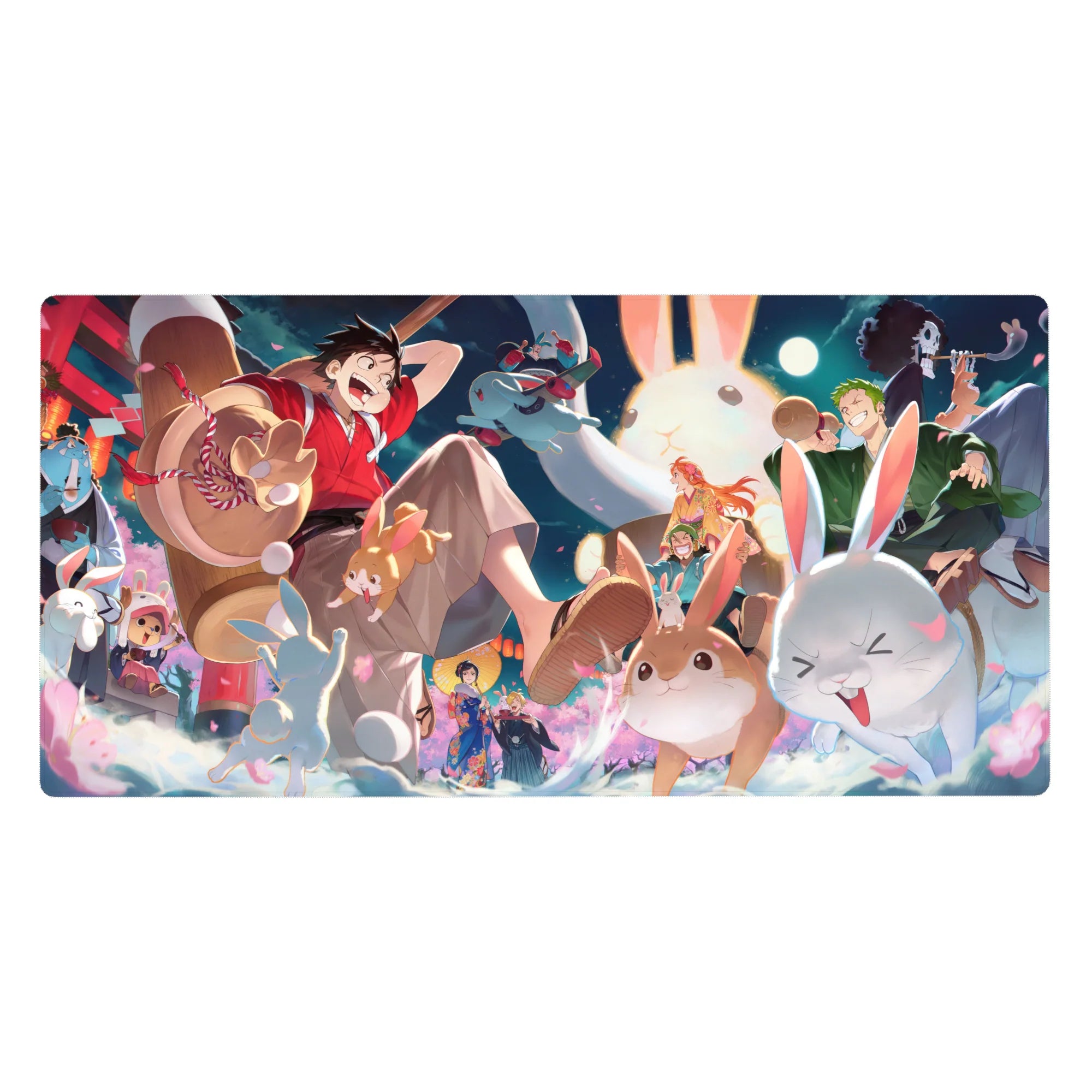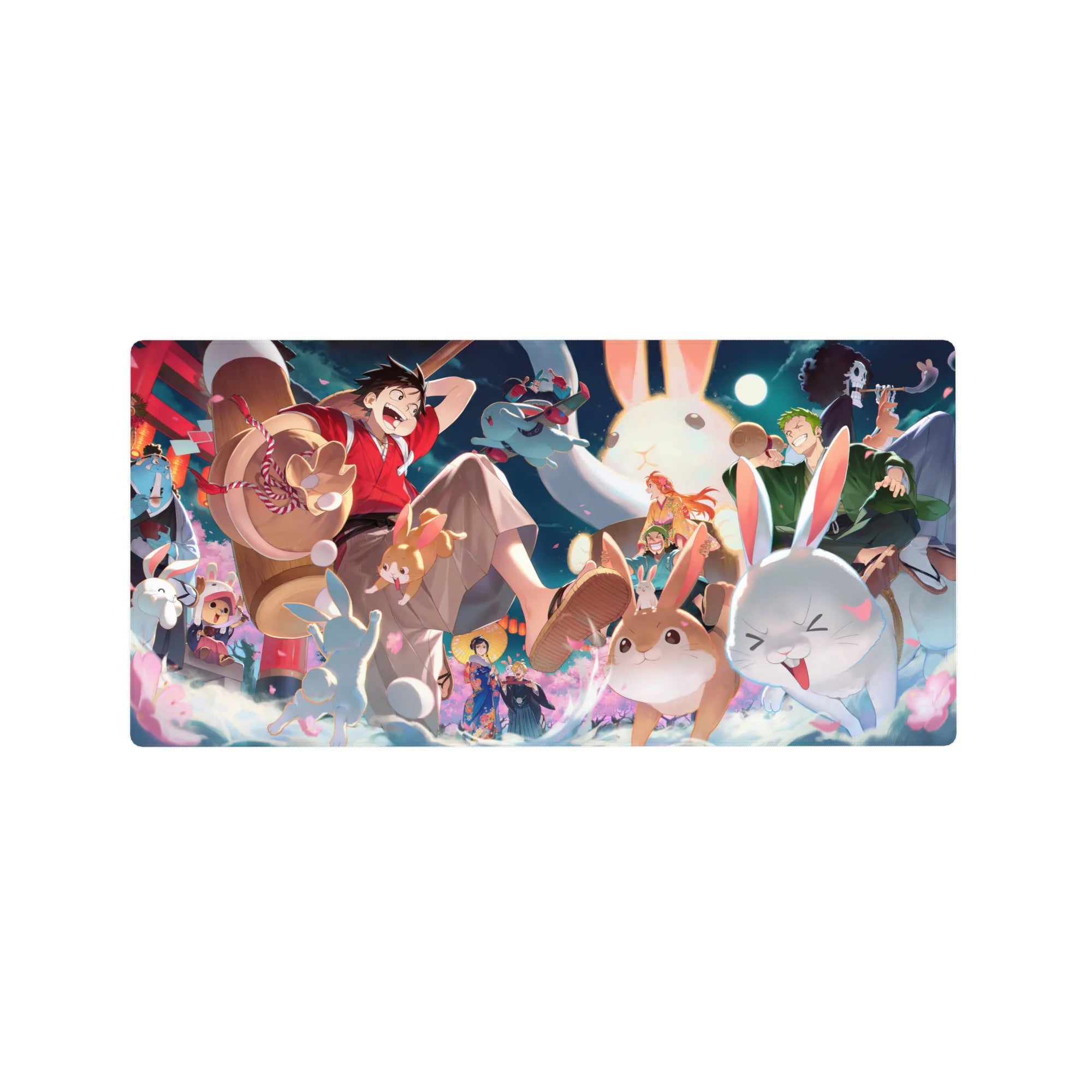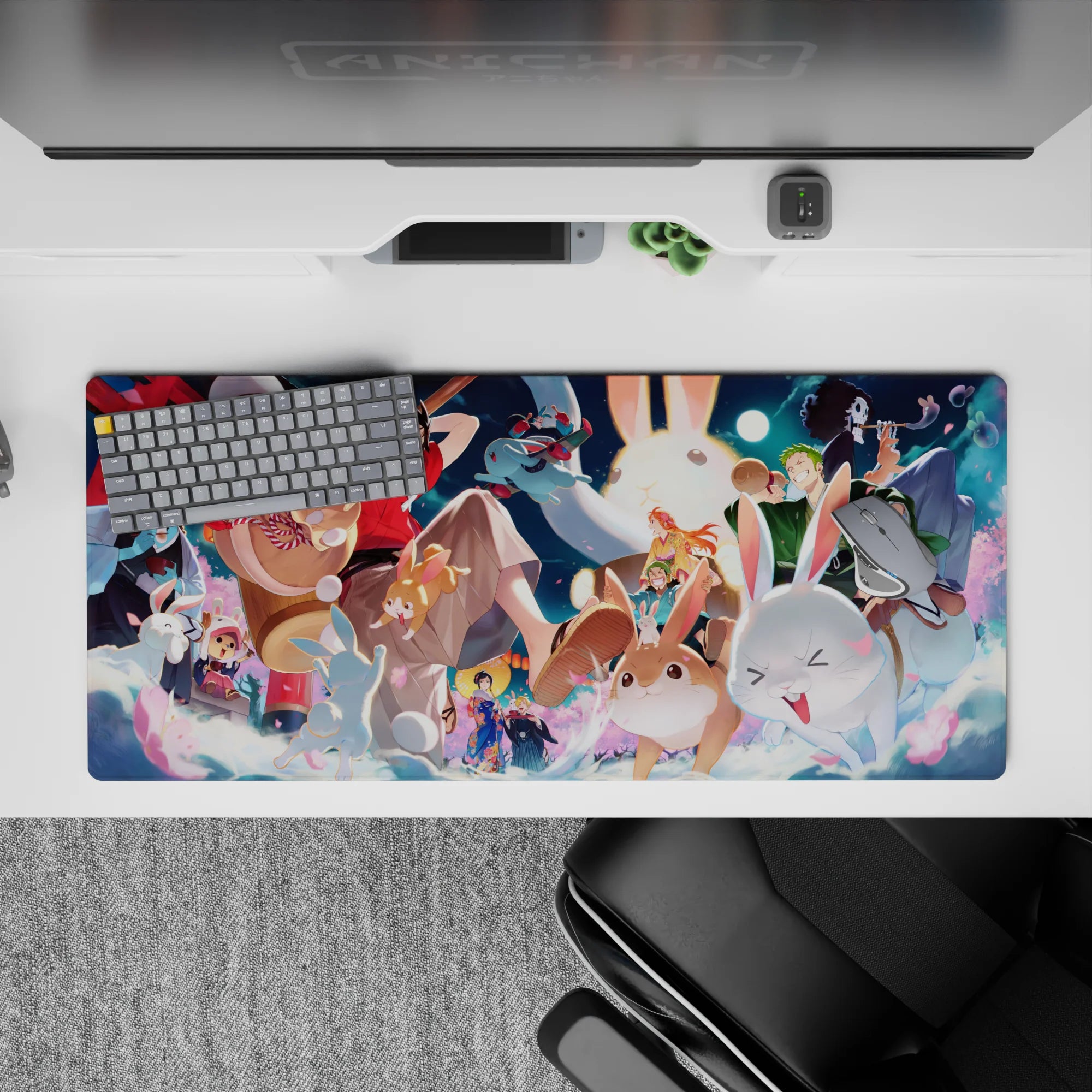Cute bunny artwork on 36x16 mouse pad captures Straw Hat Pirates' fun and festive energy in vivid detail