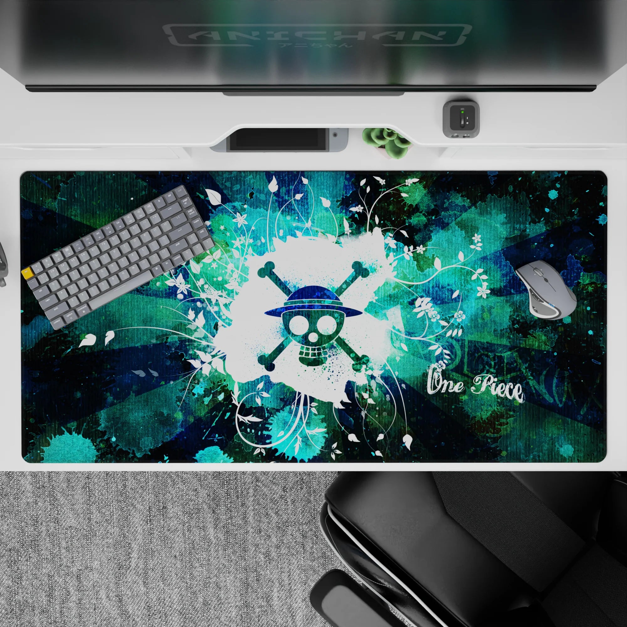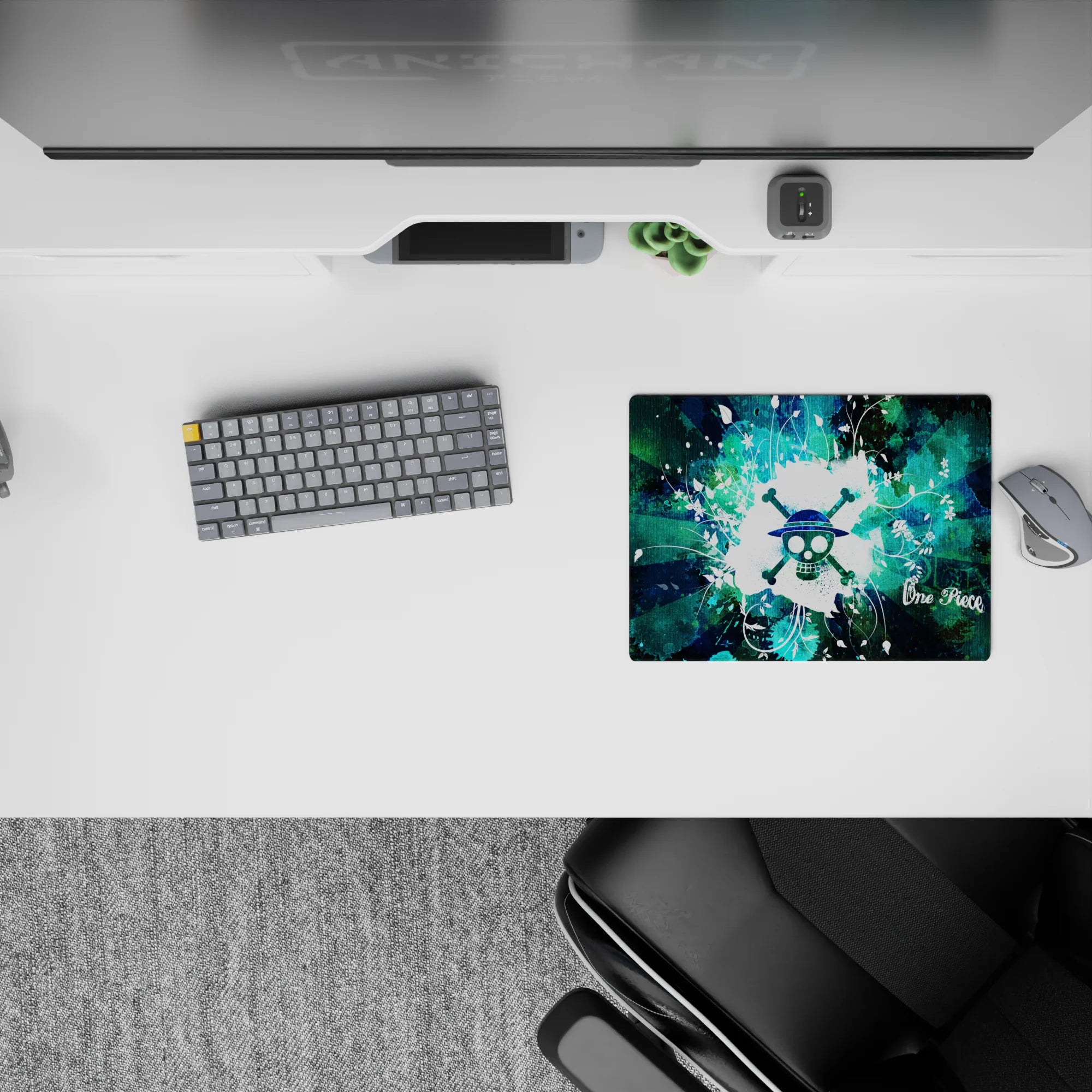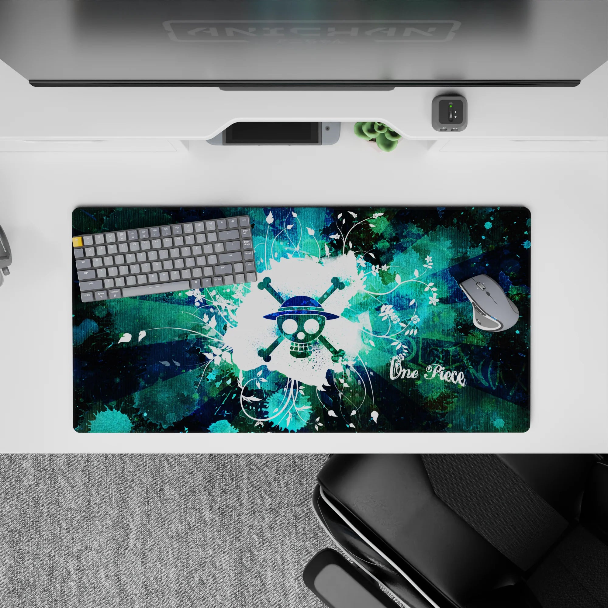 Celebrate the iconic Straw Hat Pirates with this stunning floral-inspired mouse pad design. The Jolly Roger is surrounded by beautiful splashes of blue, green, and floral patterns, making it the perfect blend of nature and the adventurous spirit of One Piece.