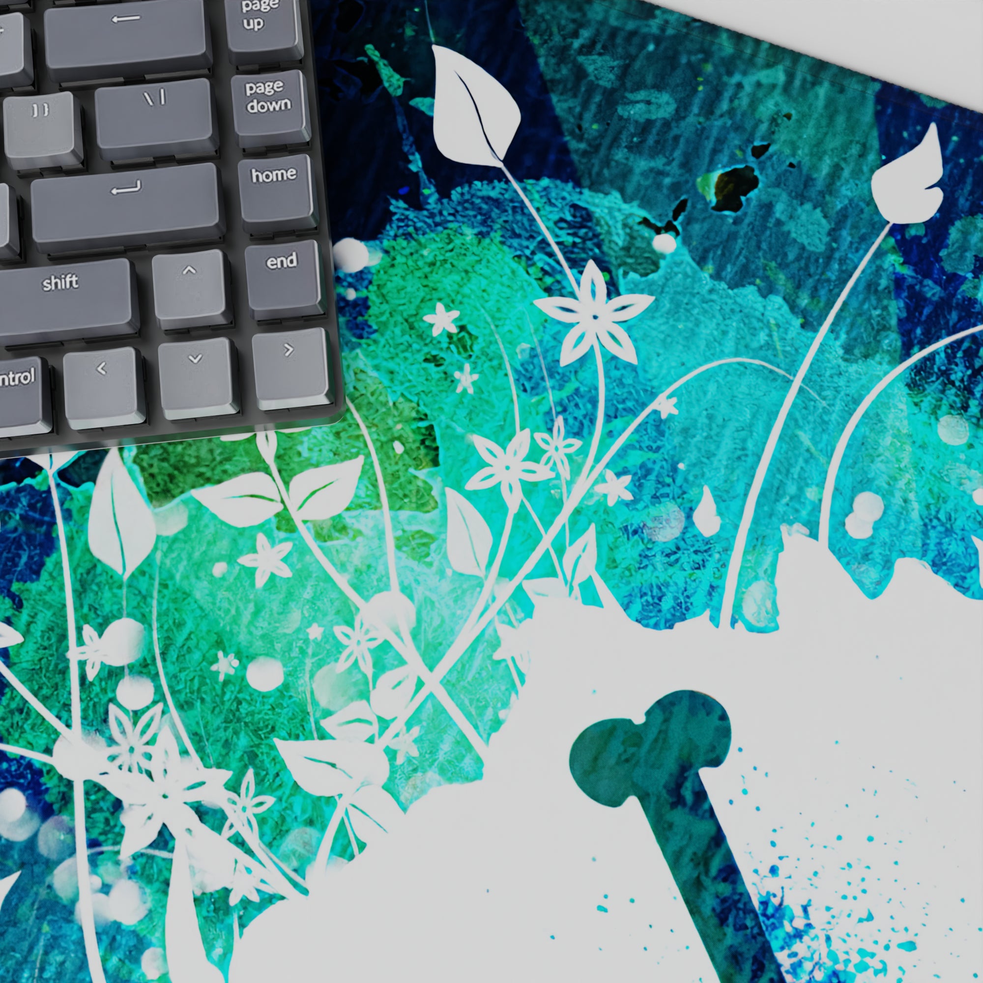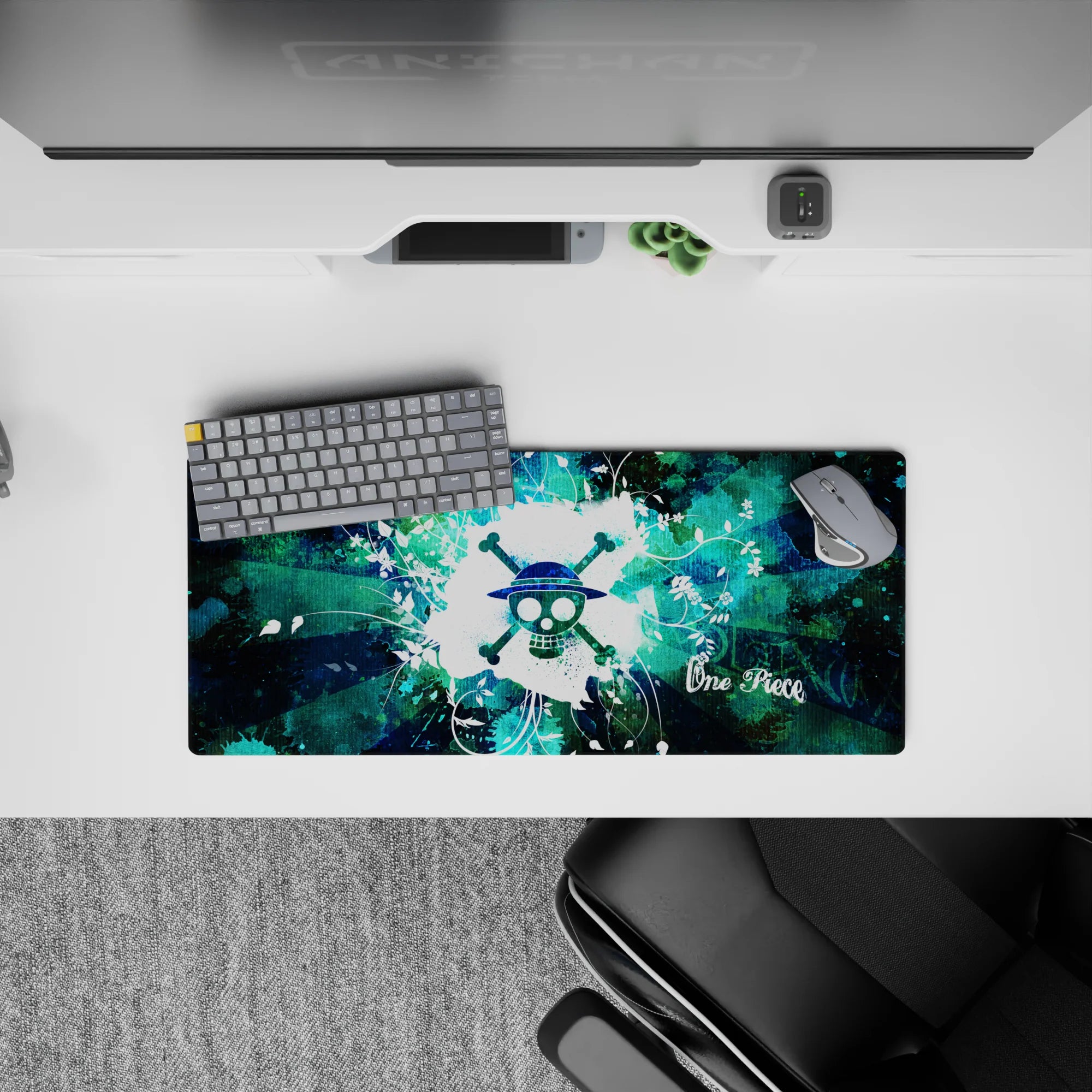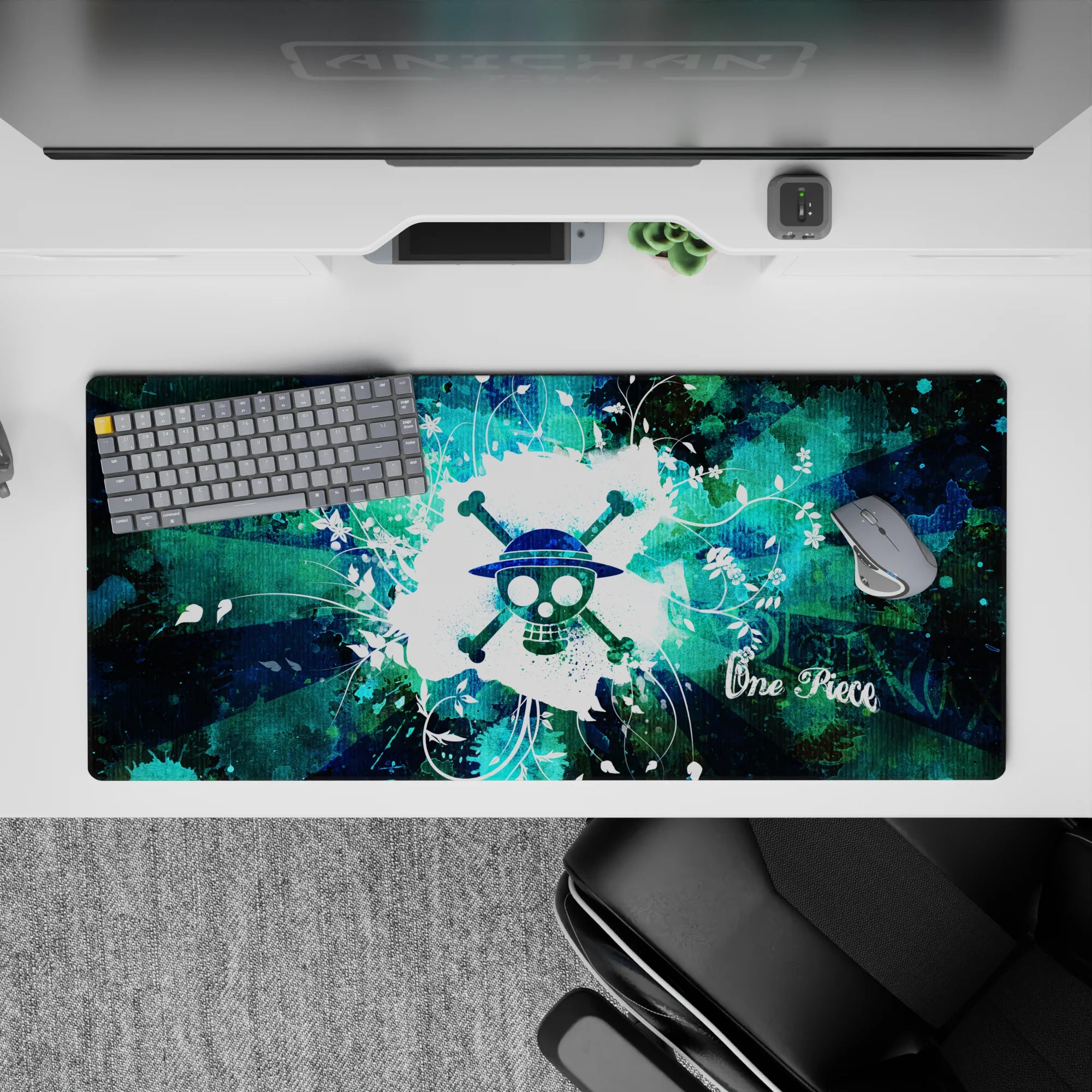 Celebrate the iconic Straw Hat Pirates with this stunning floral-inspired mouse pad design. The Jolly Roger is surrounded by beautiful splashes of blue, green, and floral patterns, making it the perfect blend of nature and the adventurous spirit of One Piece.