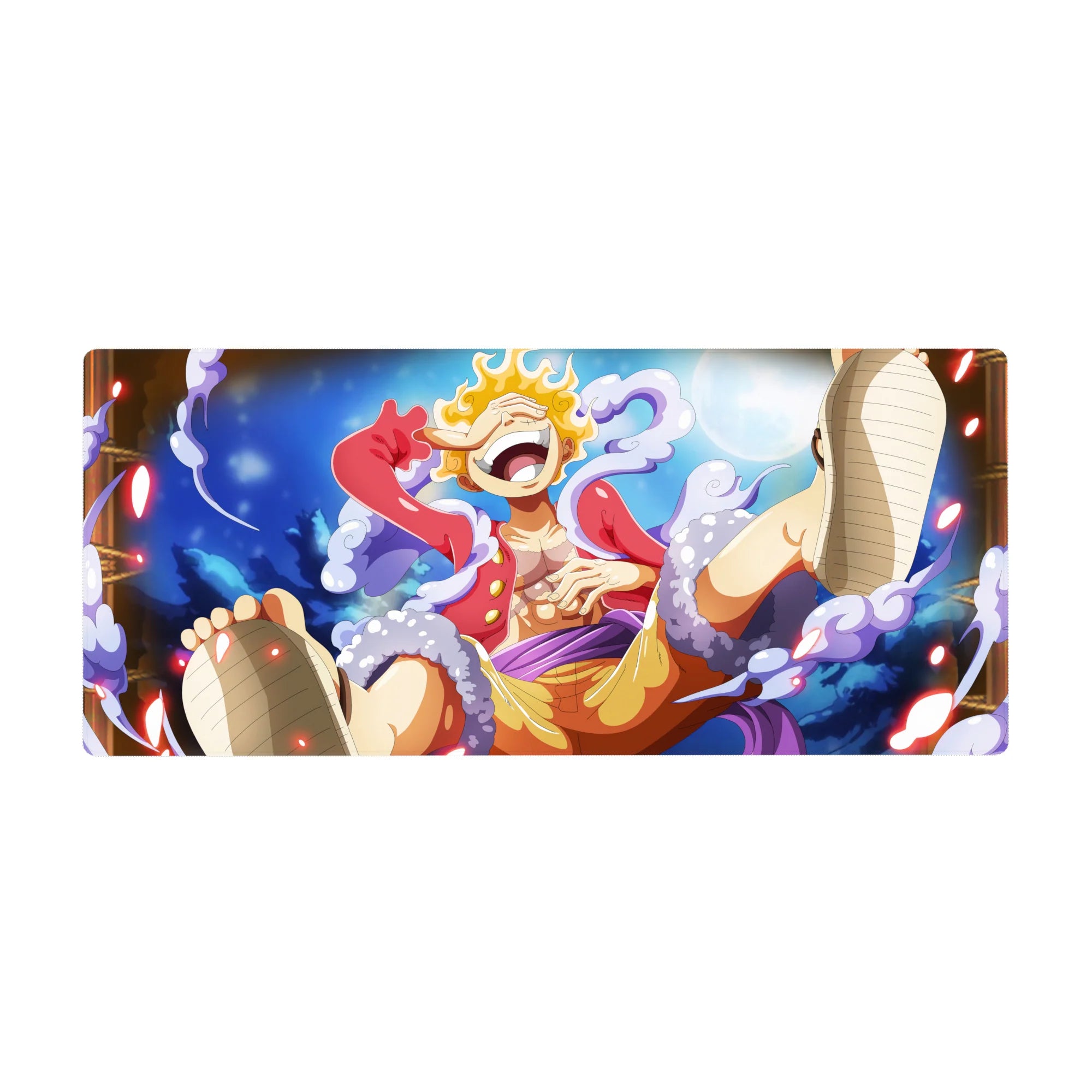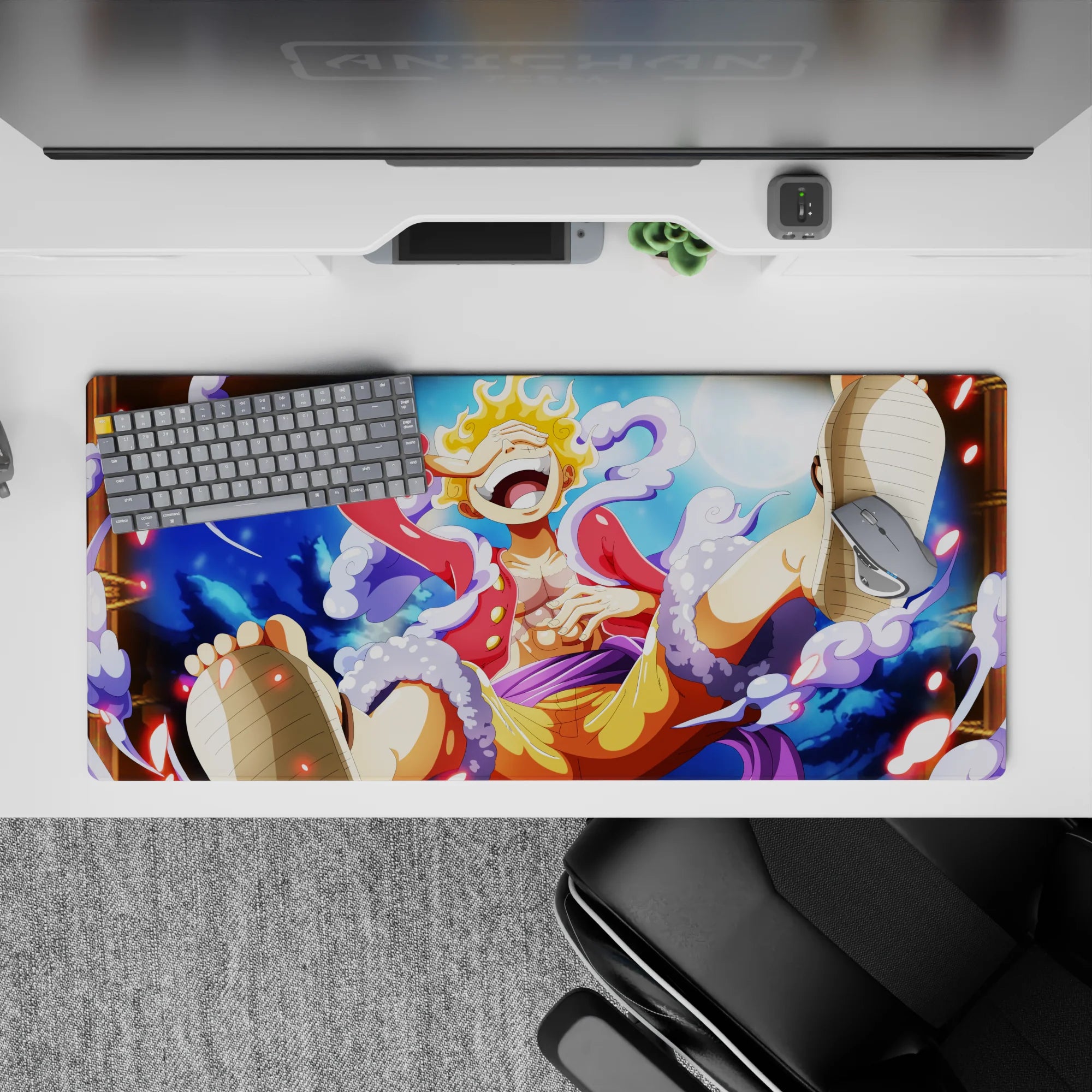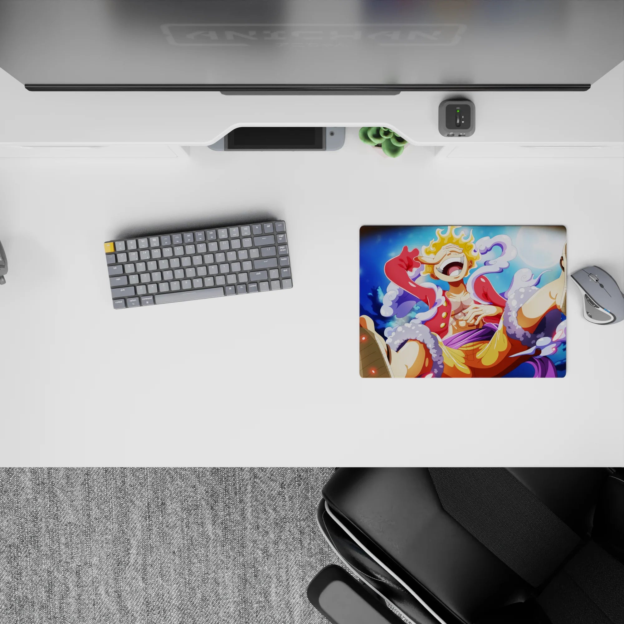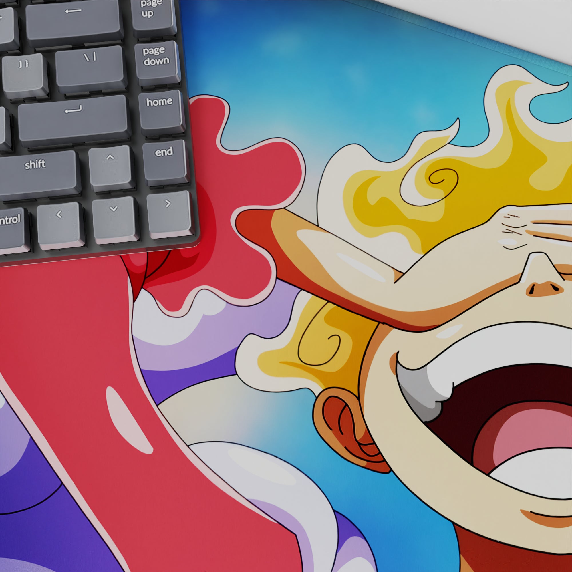 Unleash the playful and powerful side of Monkey D. Luffy with this vibrant mouse pad design. Featuring Luffy in his iconic Gear 5 form, full of energy and laughter, this mouse pad is perfect for One Piece fans who love his adventurous spirit and limitless strength.