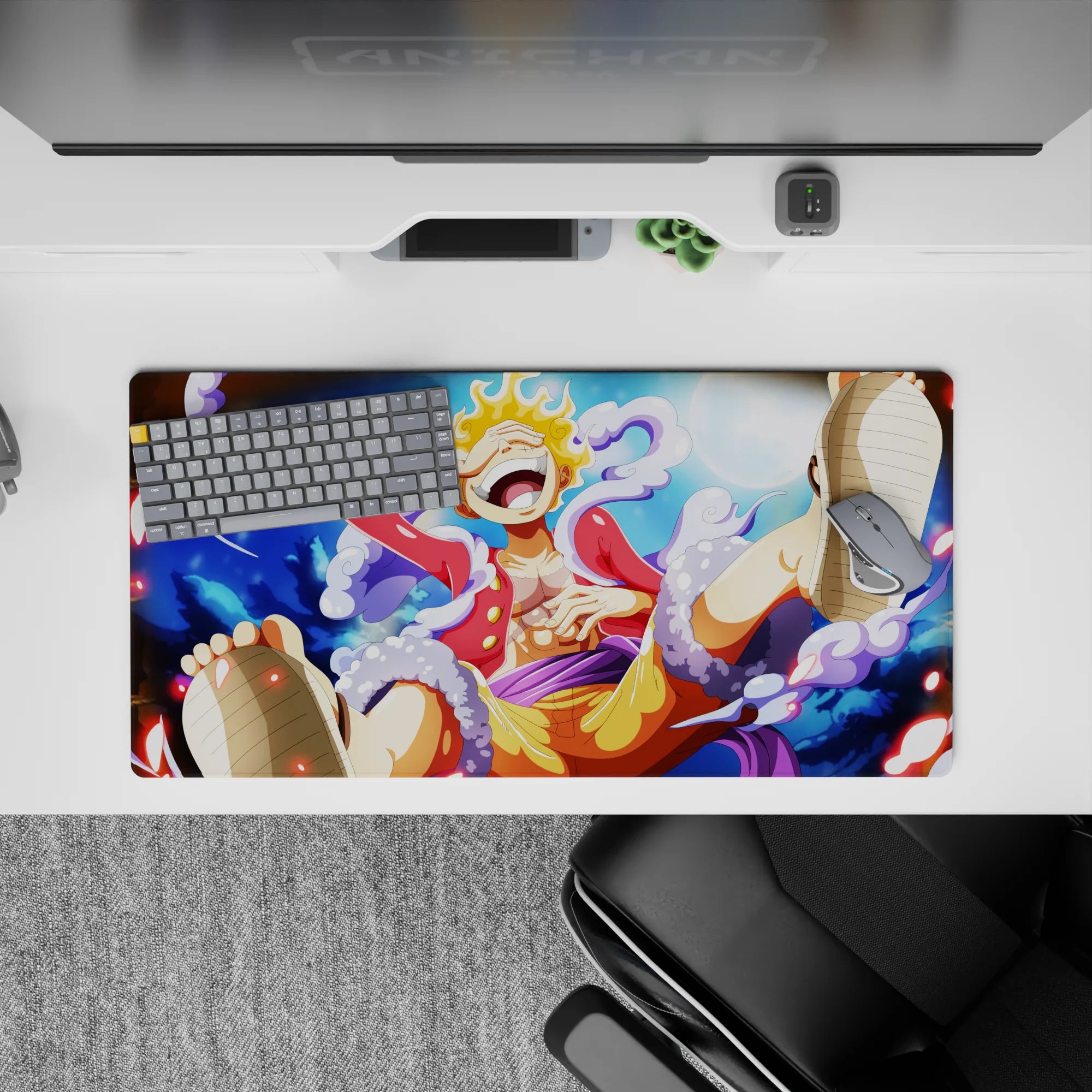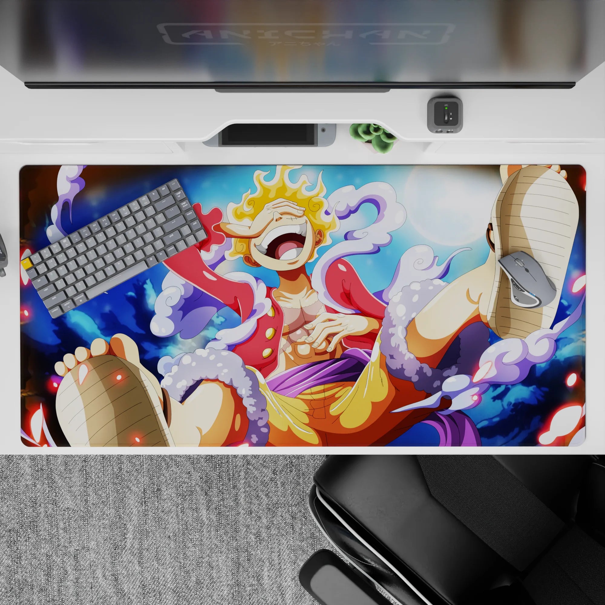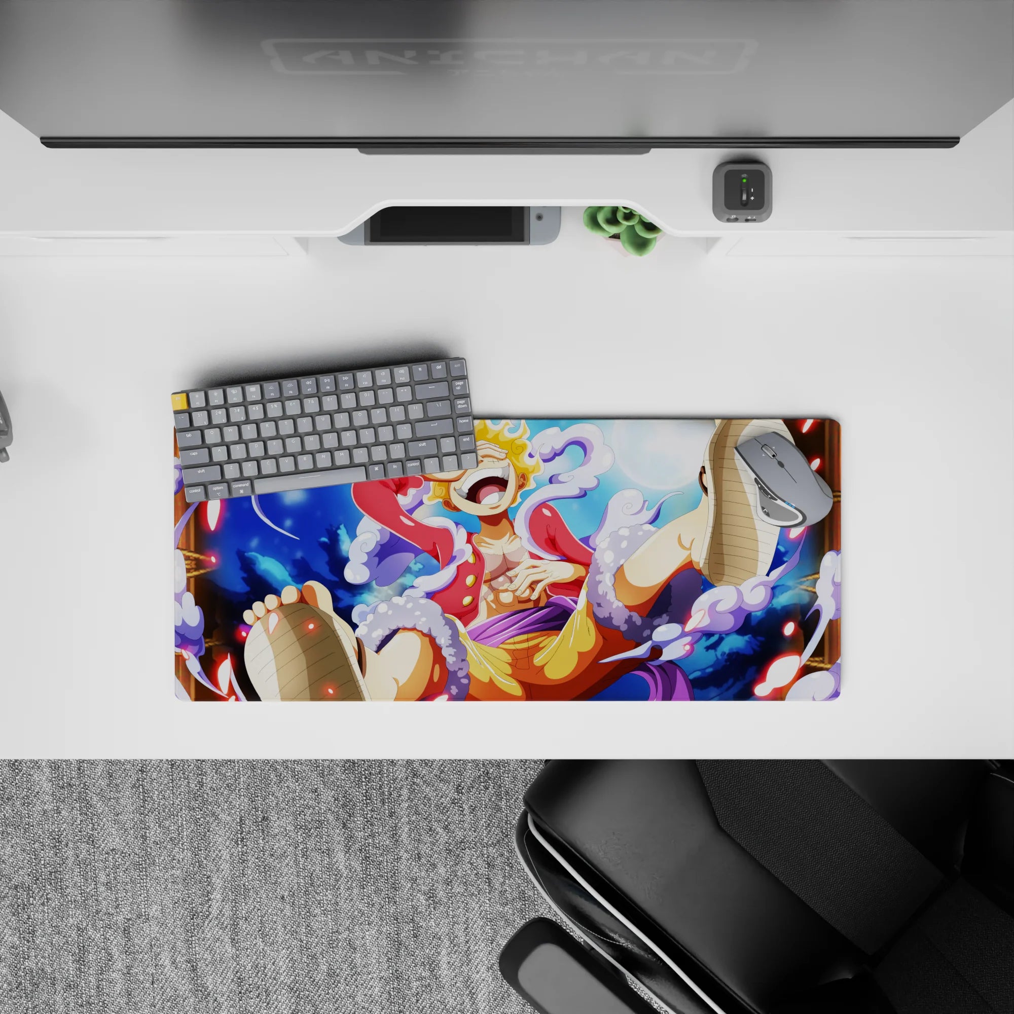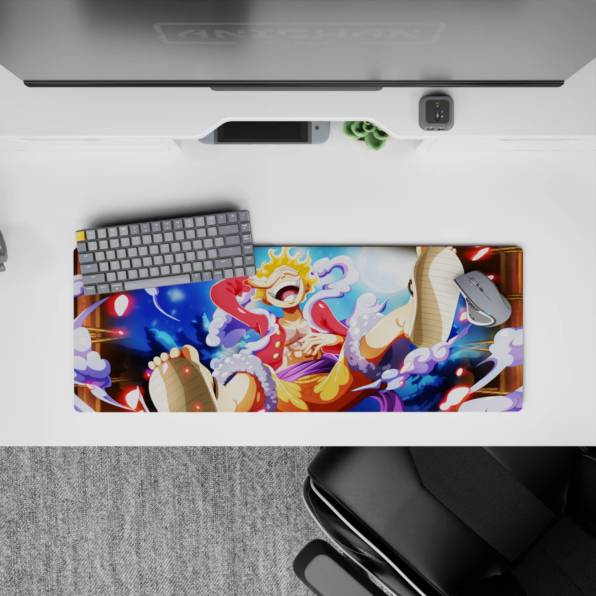 Unleash the playful and powerful side of Monkey D. Luffy with this vibrant mouse pad design. Featuring Luffy in his iconic Gear 5 form, full of energy and laughter, this mouse pad is perfect for One Piece fans who love his adventurous spirit and limitless strength.