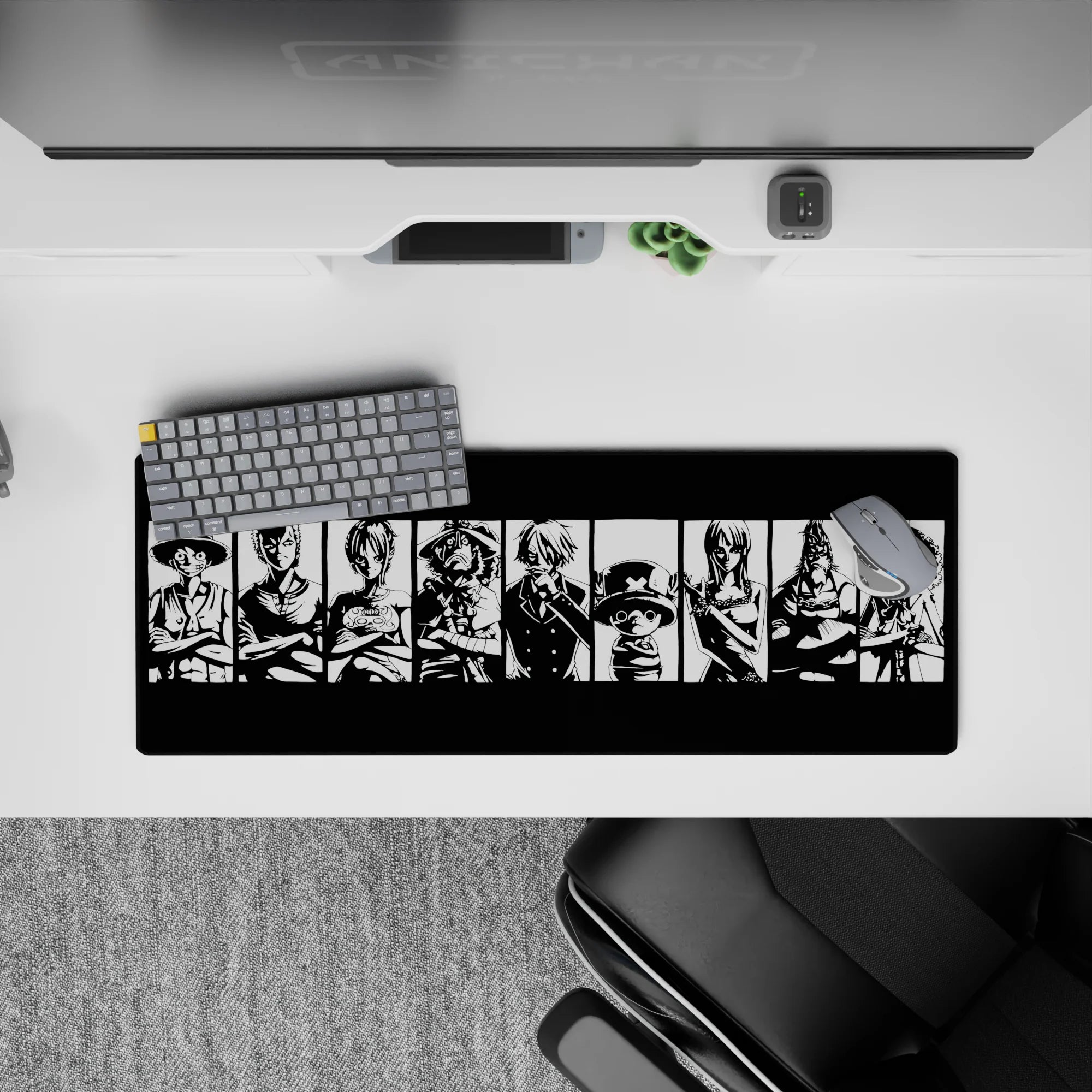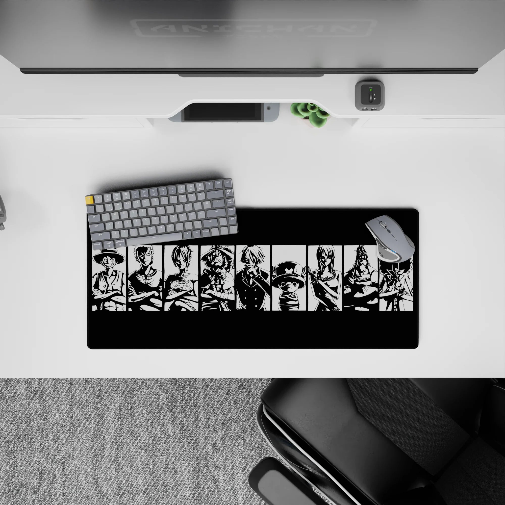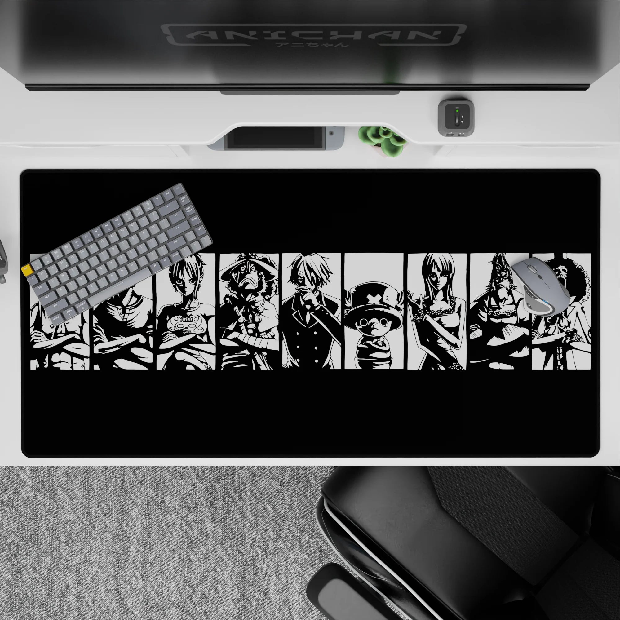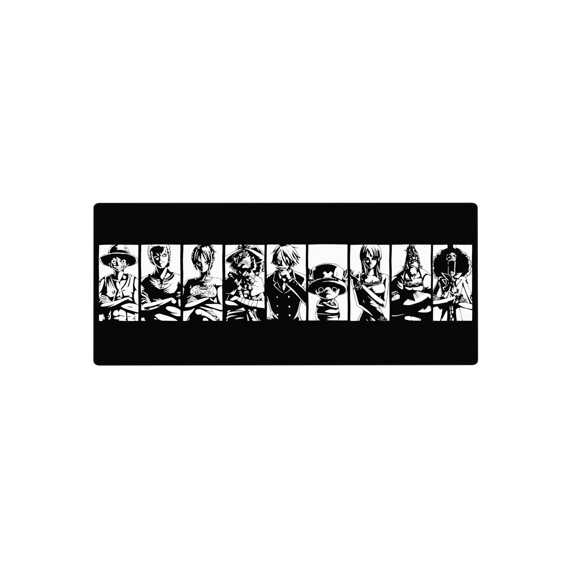 Capture the iconic essence of the Straw Hat Pirates with this bold black-and-white mouse pad design. Featuring Luffy, Zoro, Sanji, and the crew in striking silhouettes, this is the perfect addition for any One Piece fan who loves powerful, minimalist designs.