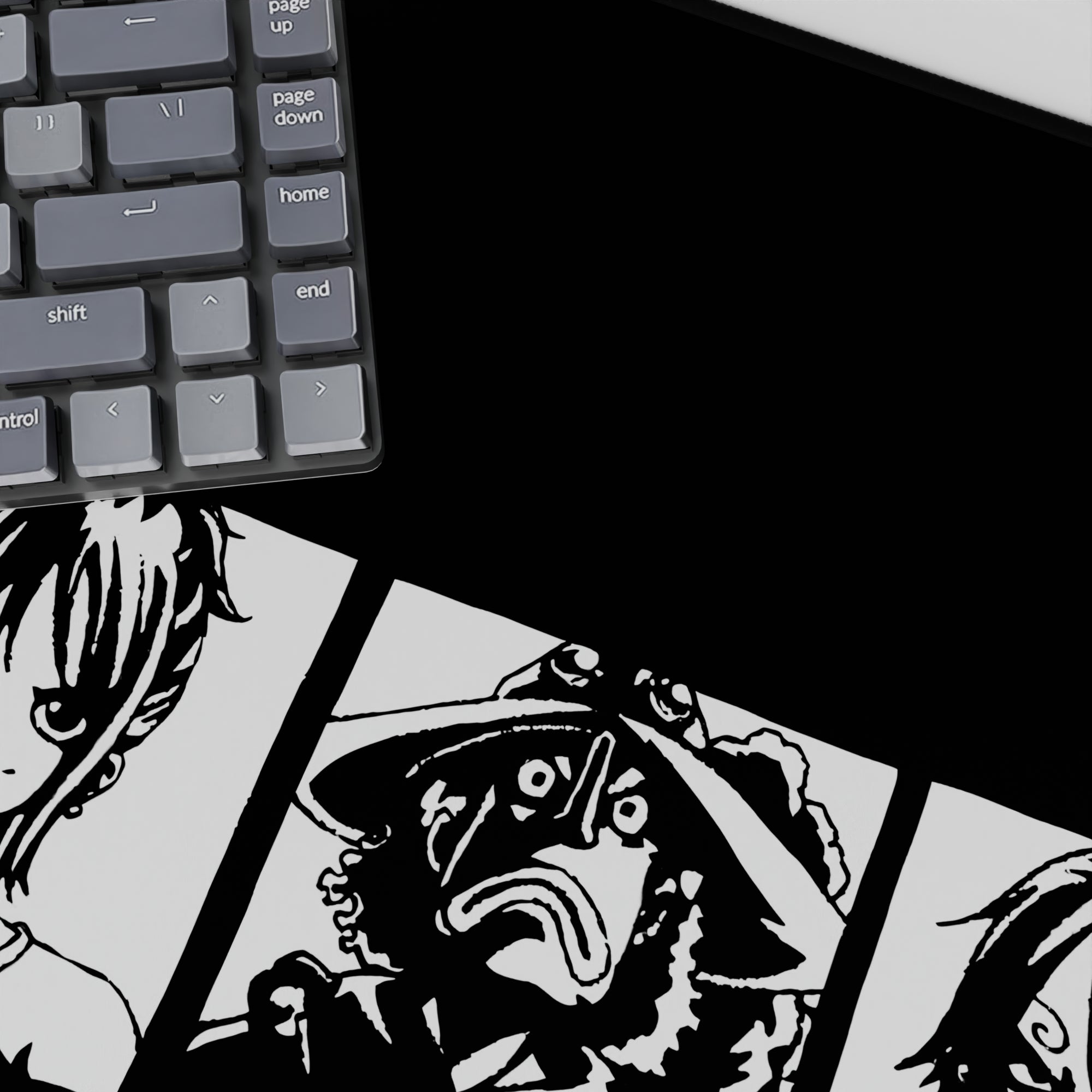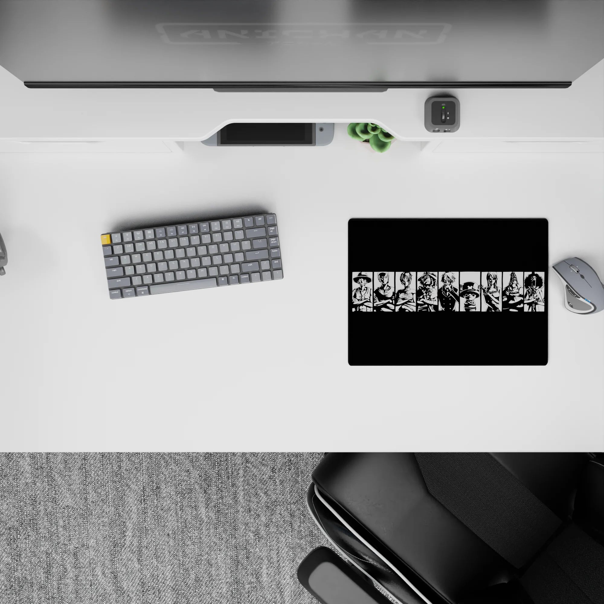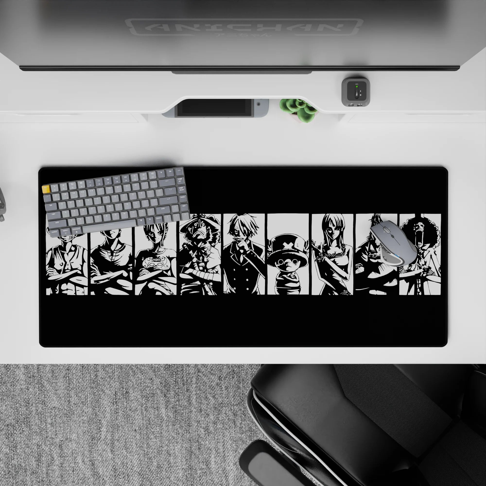 Capture the iconic essence of the Straw Hat Pirates with this bold black-and-white mouse pad design. Featuring Luffy, Zoro, Sanji, and the crew in striking silhouettes, this is the perfect addition for any One Piece fan who loves powerful, minimalist designs.