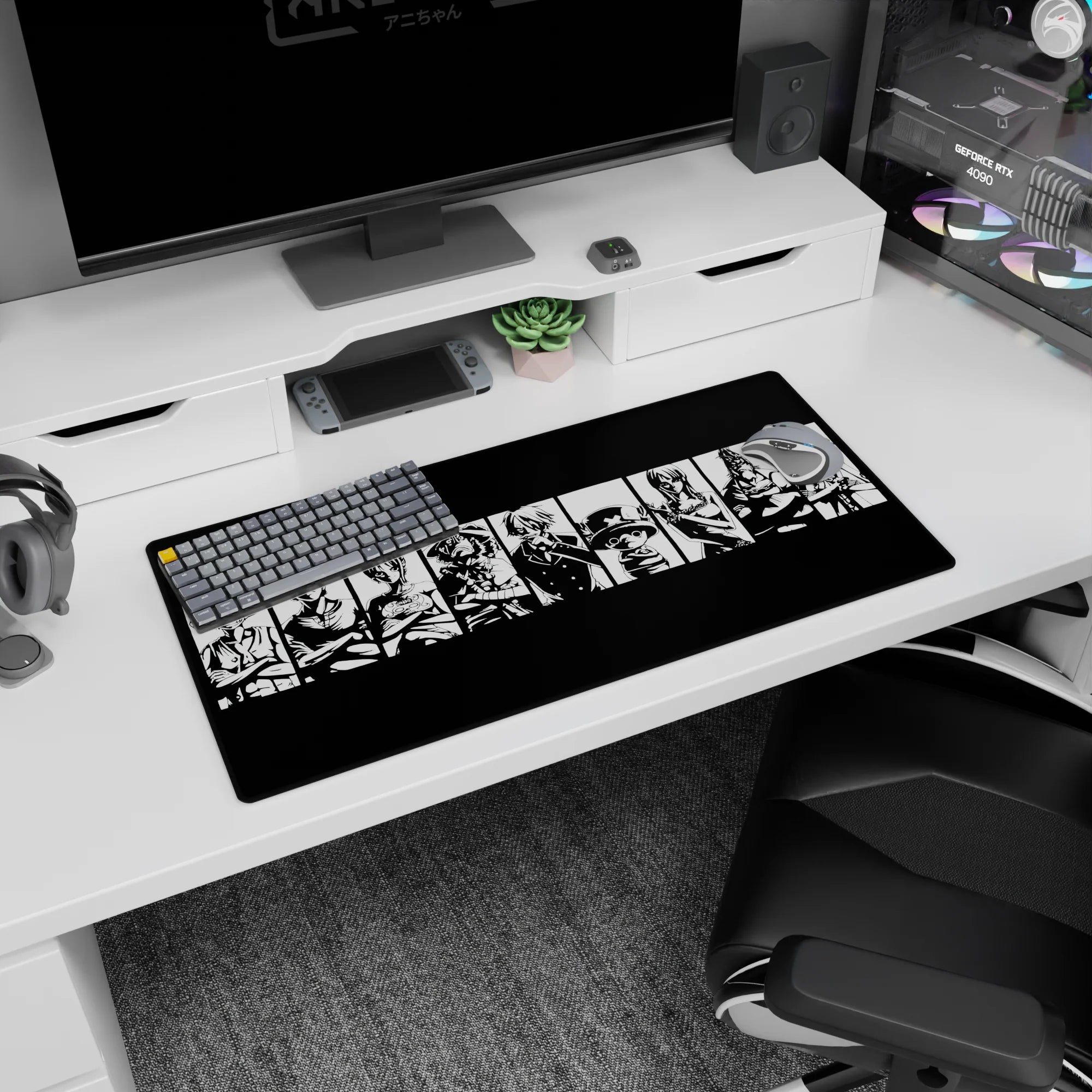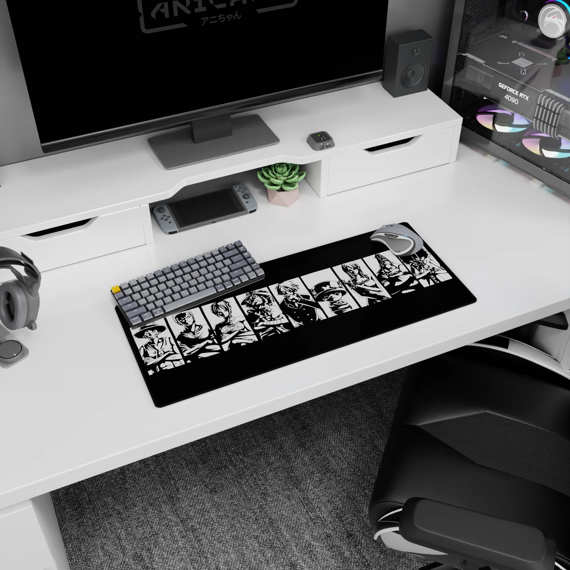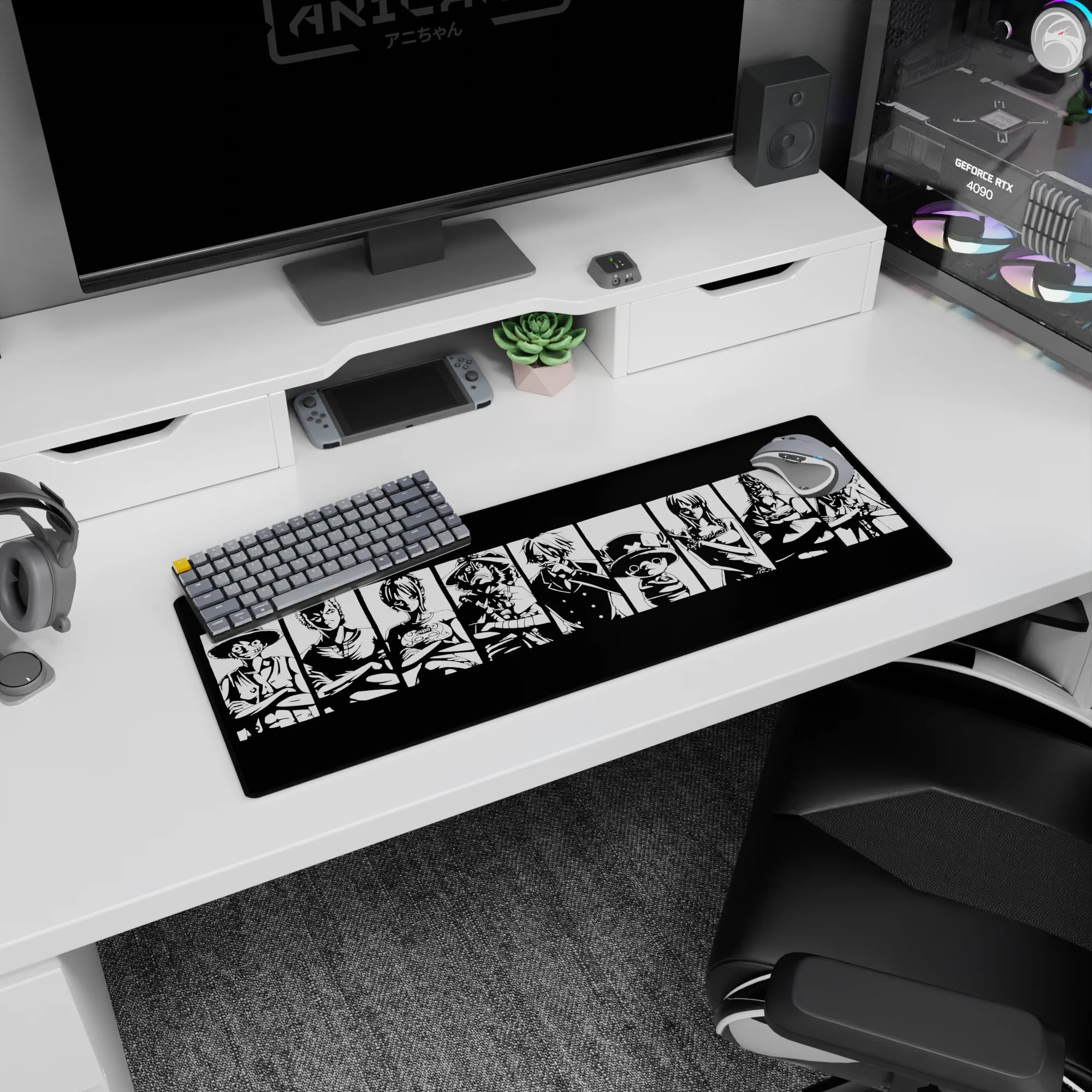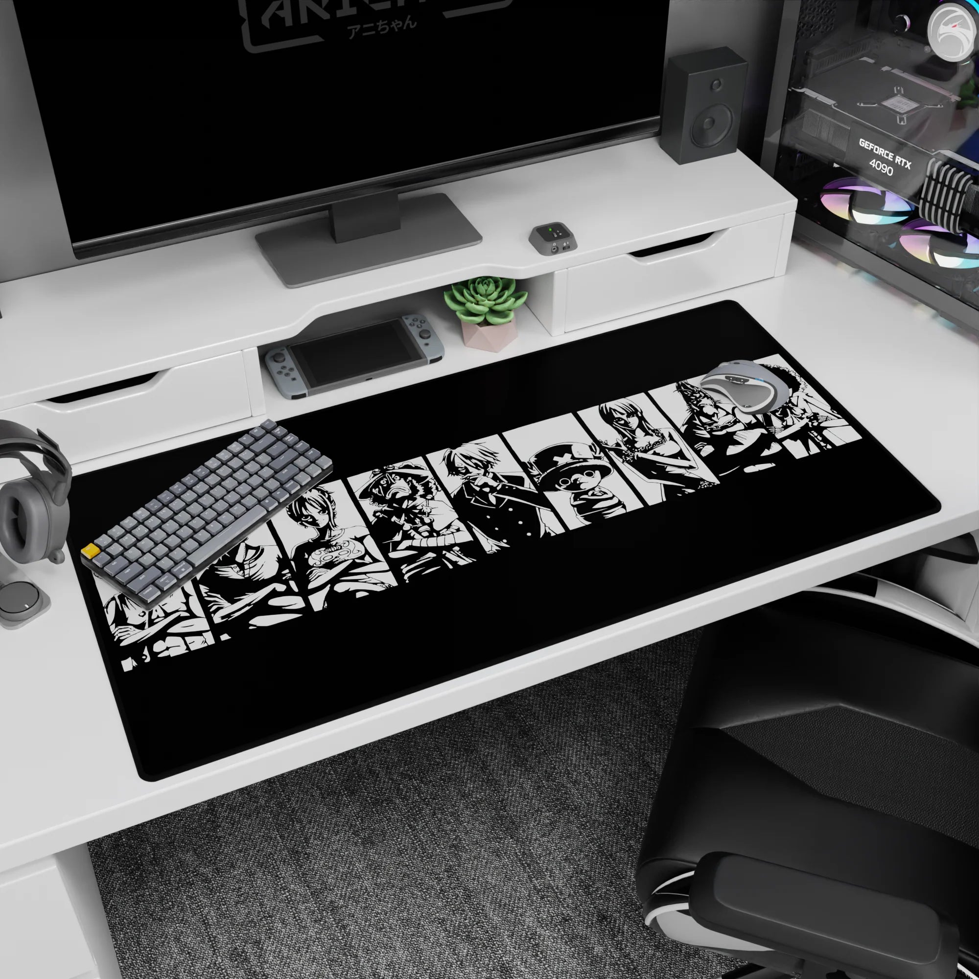 Capture the iconic essence of the Straw Hat Pirates with this bold black-and-white mouse pad design. Featuring Luffy, Zoro, Sanji, and the crew in striking silhouettes, this is the perfect addition for any One Piece fan who loves powerful, minimalist designs.