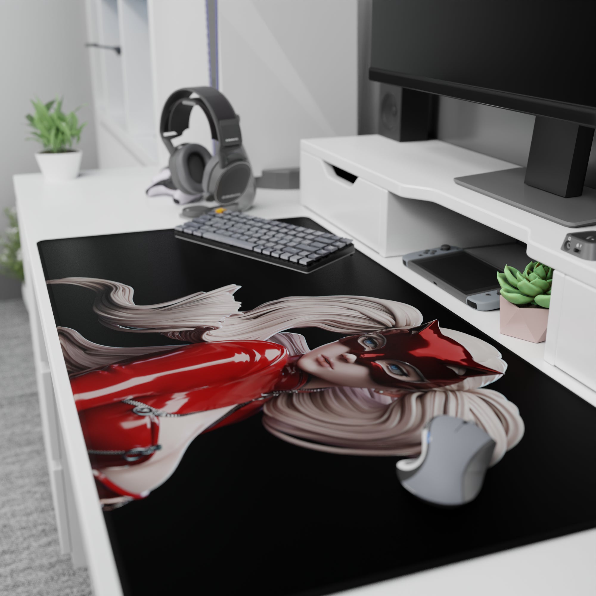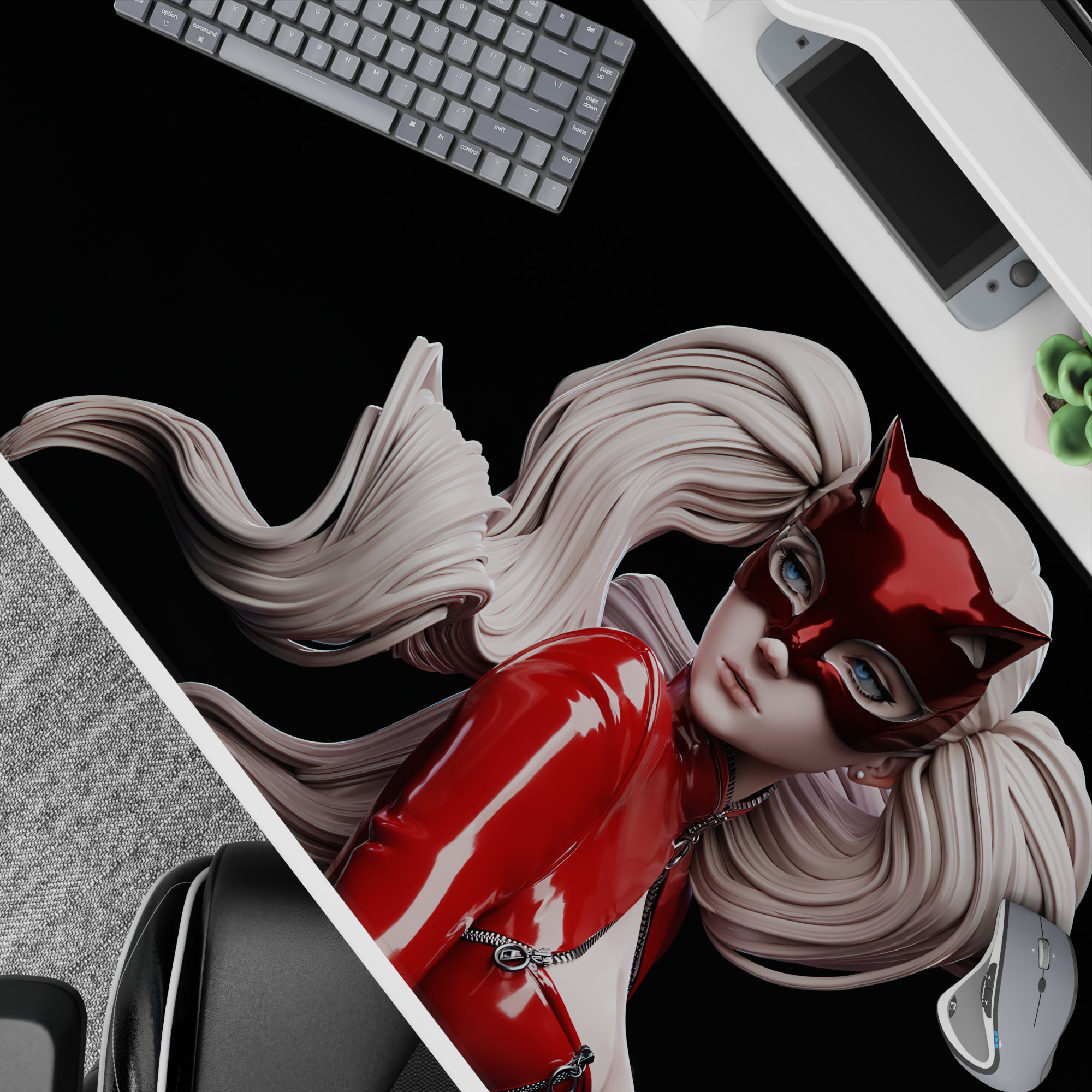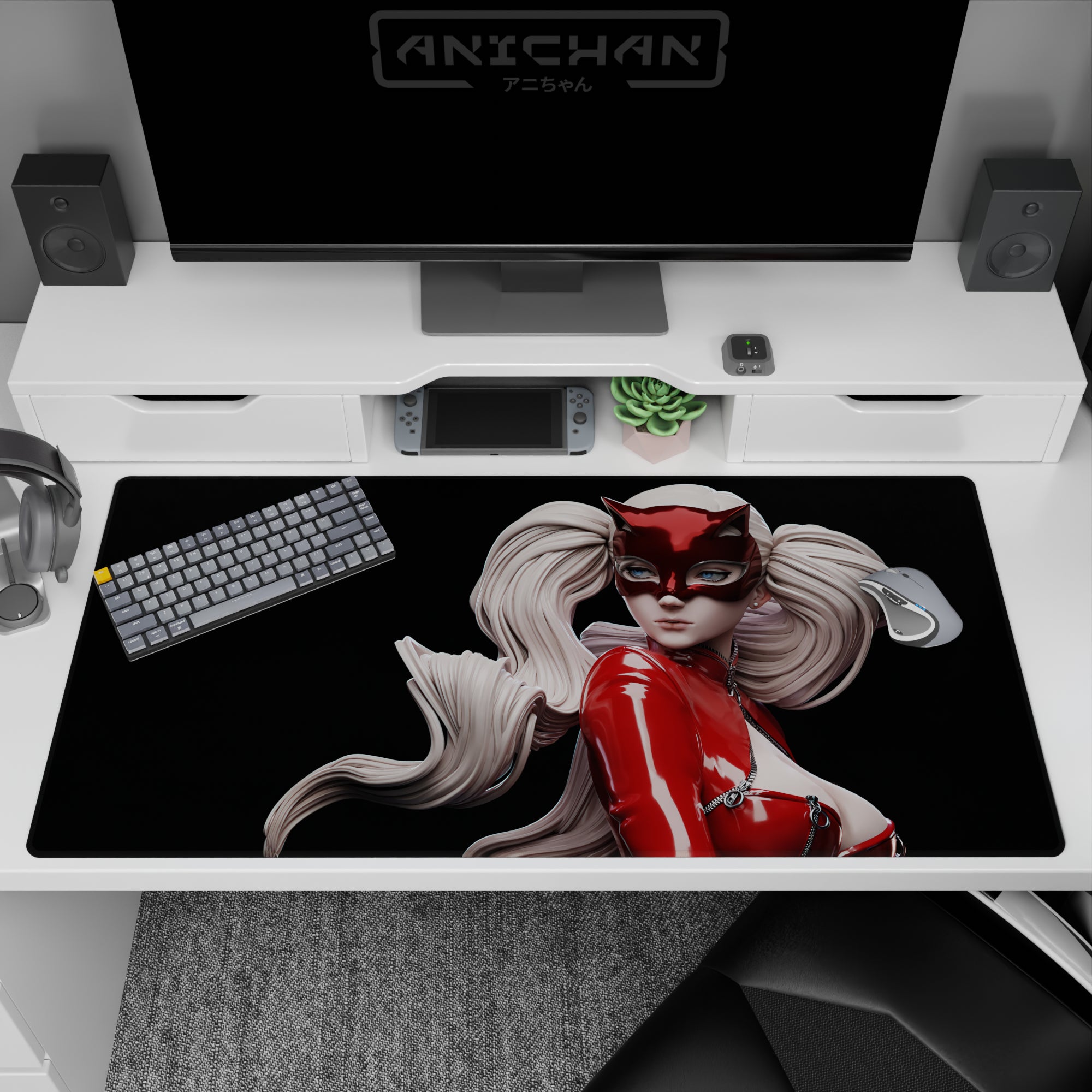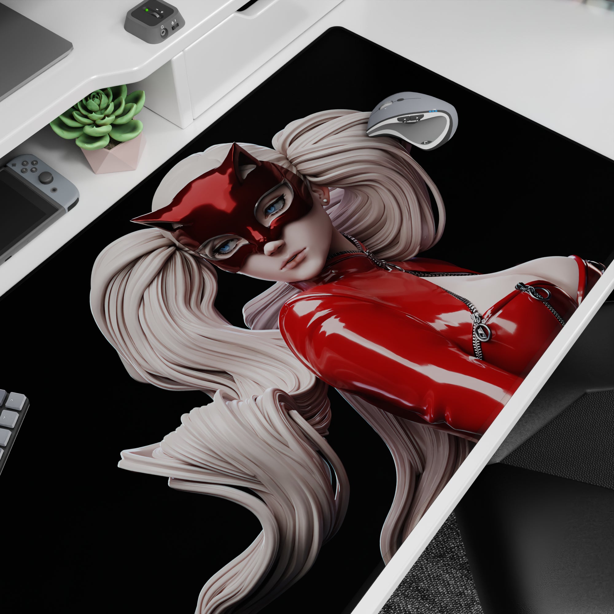 Discover a fusion of elegance and rebellion with this anime mouse pad, showcasing Ann Takamaki’s Panther persona from Persona 5 in stunning 3D. Glossy red latex contrasts a black void, with surreal porcelain hair. Bold and chic, this Persona 5 mouse pad transforms your desk into a cool gallery.