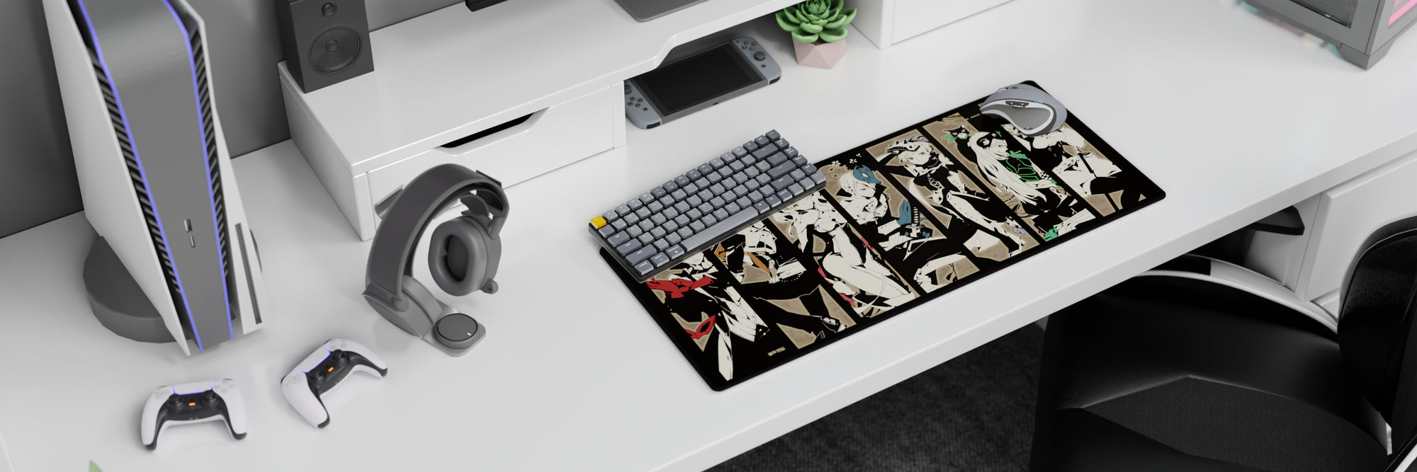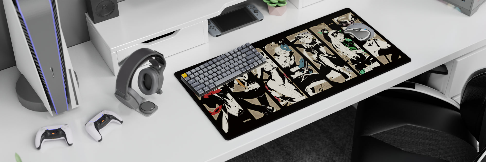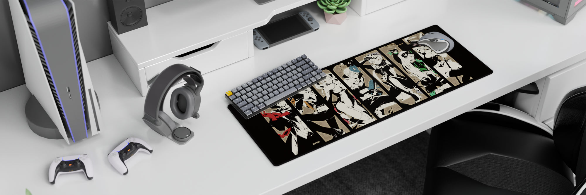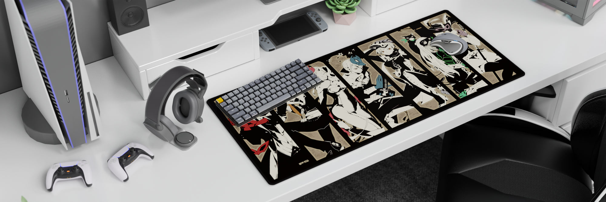 Our mouse pads and desk pads are built to handle anything you throw at them, with sturdy, non-slip rubber bases that keep everything steady no matter how intense things get.
