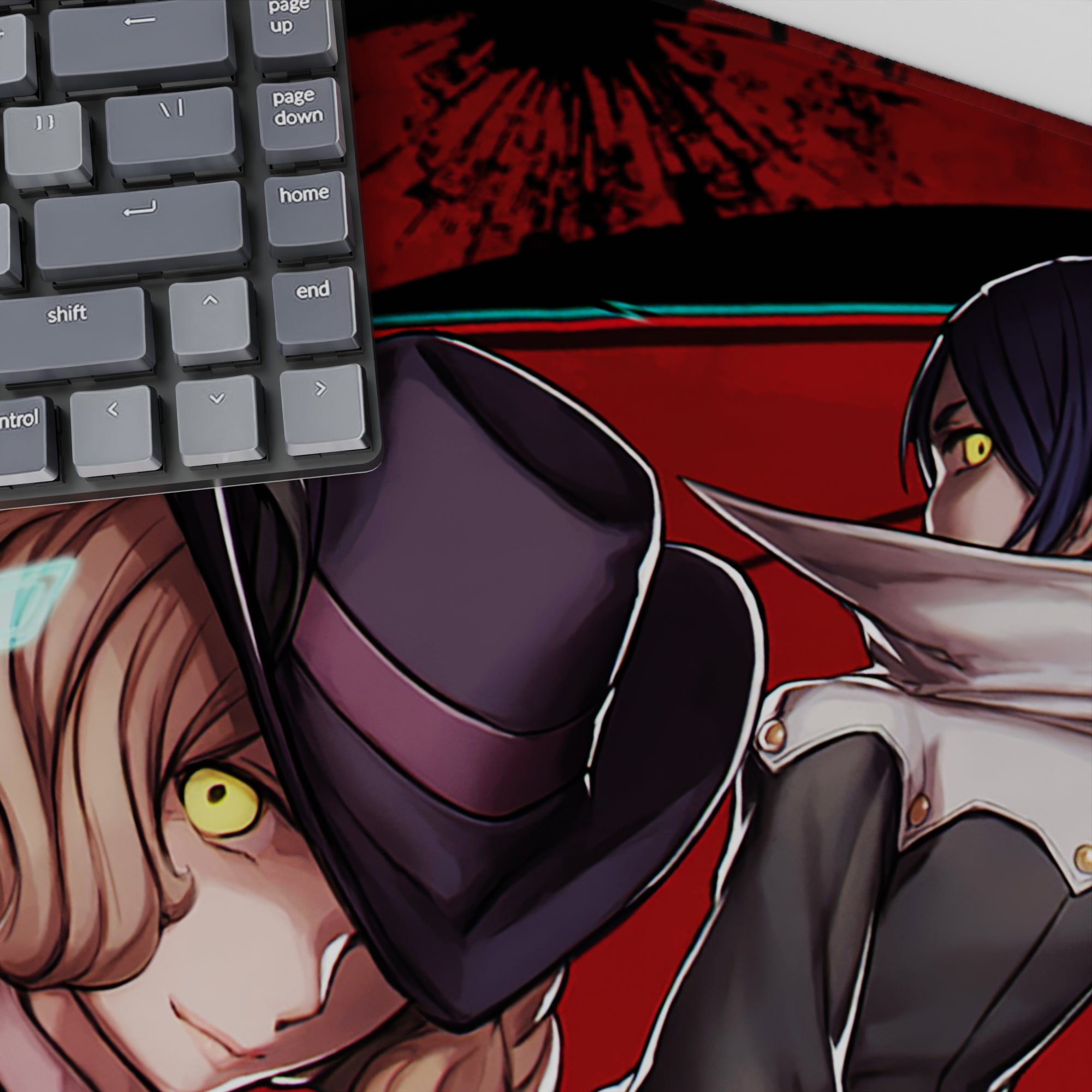 Discover the eerie charm of this Persona 5-inspired anime mouse pad, designed with glowing eyes and sharp grins. Embrace the madness and mystery with a wicked edge. Perfect for fans seeking a sinister touch to their setup. Get yours now and transform your workspace with dark style.