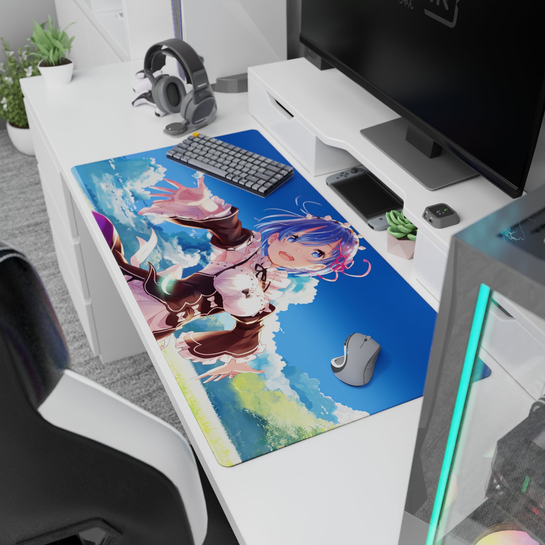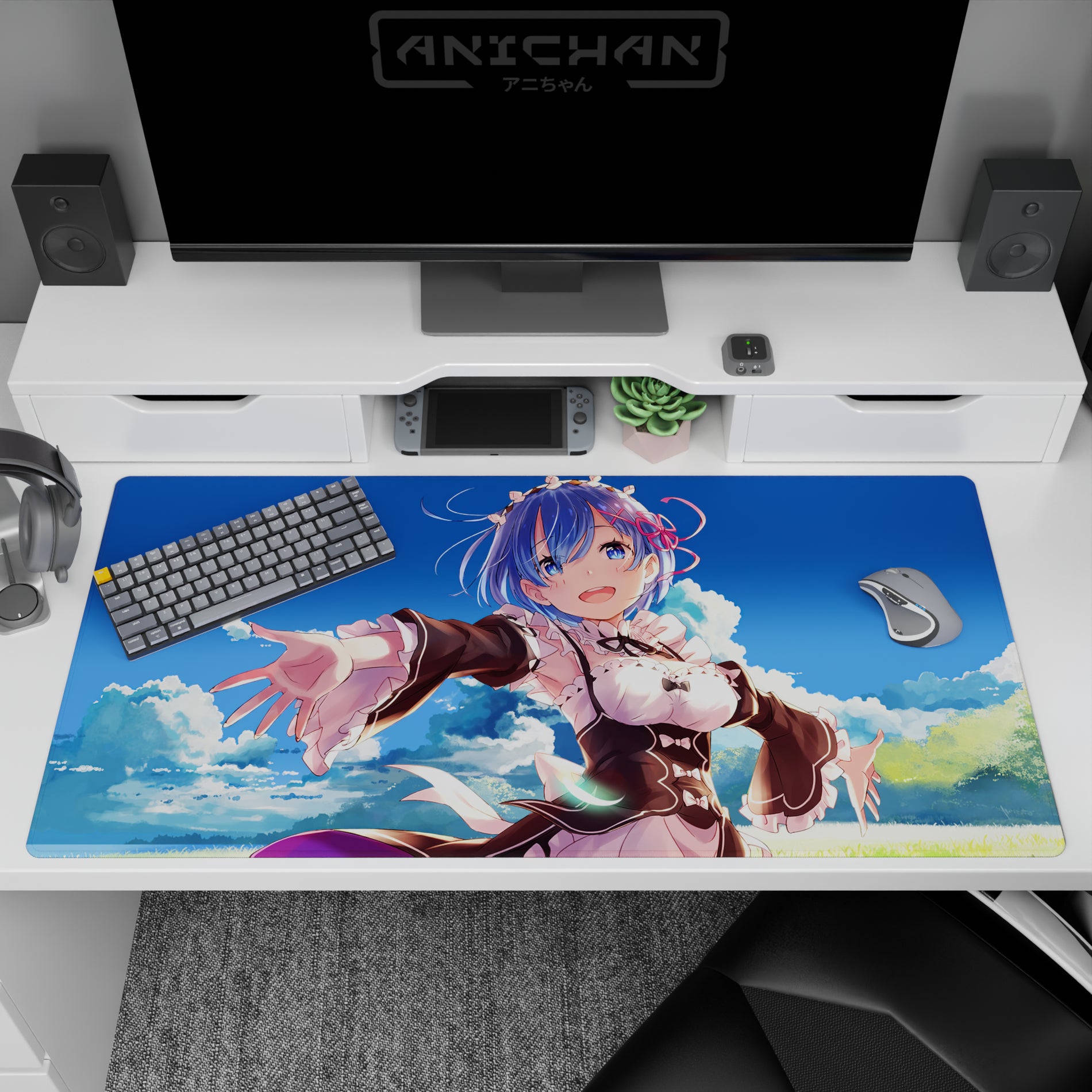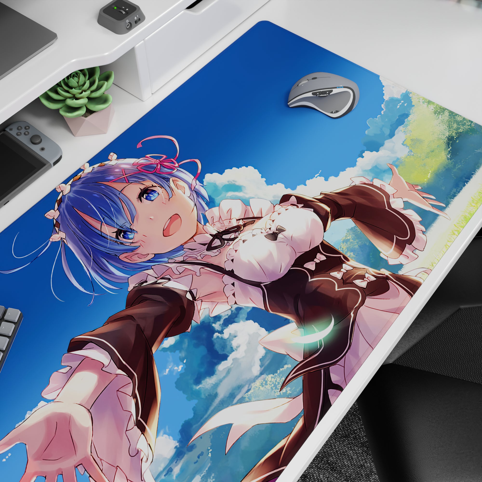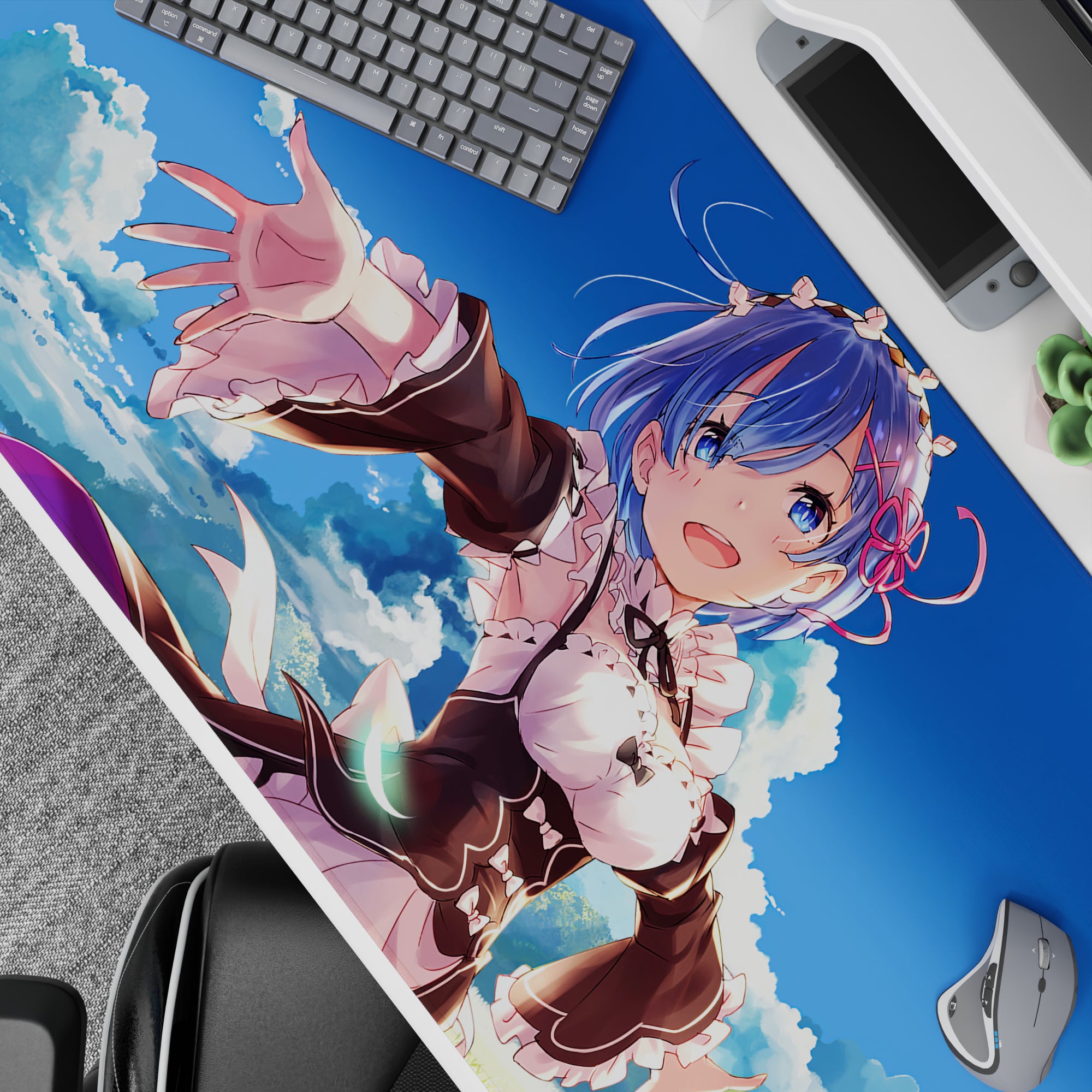 Brighten your workspace with an anime mouse pad featuring Rem from Re:Zero, capturing a serene sky scene. Crisp details and vivid tones make this desk pad a gentle daydream. Perfect for anime fans seeking a touch of warmth and connection on their desk.