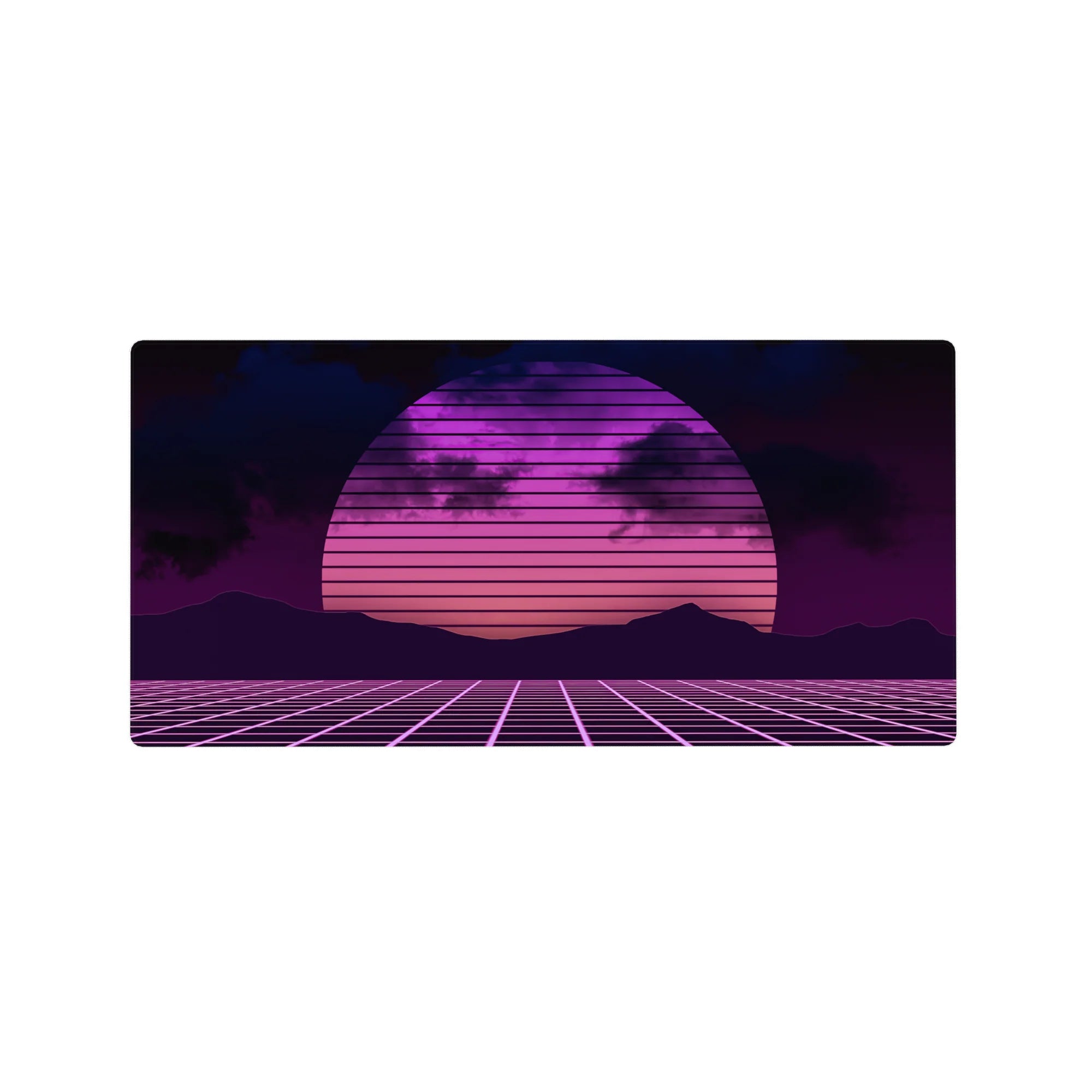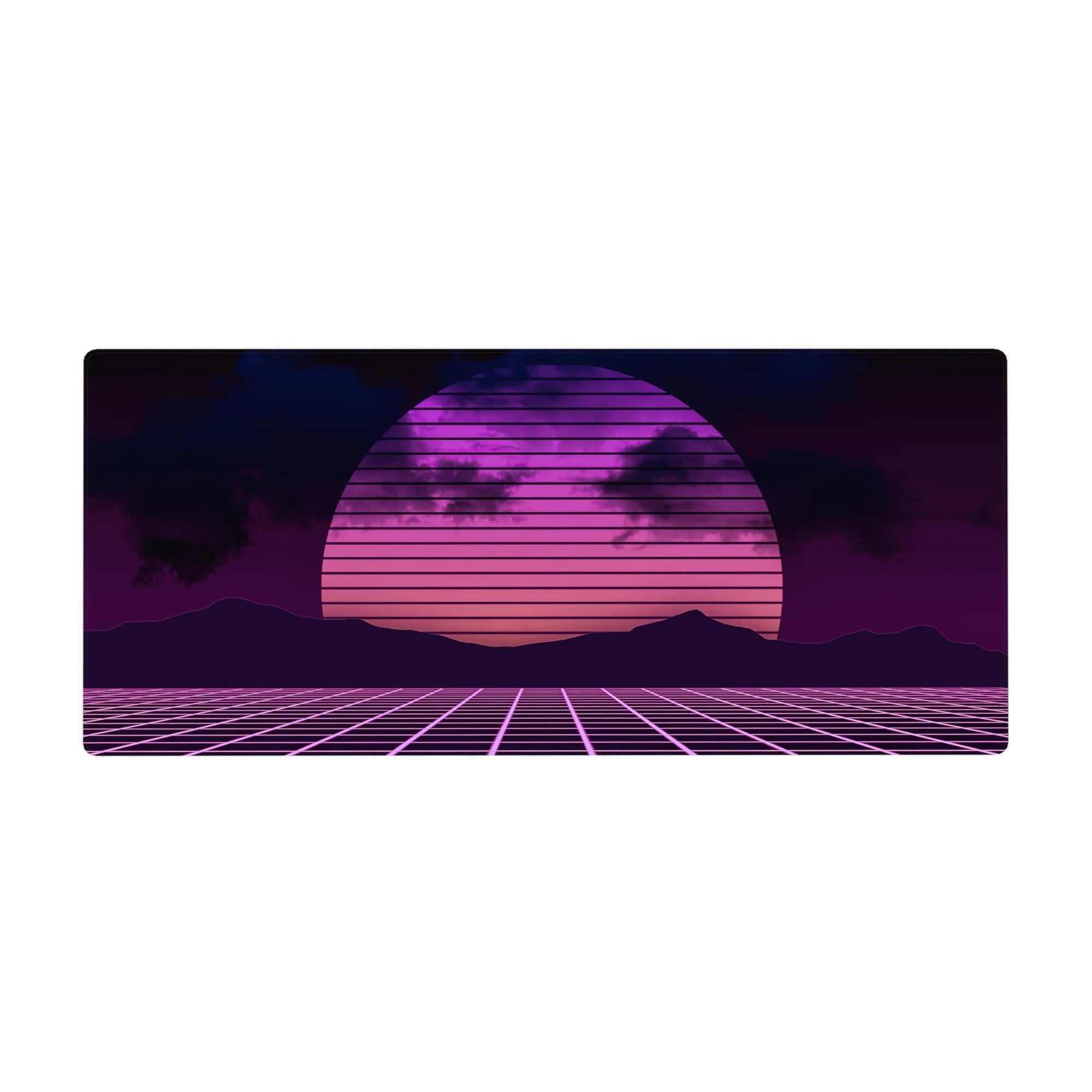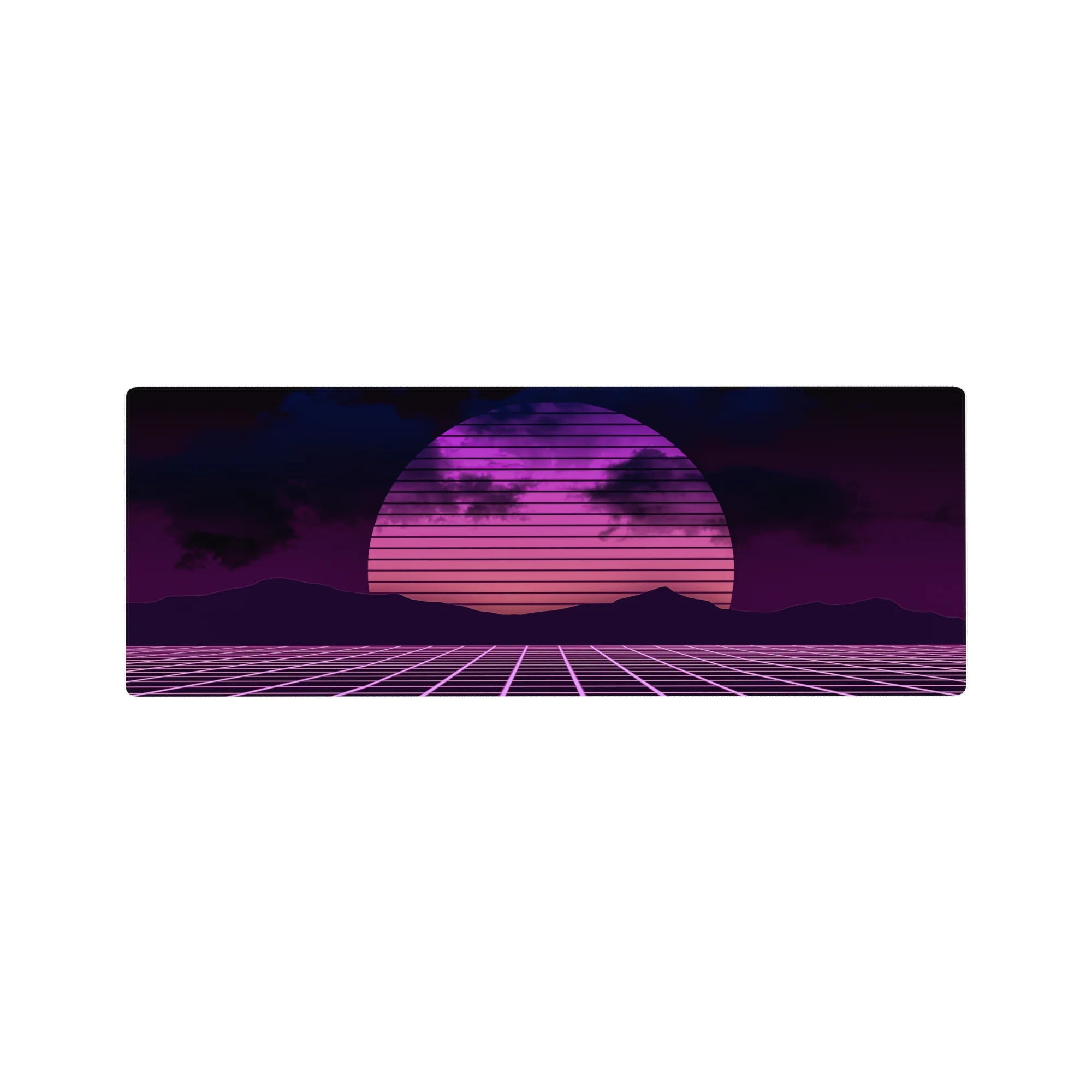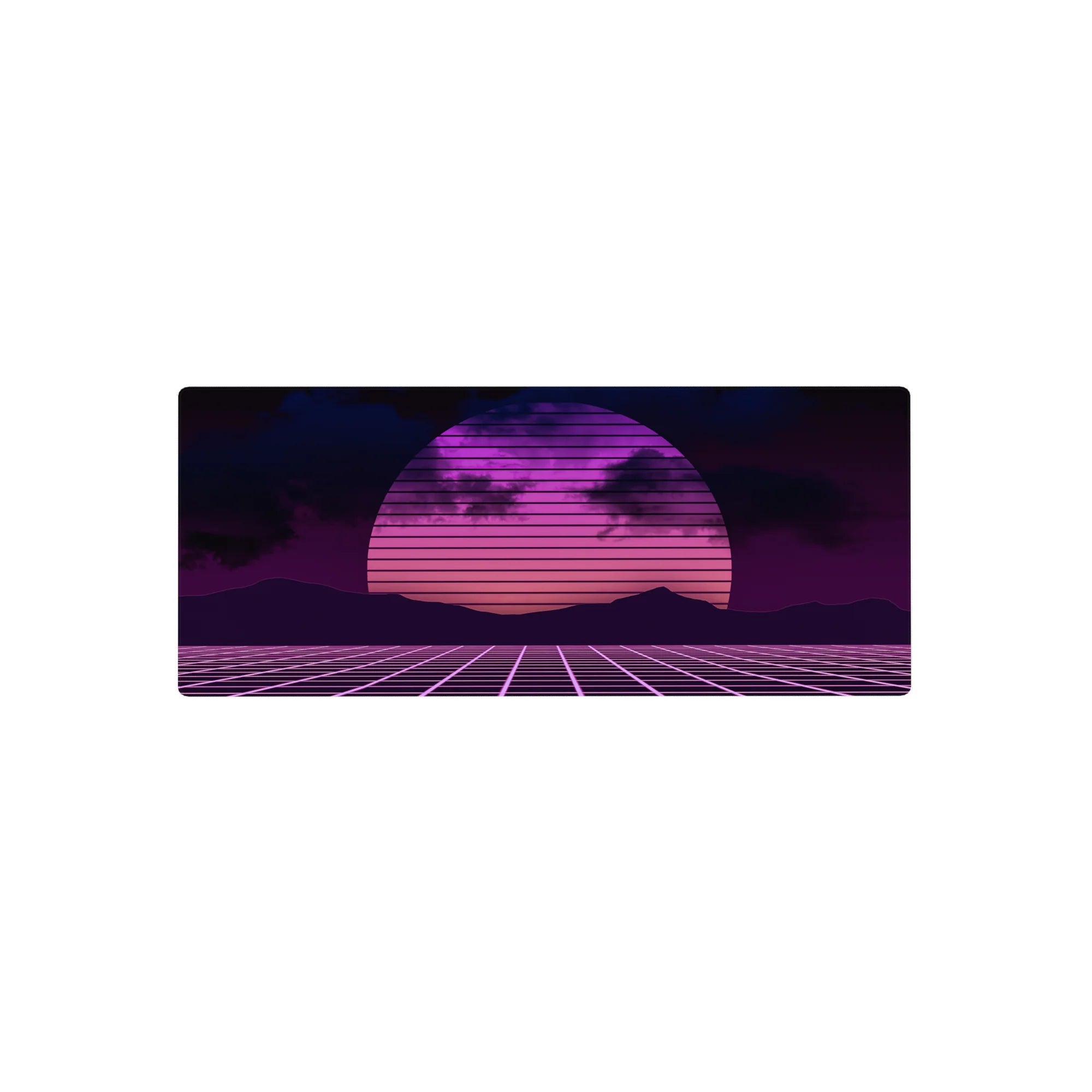 Transport your desk back to the 80s with this synthwave-inspired retrowave deskmat. Featuring a glowing neon sunset, gridlines, and bold pink and purple hues, it brings the electric energy of retro-futurism to your workspace. Perfect for fans of the synthwave aesthetic.