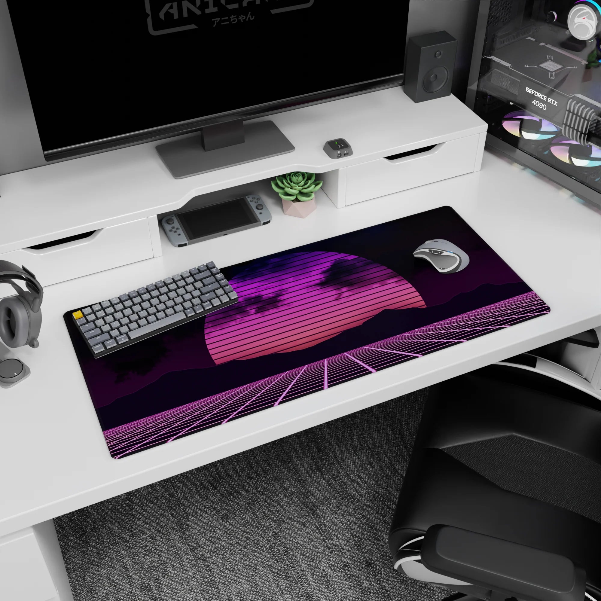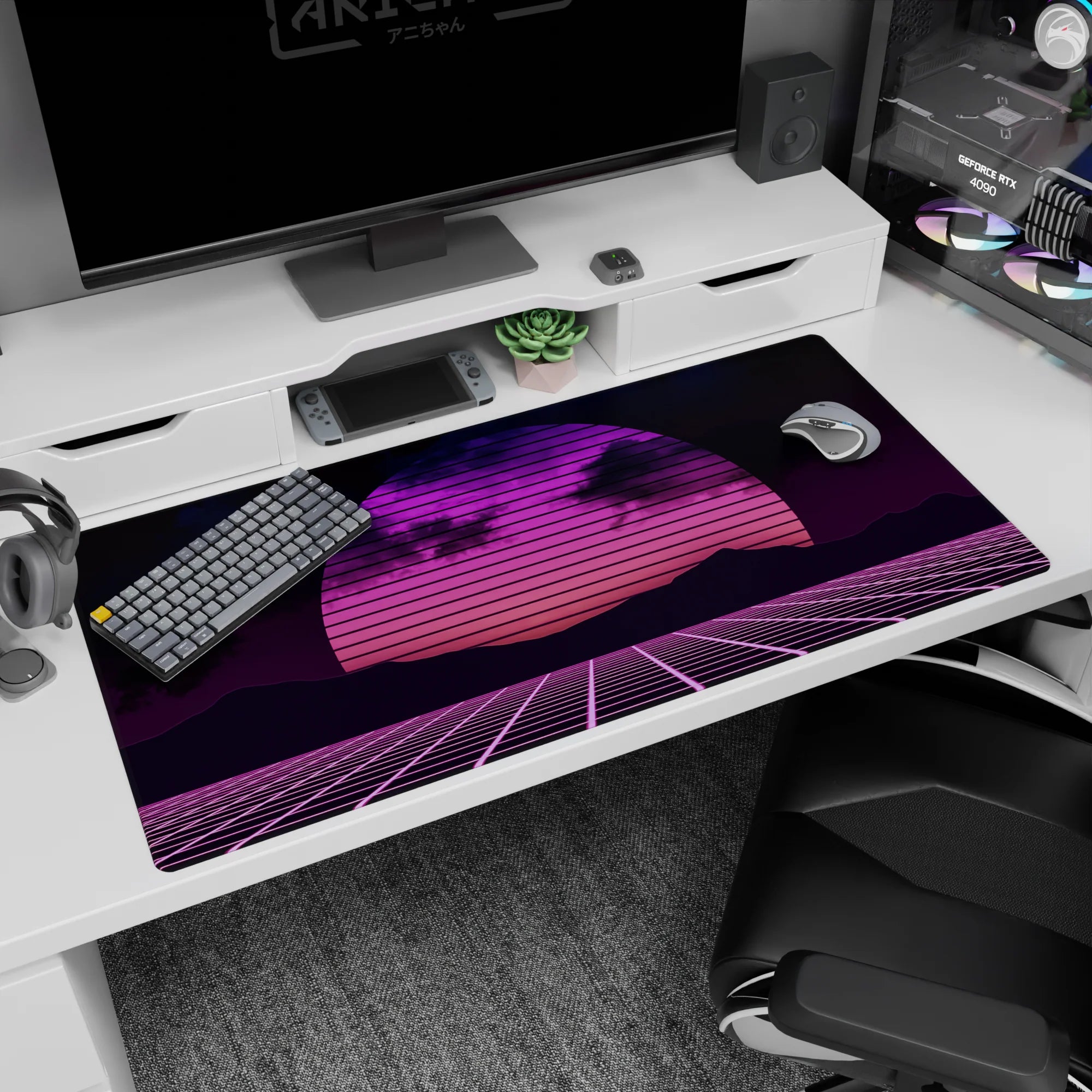 Order your Retrowave - Vaporwave Deskmat | Mousepad | Deskpad - Neon Horizon Grid now, and refresh your setup today!