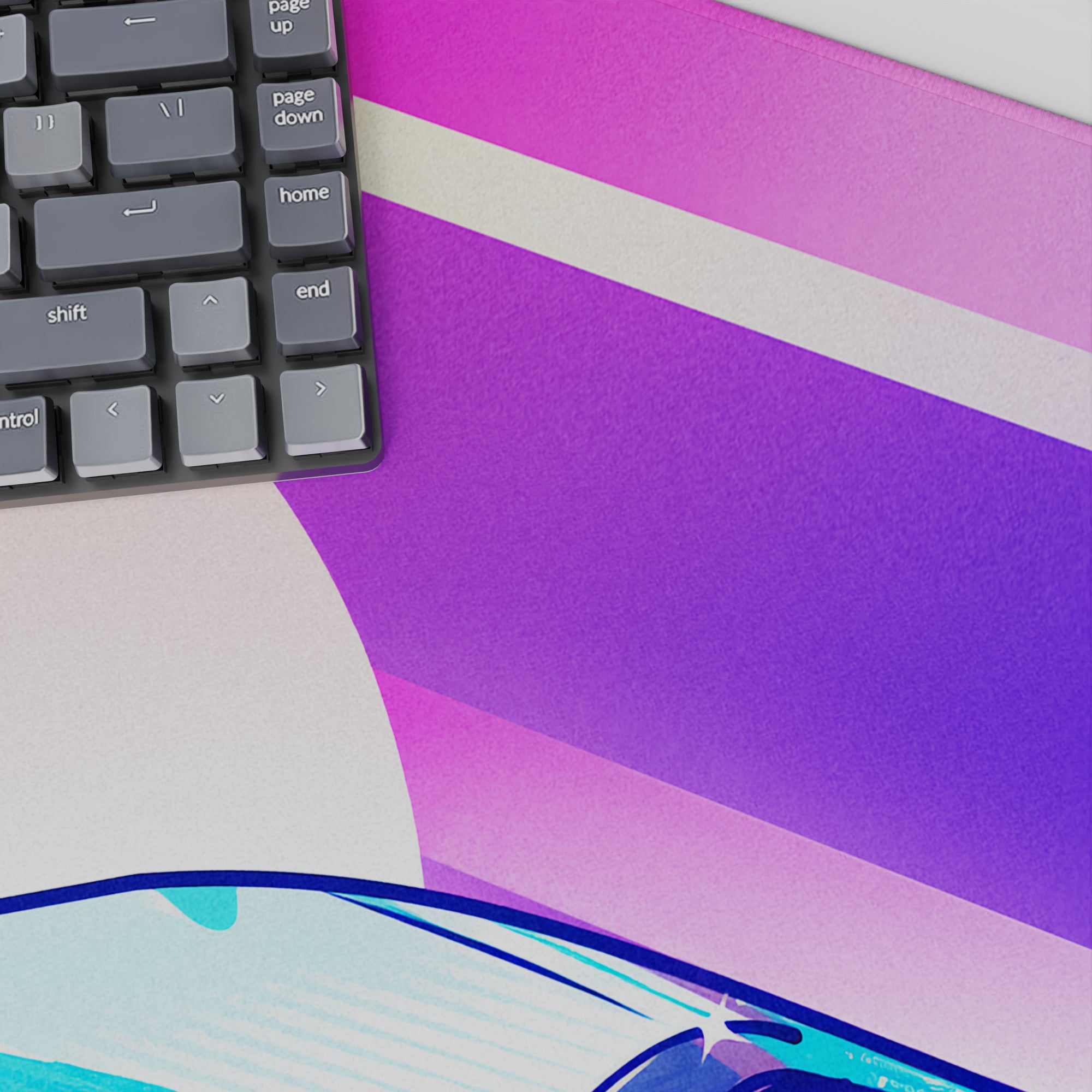 Retrowave - Vaporwave Deskmat | Mousepad | Deskpad - Neon Racer Drift