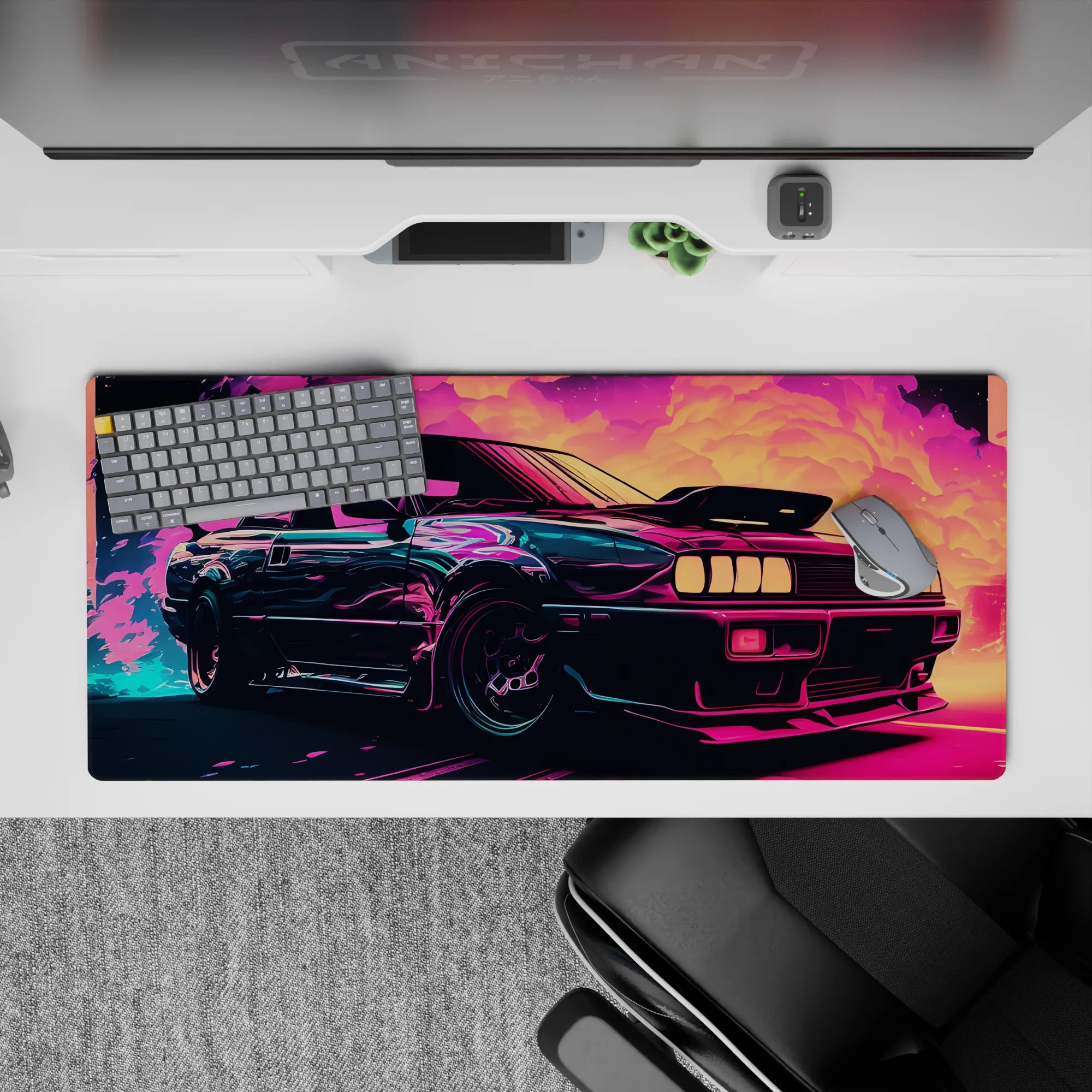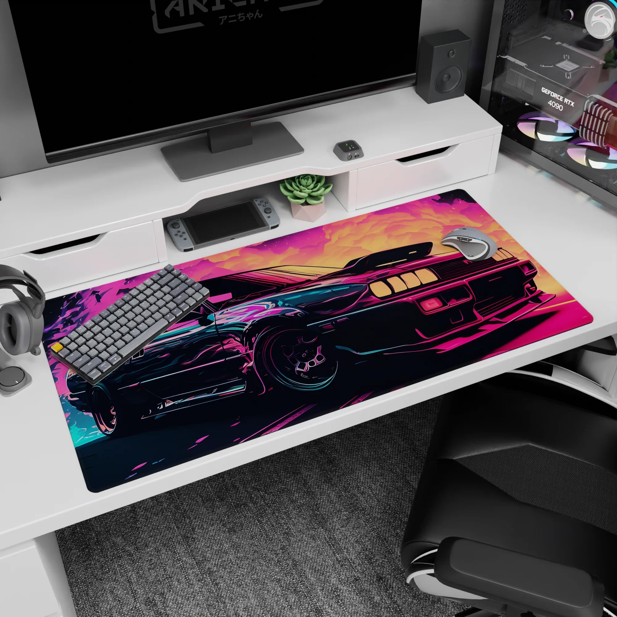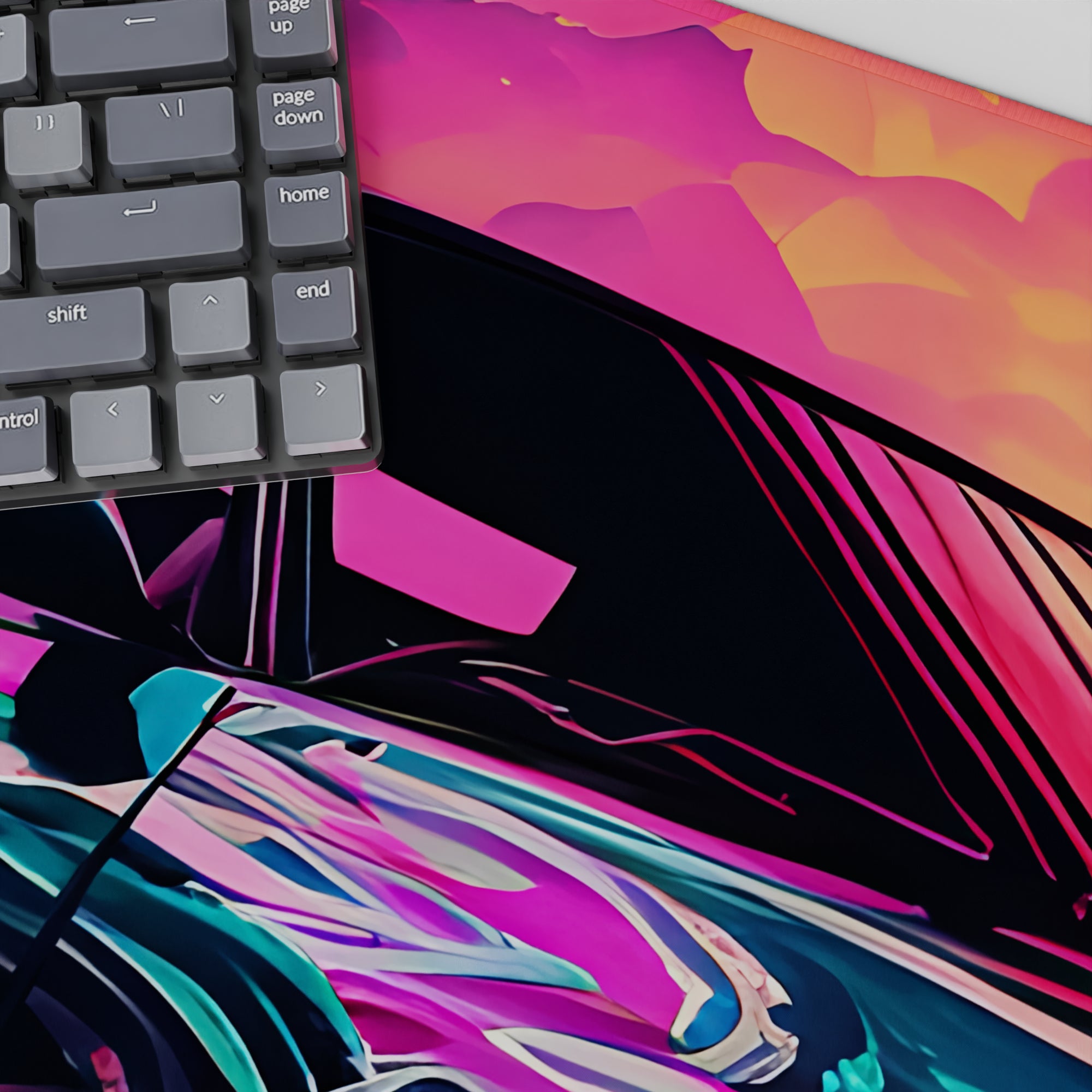 Retrowave-Vaporwave Deskmat | Mousepad | Deskpad - Neon Turbo Drift