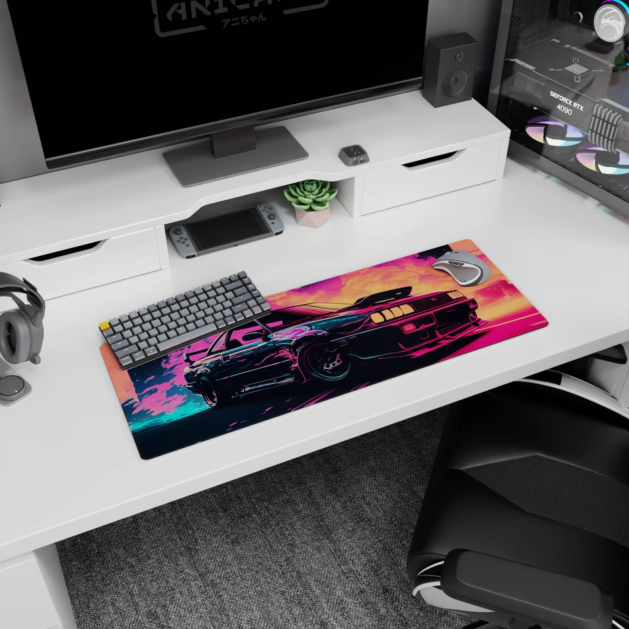 Order your Retrowave-Vaporwave Deskmat | Mousepad | Deskpad - Neon Turbo Drift now, and refresh your setup today!