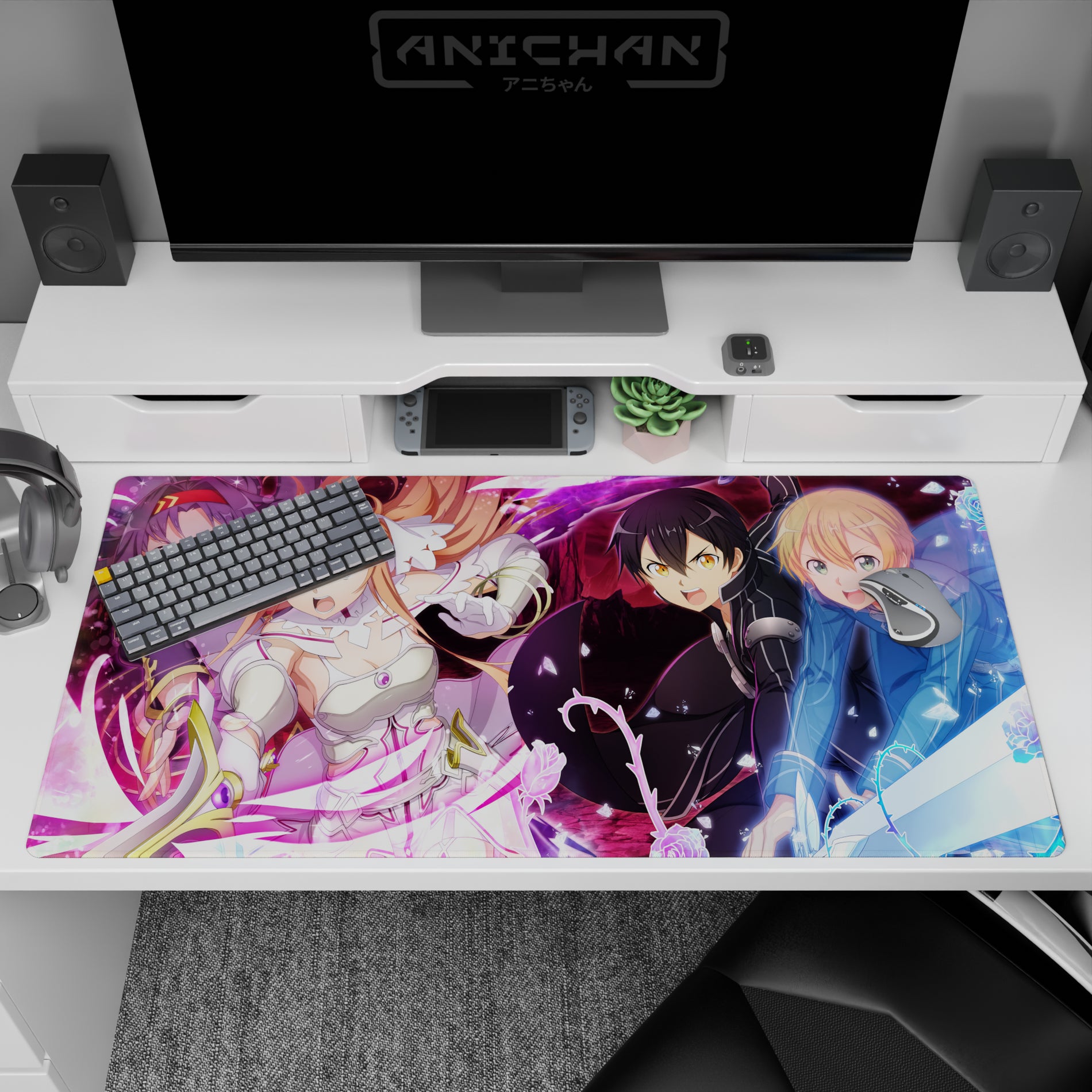 Experience the thrill of Sword Art Online with our anime mouse pad, featuring Kirito, Asuna, Alice, Eugeo, and Yuuki. Vivid colors and dynamic scenes bring their epic battles to life. Perfect for fans craving energy and action on their desktop.