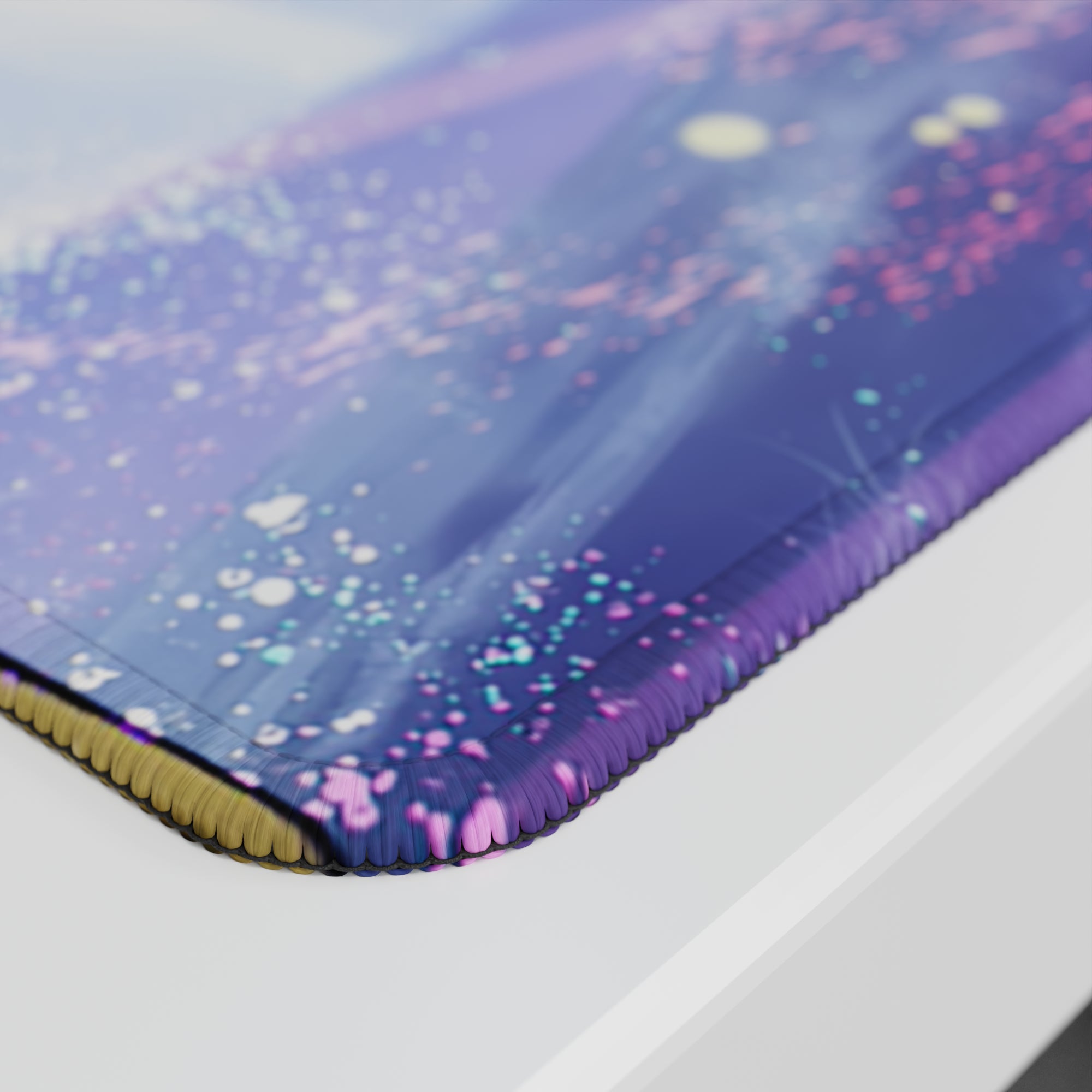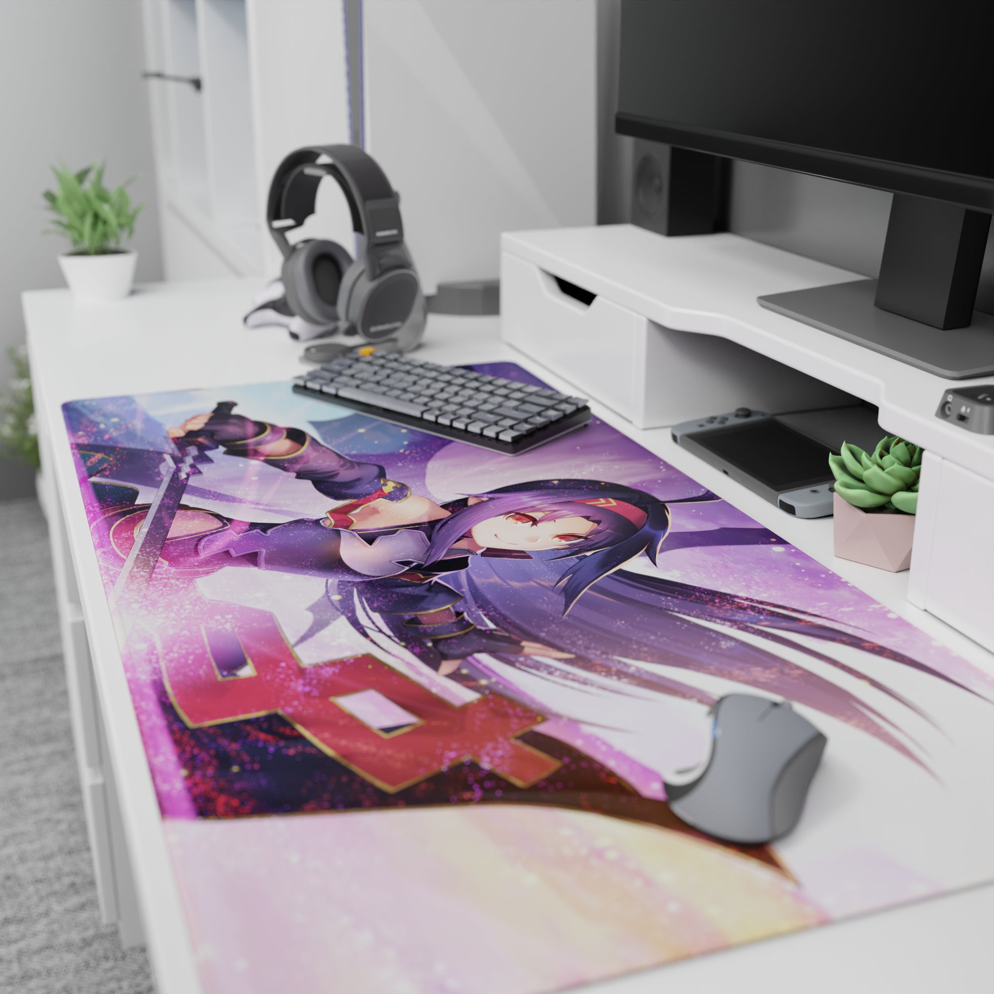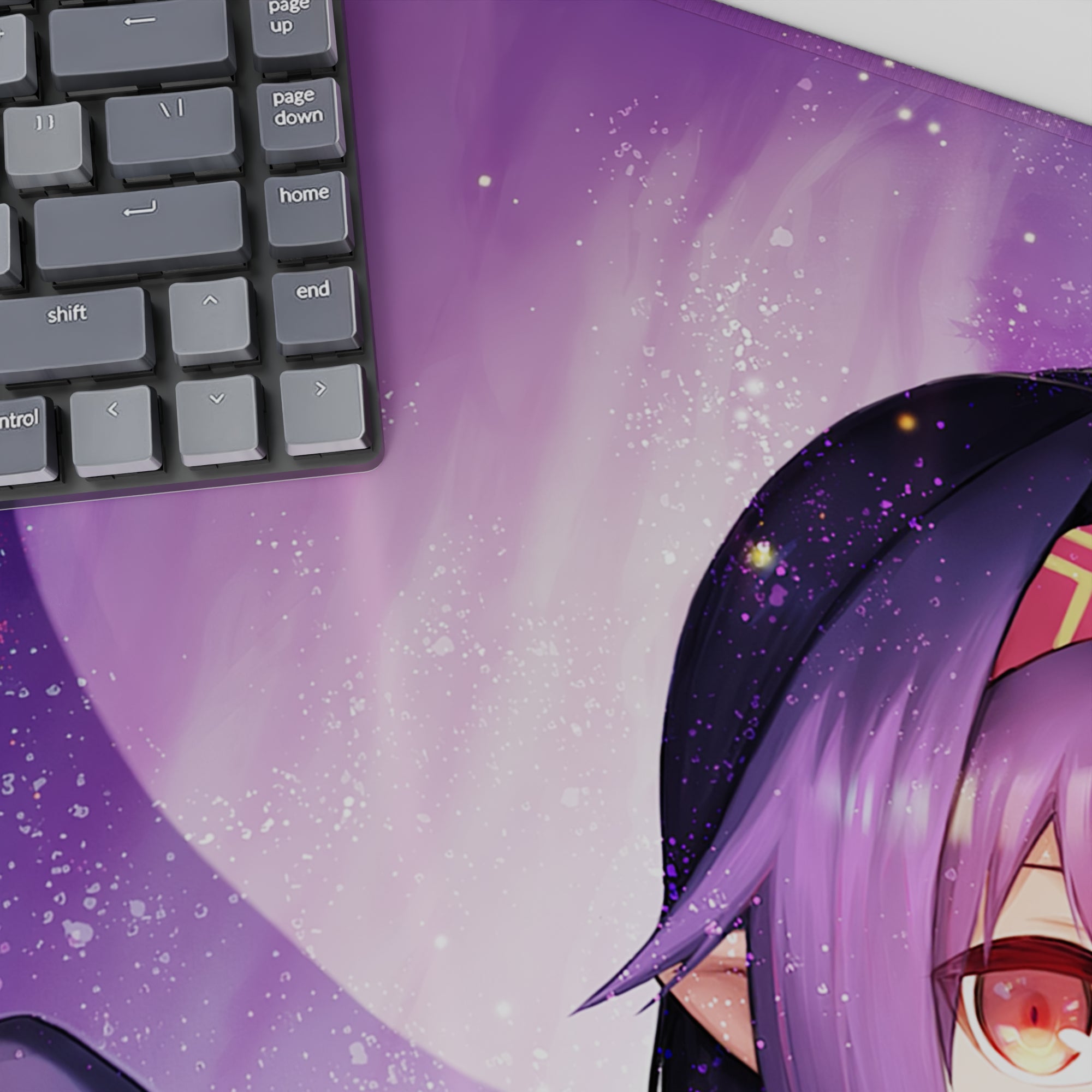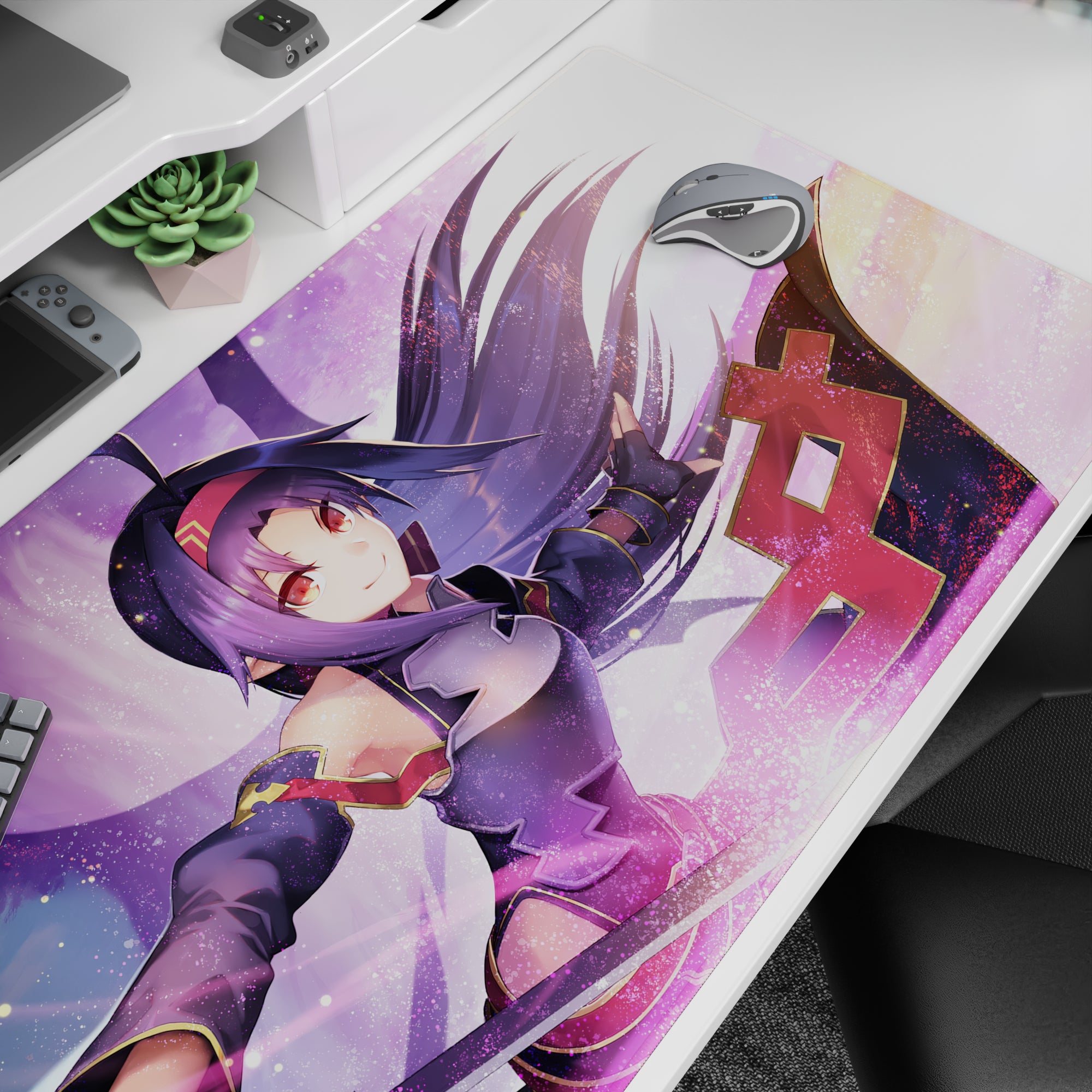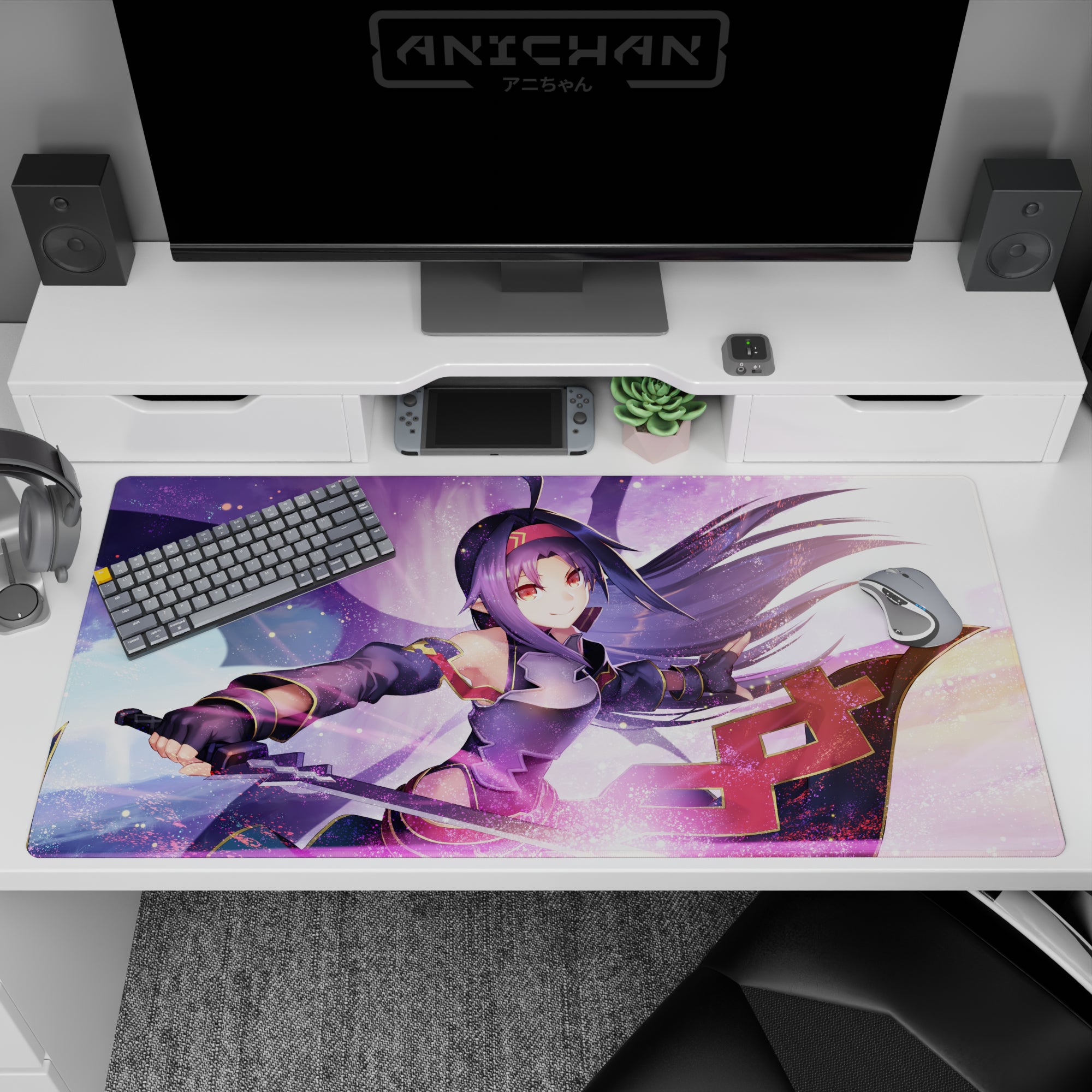 Yuuki's anime mouse pad bursts with energy, vibrant swirls of lavender, pink, and gold make it feel alive, slicing through dreamy skies with magic spark trails, chaotic yet beautiful—perfect for those who appreciate a touch of wildness. Enhance your desk with this unique piece today!
