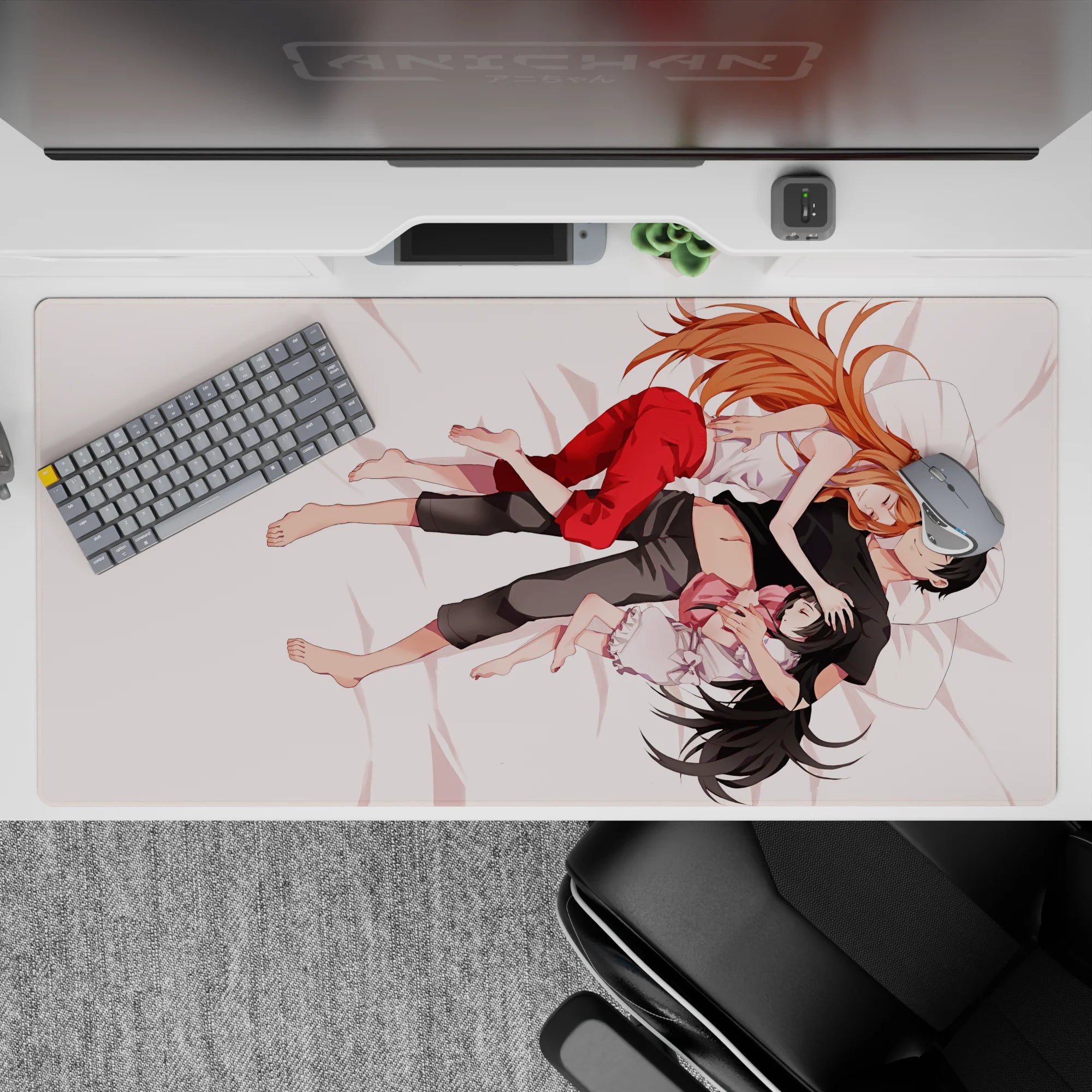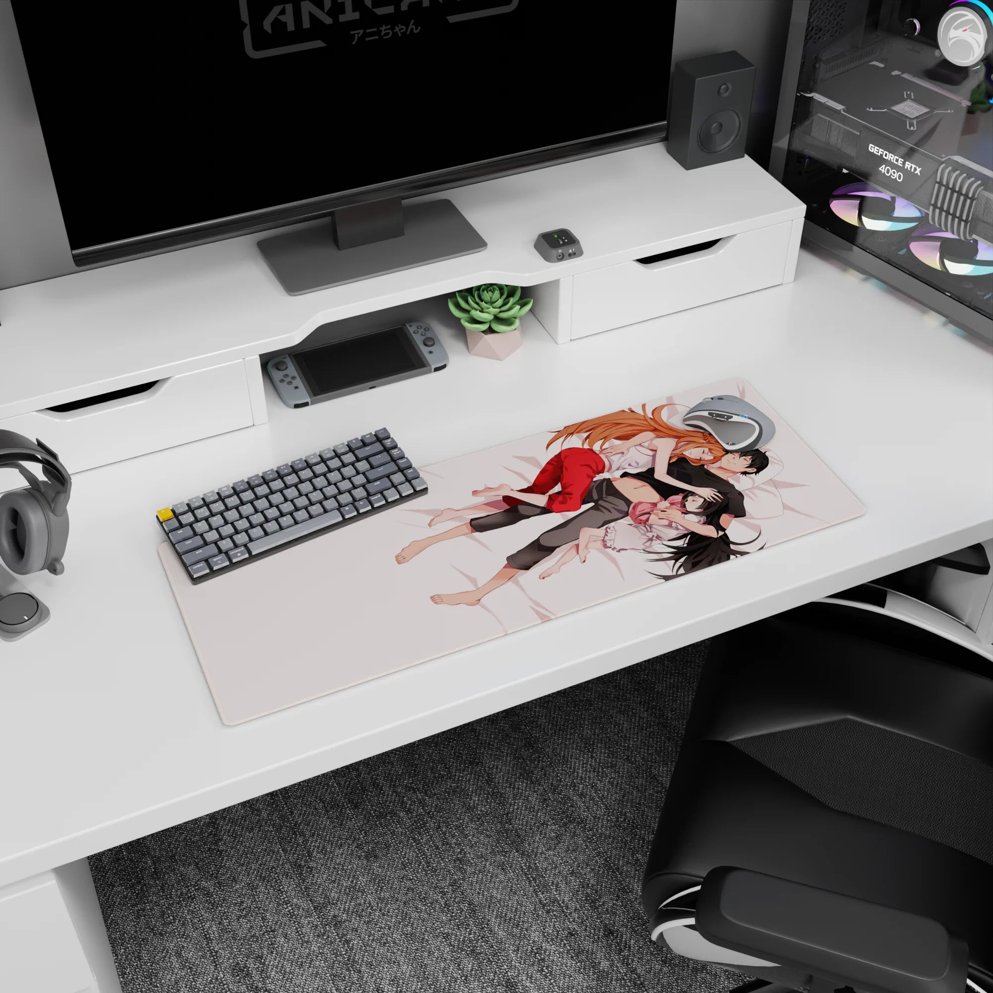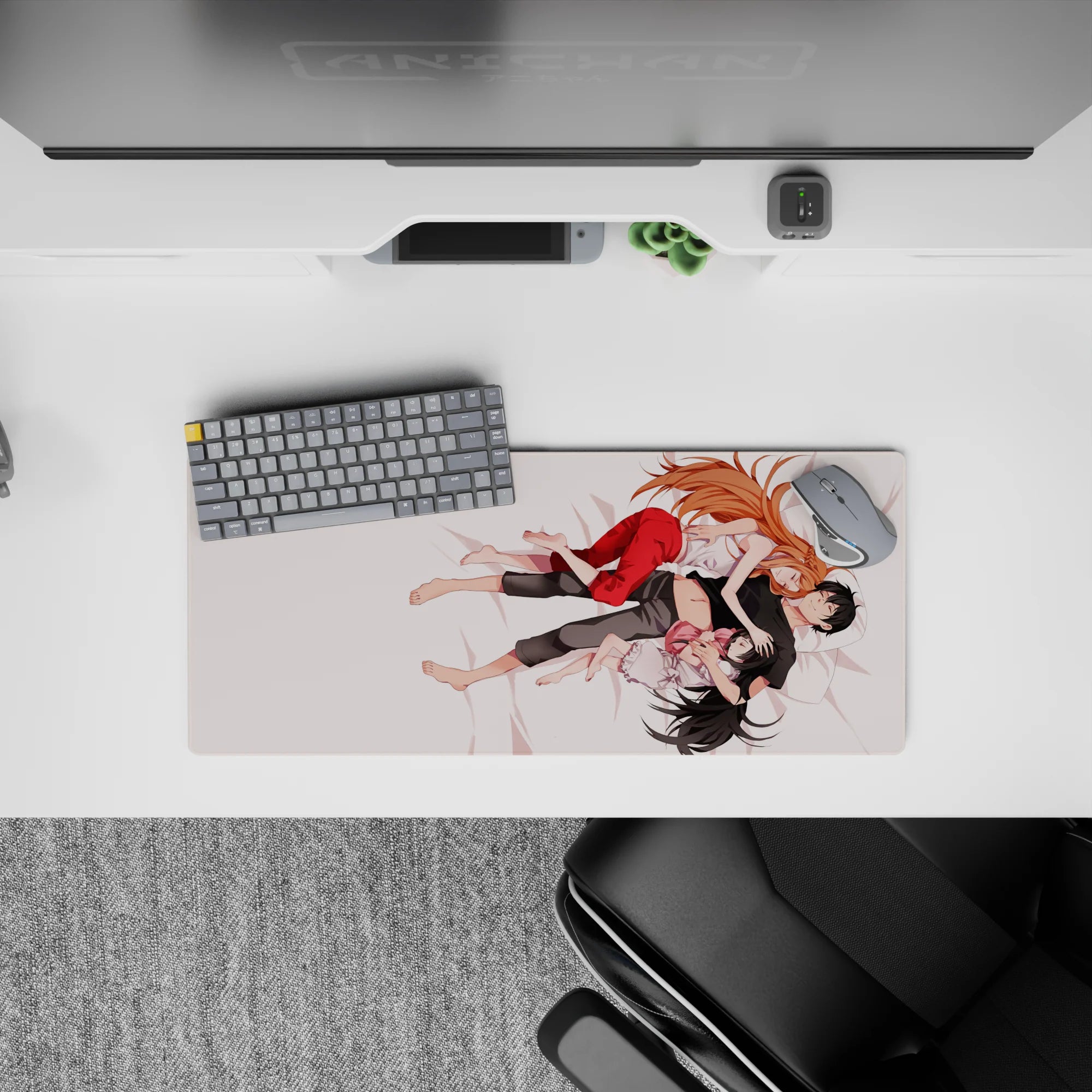 Discover the cozy charm of our anime mouse pad featuring Kirito, Asuna, and Yui. Immerse yourself in their serene embrace with soft hues and flowing lines. Perfect for transforming any workspace into a haven of comfort and tranquility. Experience the tranquility every time you sit down.