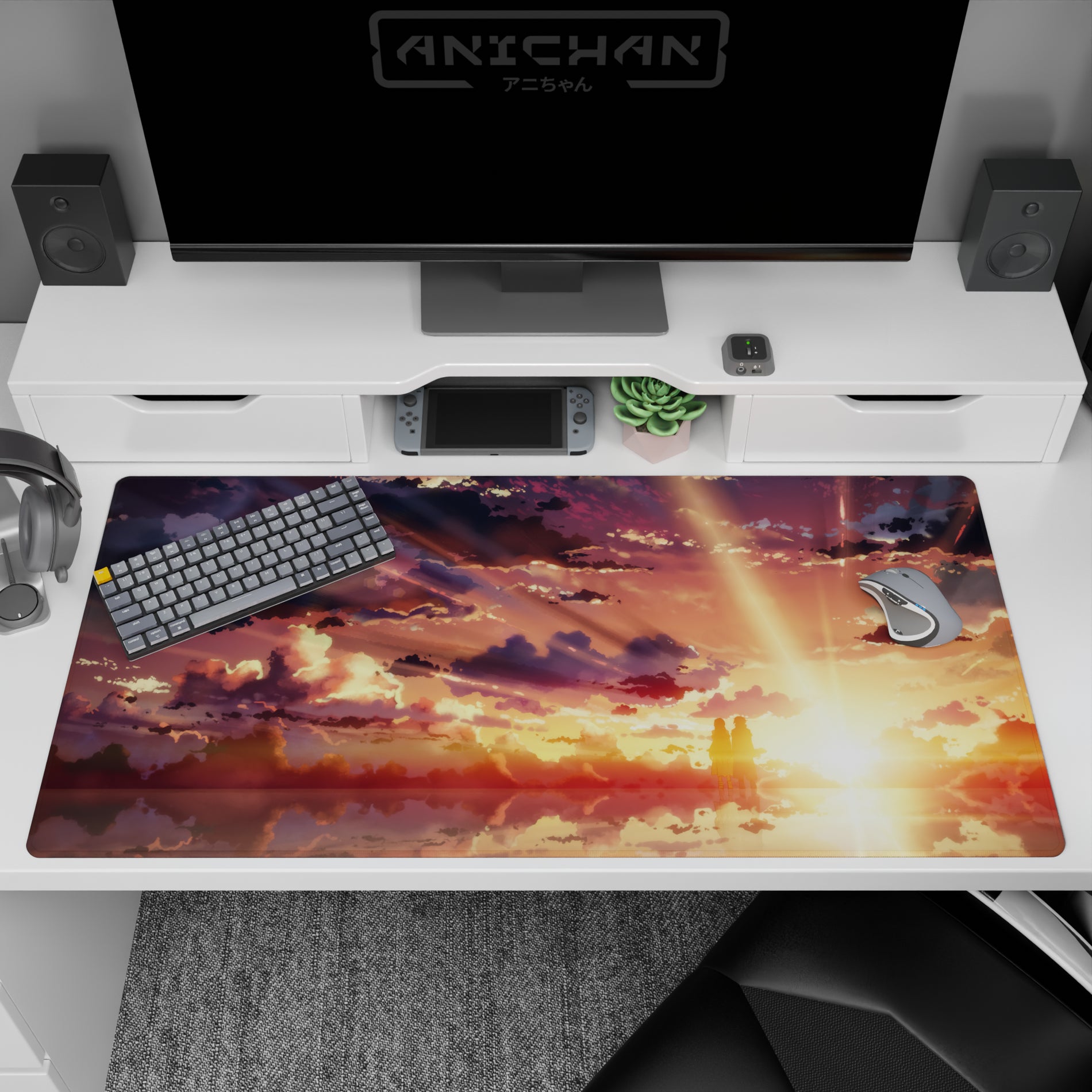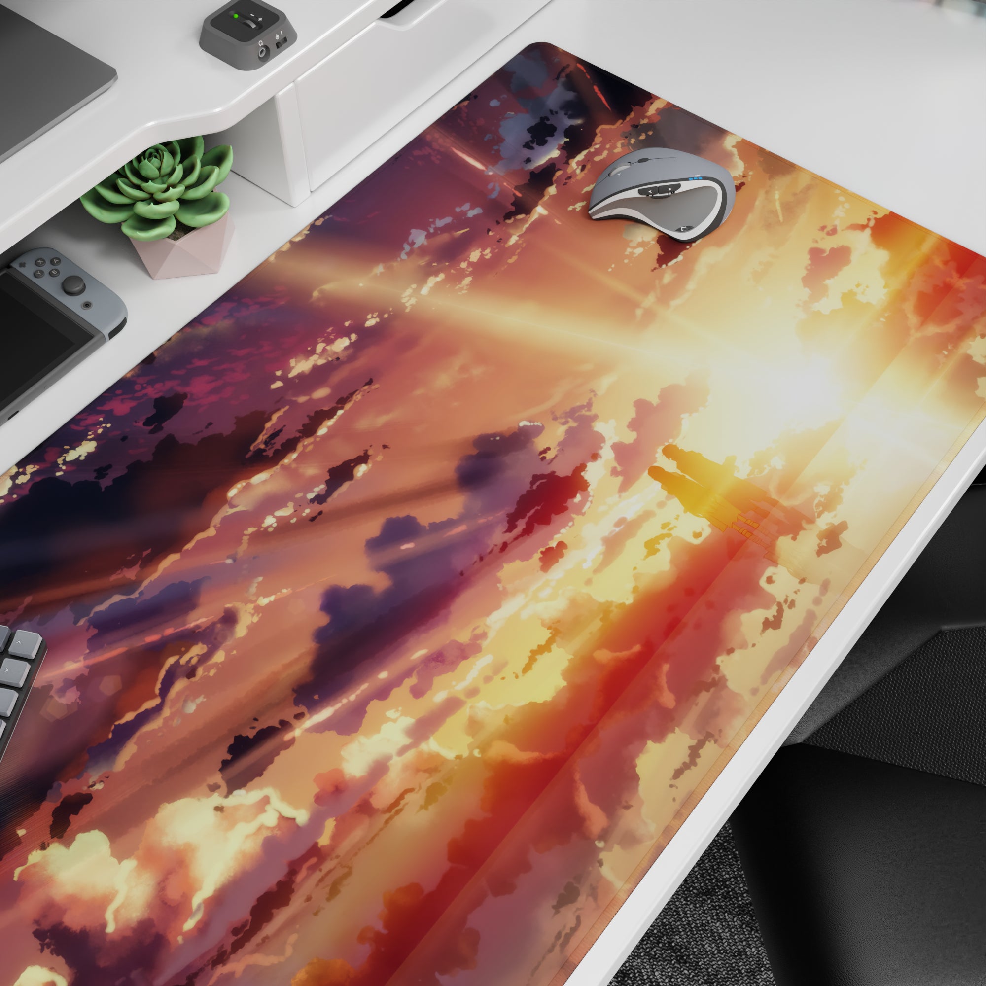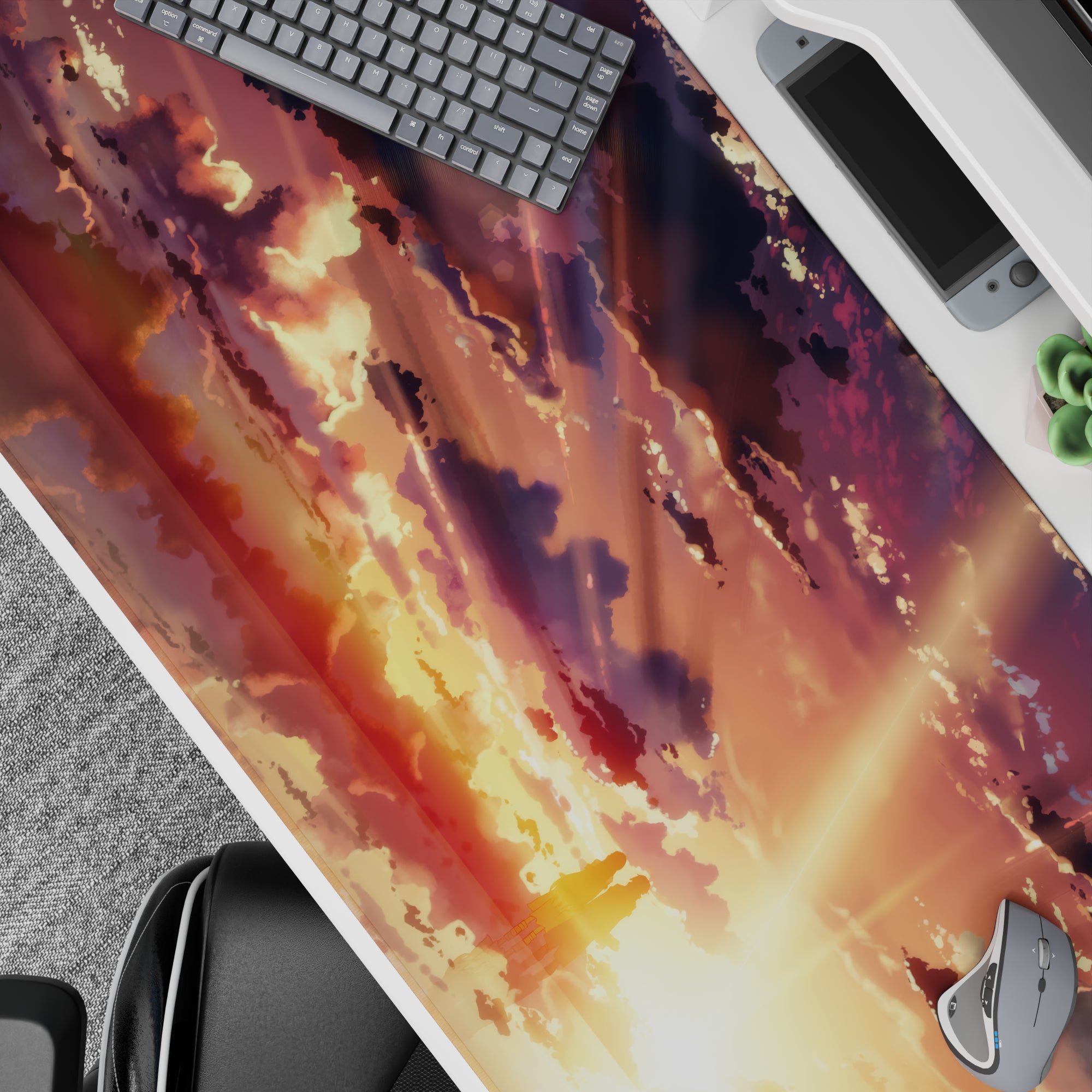 Discover an enchanting anime mouse pad featuring a golden sky with silhouettes and dreamy clouds, perfect for adding a touch of artistry to your workspace. Its design captures a moment of tranquility, making it more than just an accessory but a living piece on your desk.
