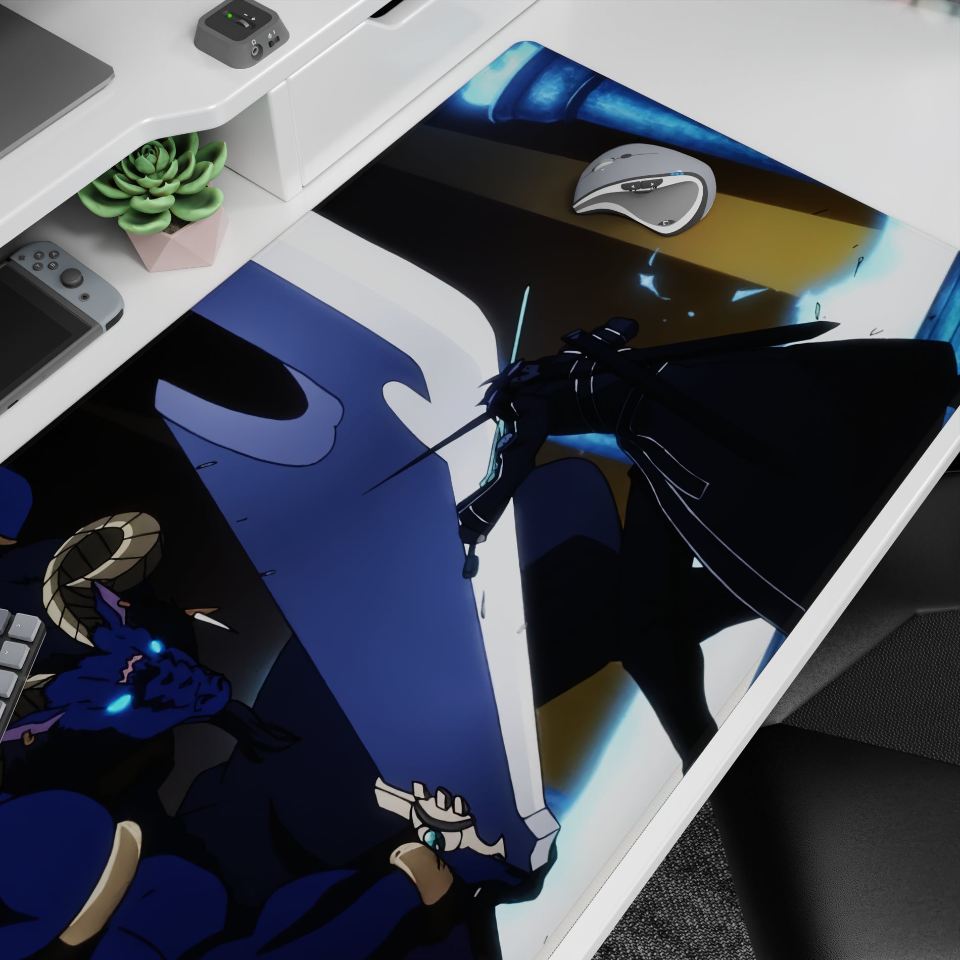 Bring the battle to your desk with this anime mouse pad featuring Kirito's epic clash. Vivid colors and dynamic design create an intense atmosphere, perfect for fans looking to enhance their gaming space. Add a unique touch to your setup with this high-quality accessory today.