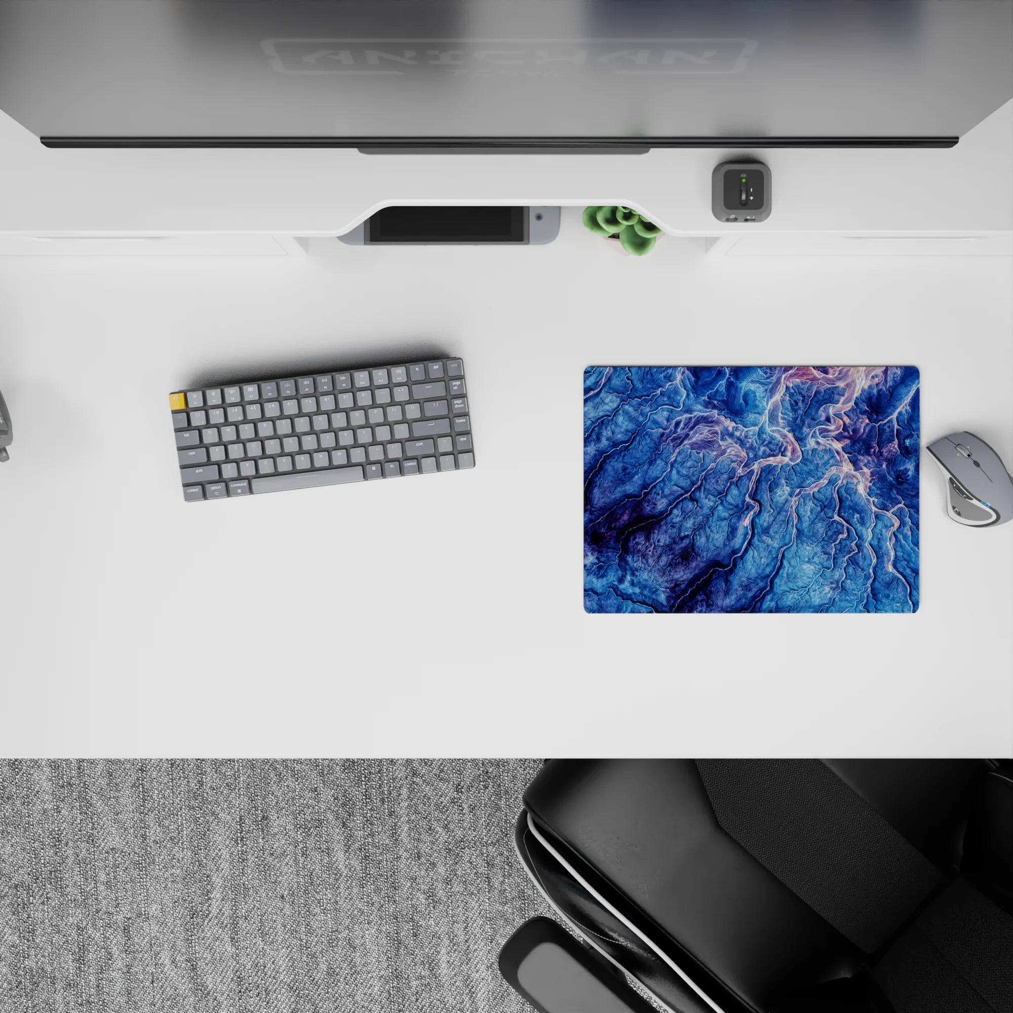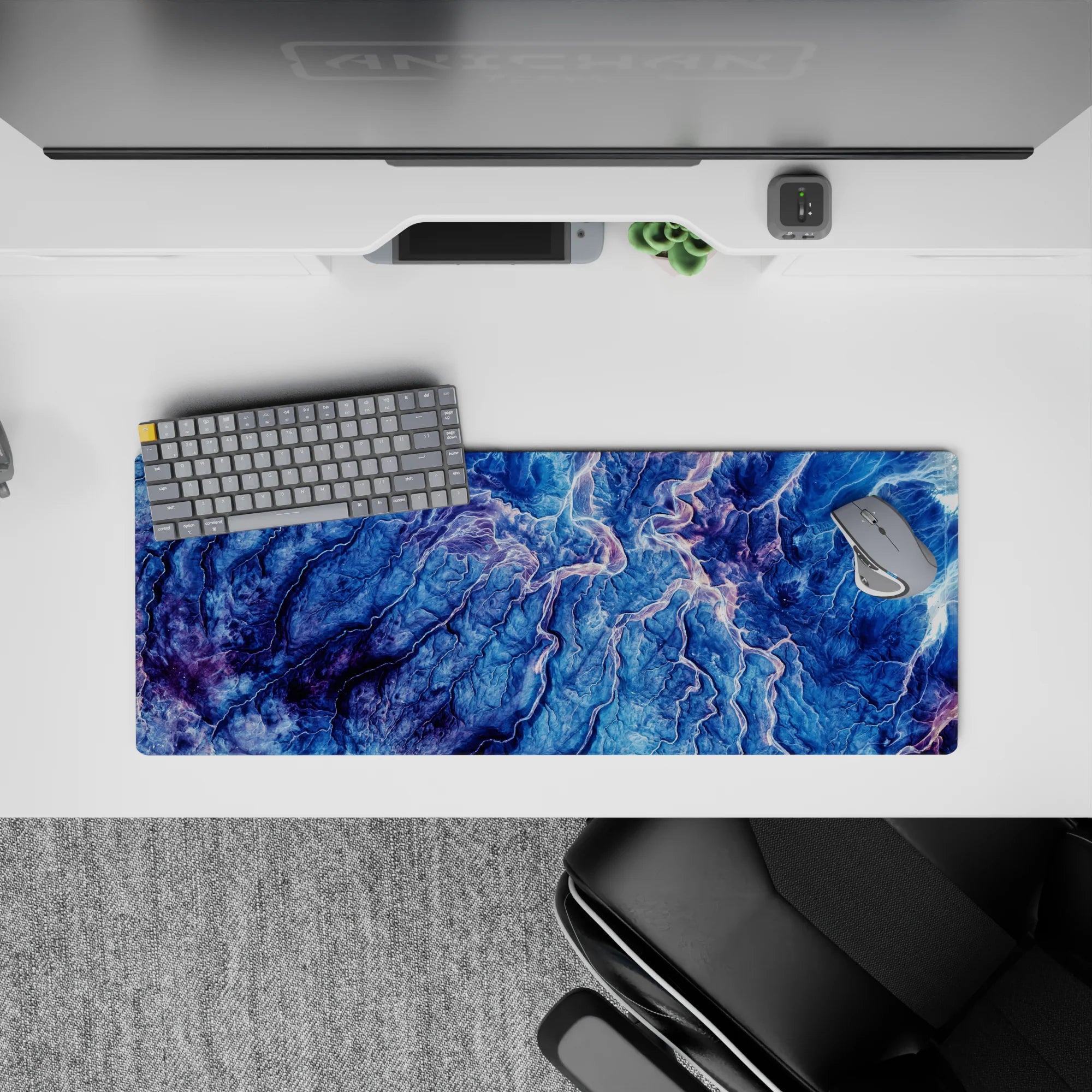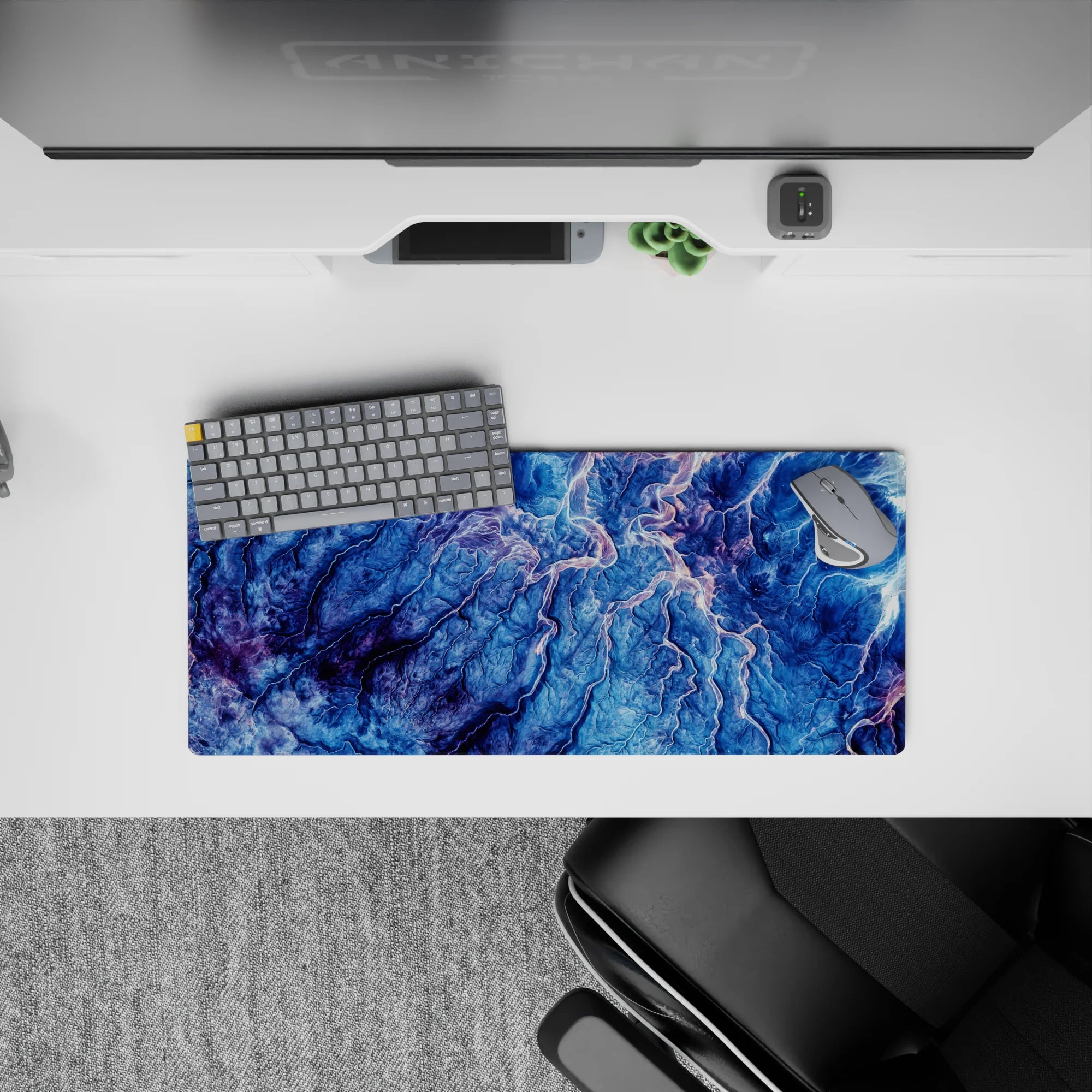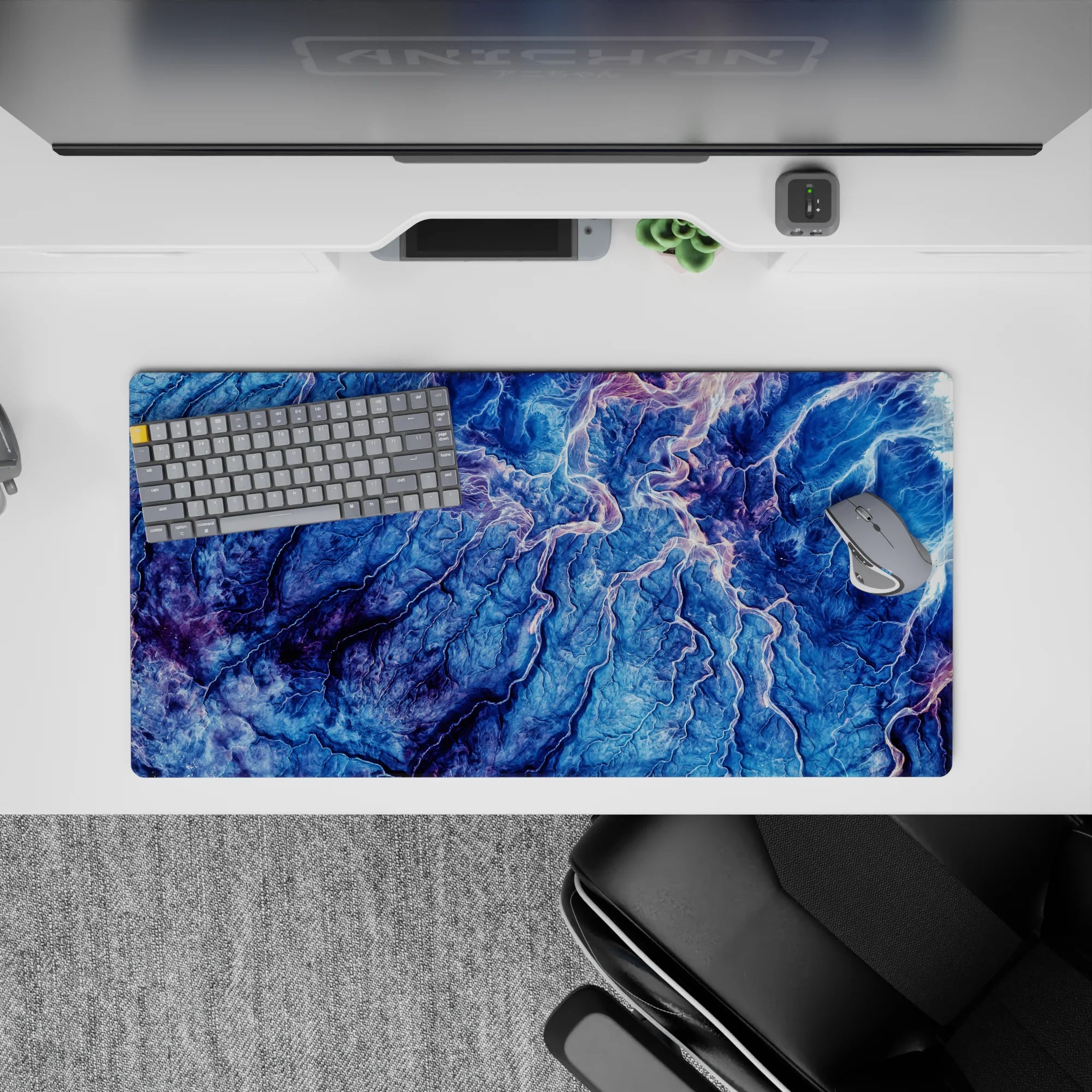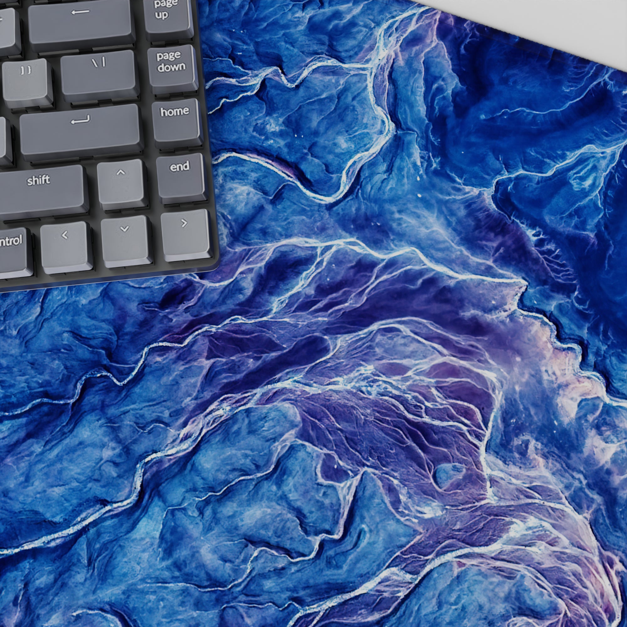 Transform your desk into a landscape of natural beauty with this topographic-inspired design. Featuring deep blues, purple, and pink, the intricate lines evoke the majesty of mountain ranges and valleys. Perfect for nature lovers or anyone seeking inspiration and tranquility in their workspace.